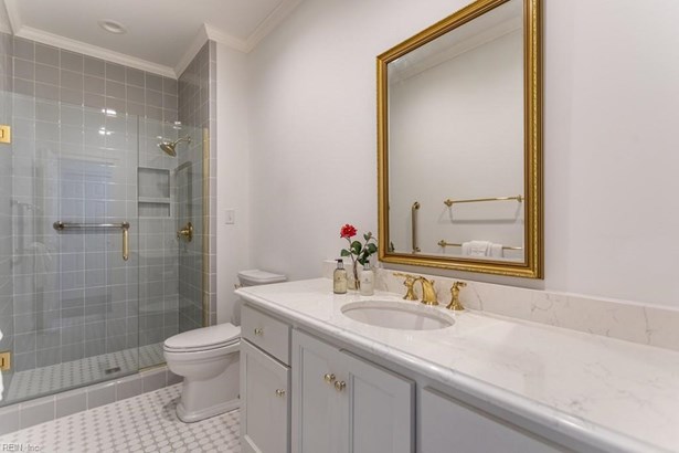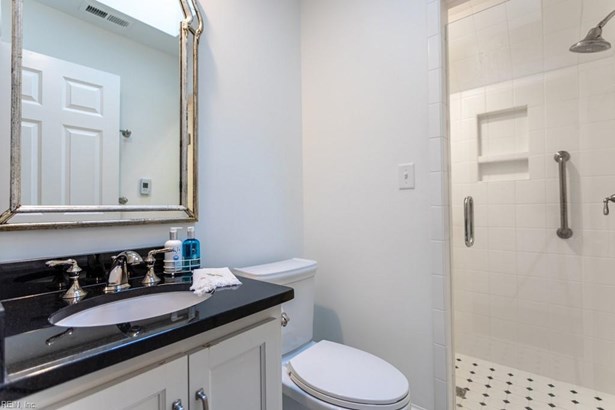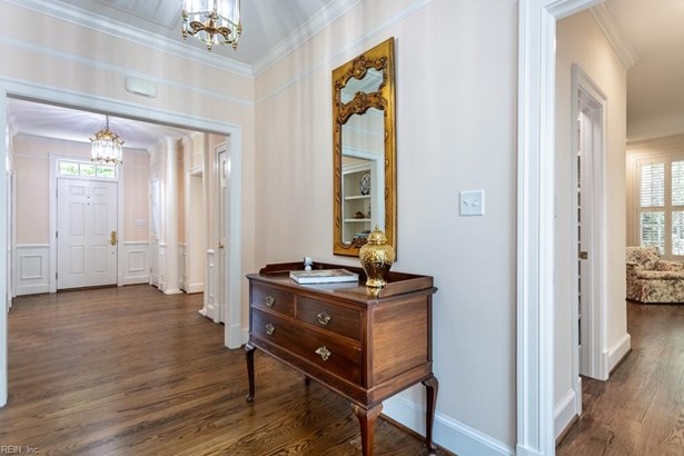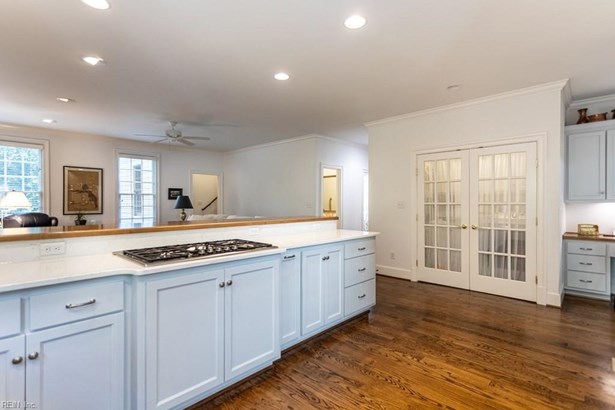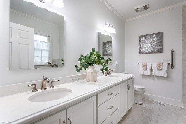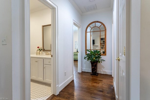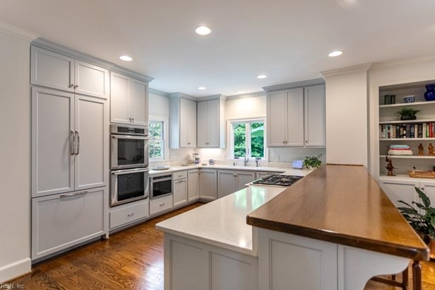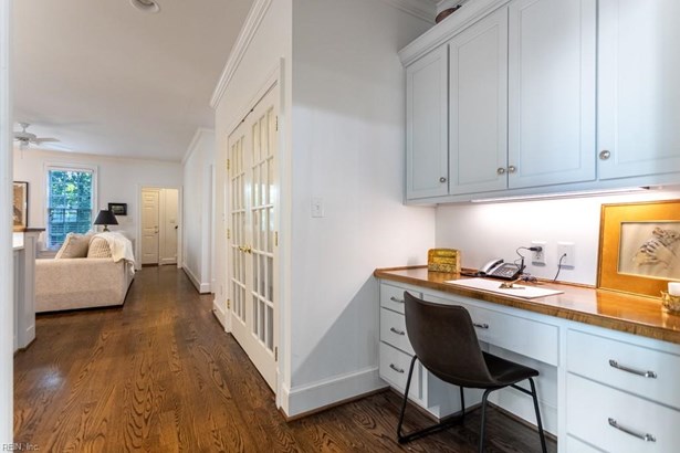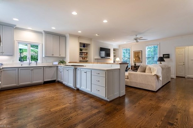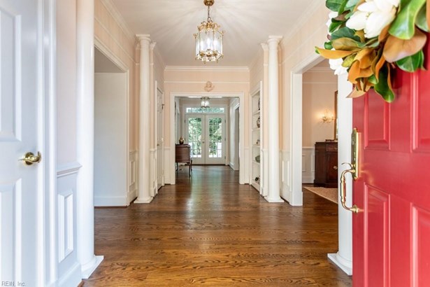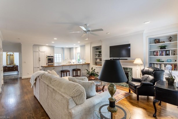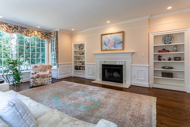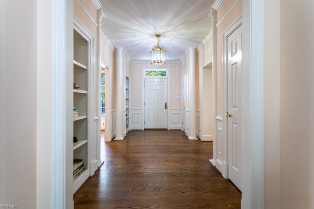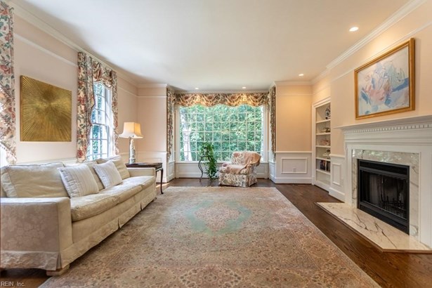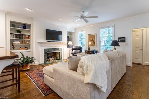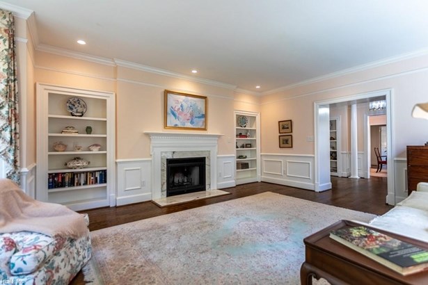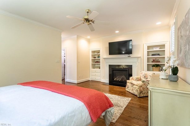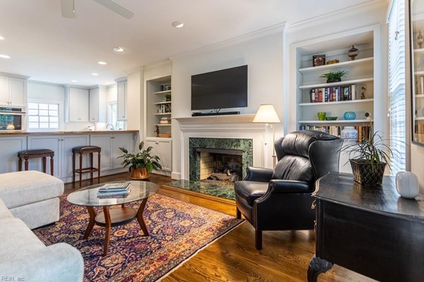Open the door to a bright and airy foyer accented with custom built-in bookshelves. This Kingsmill home showcases built-ins in the living room, den, and primary bedroom for both style and storage. The updated chef-style open kitchen offers expansive counter space, perfect for entertaining. The main-level primary suite features an updated en-suite bath with heated floors, while the upstairs bedroom enjoys its own updated private en-suite. Cedar closet and massive walk-in attic space, three fireplaces. Set on over a half-acre at the end of a quiet cul-de-sac in the gated Kingsmill community, this home blends updates, light, and resort-style amenities. Schedule a showing today!