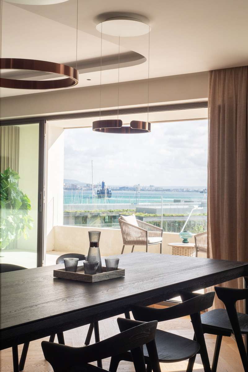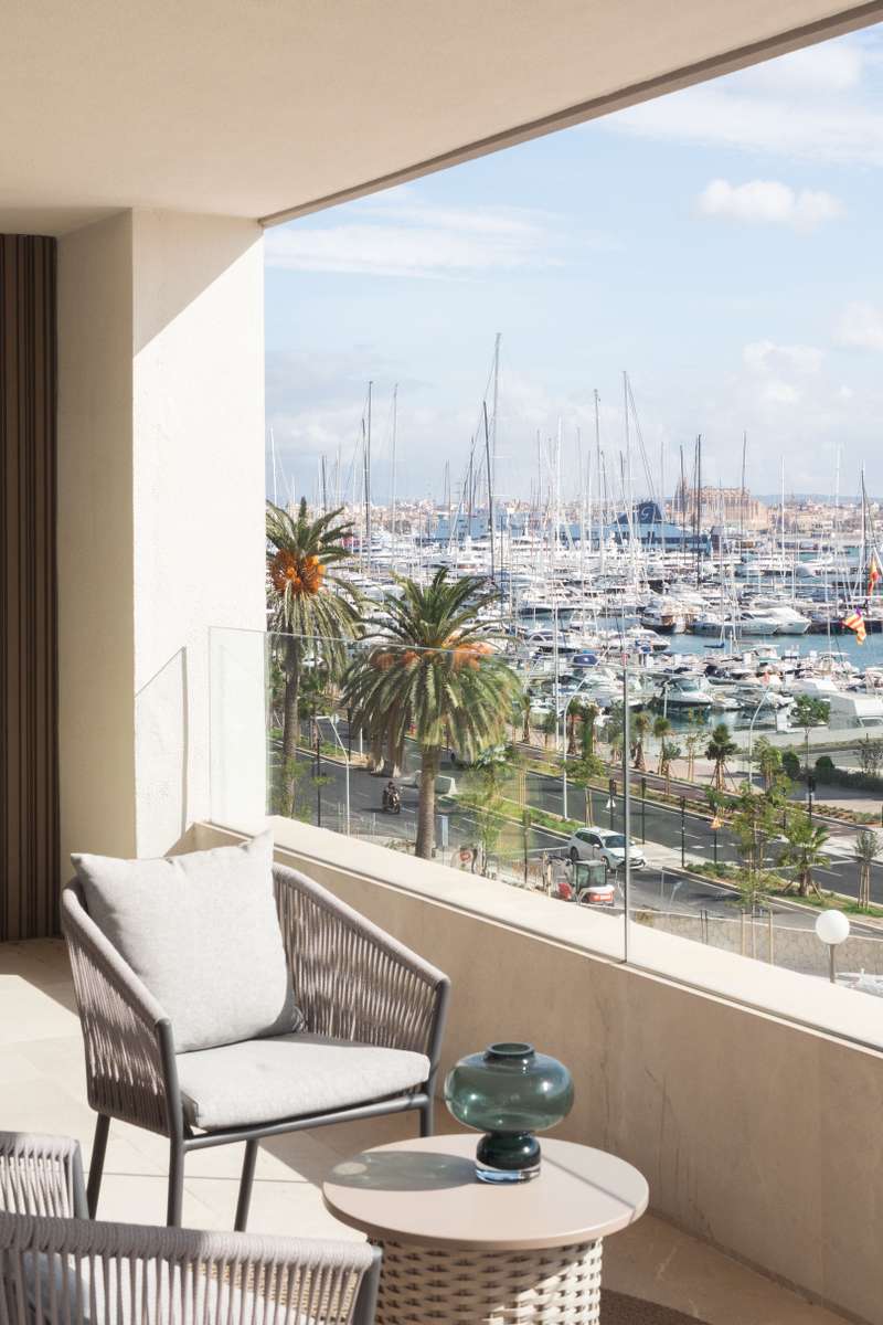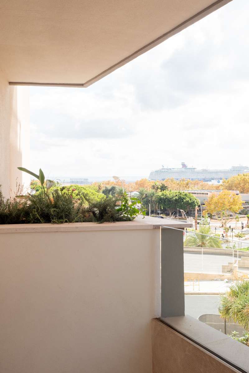 In the prestigious El Terreno area of Palma, one of the city’s most sought-after neighbourhoods, lies this spectacular luxury apartment offering unobstructed views over the port and the entire bay. With a total surface of approximately 200 m², the property was completely renovated in 2025, combining cutting-edge design with top-quality materials. Everything is brand new, created to deliver comfort, elegance, and state-of-the-art living. The apartment features a spacious and exceptionally bright living room, where a large panoramic window seamlessly connects the interior to a private 20 m² terrace, framing stunning views of the Port of Palma. It offers two double bedrooms, each with its own en-suite bathroom, as well as a single bedroom and an additional room fitted as a private gym with sauna. A third guest bathroom completes the layout. Every detail has been carefully selected: CORTIZO aluminium carpentry ensures outstanding insulation; the Mitsubishi Electric ducted air-conditioni