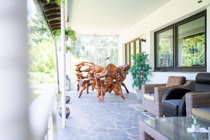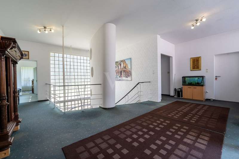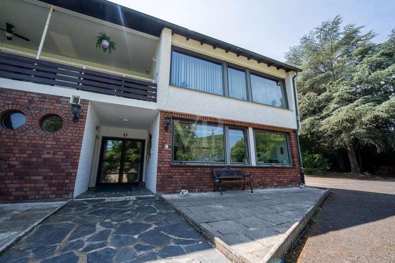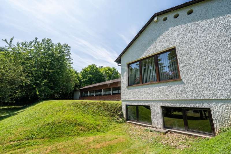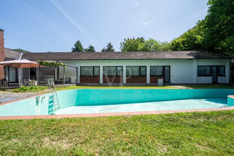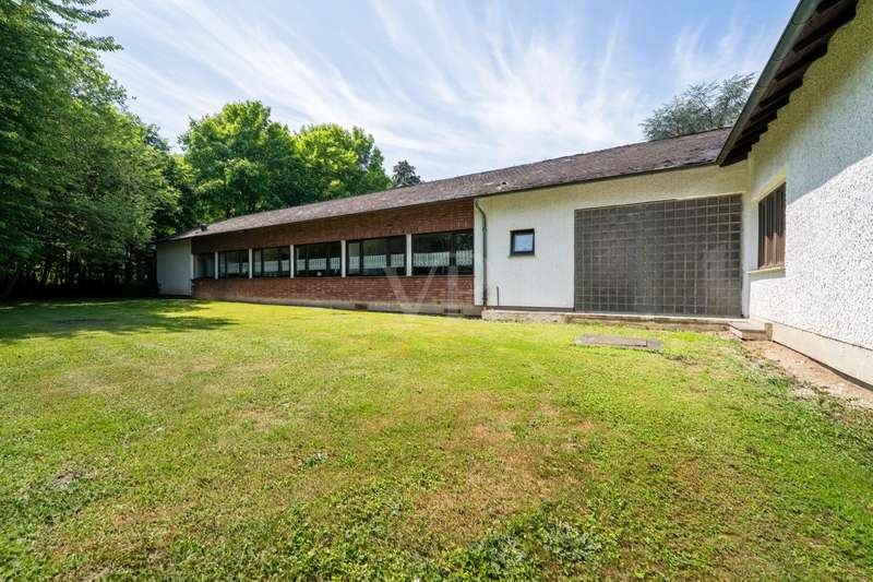 This well-kept property, a detached house with granny apartment, offers a comfortable living space of approx. 420 m² and is situated on a spacious plot of approx. 6975 m². The house, originally built in 1960 and modernized in 2020, impresses with its well thought-out room layout with a total of nine rooms that offer a wide range of possible uses. The detached family home is in good condition and has been modernized in recent years. The central gas heating was replaced in 2019, ensuring an efficient heating system. The house also has a self-sufficient solid fuel heating system, which provides an independent source of heat. A particular advantage is that new windows have already been partially installed in 2012 and 2020, which contributes to improving the energy efficiency. The exterior façade has been insulated on the weather sides, which both increases living comfort and reduces energy consumption. A highlight of the property is the spacious, park-like grounds, which offer a wide range of leisure activities. The outdoor pool, which is currently used as a rainwater collector, can be converted into a variety of uses. The indoor pool, which is currently not in use and has been fitted with a closed ceiling, can also be reactivated. These features offer an attractive option for customization according to the preferences and needs of the new owners. Ample parking is also provided, with many outdoor parking spaces as well as a carport that offers space for two vehicles and additional space for garden tools. The existing fireplace is currently not in use, but offers potential for a cozy atmosphere when it is brought back into use at a later date. Several dog kennels add to the versatility of the outdoor area and provide ideal conditions for animal lovers. The granny apartment opens up further potential uses, whether as a separate living unit for adult family members, guests or as an office. A future-proof internet supply is also provided for: the house is prepared for the laying of fiber optic cables, only the house connection is still outstanding. Nothing stands in the way of further development. The location of the property is ideal for anyone who appreciates a combination of generous living and business space and a spacious plot of land. Overall, this property offers a high degree of flexibility to ideally support the lifestyle of its new owners. Thanks to its well-kept condition and modernization measures, nothing stands in the way of moving in. This property is waiting to be filled with life again and designed according to the individual ideas of its new owners. Interested parties are advised to view the property to experience its special charm first-hand. An energy and demand certificate was not yet available at the time the advertisement was created. However, this has been commissioned.