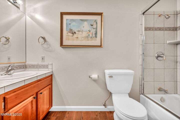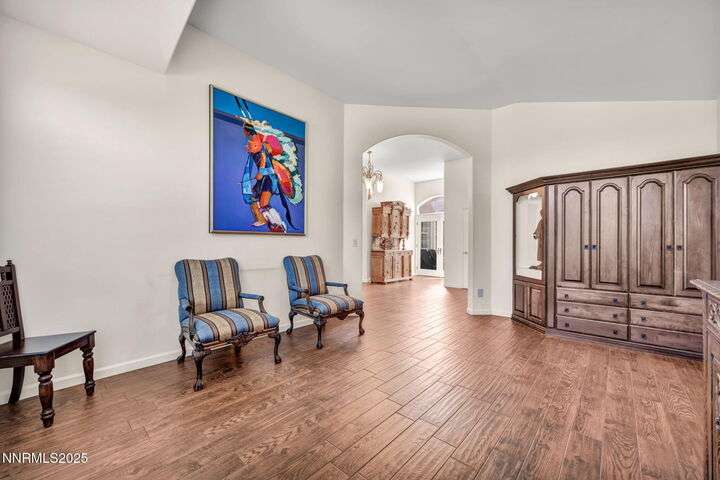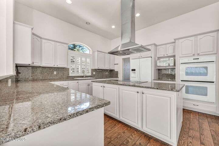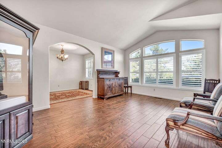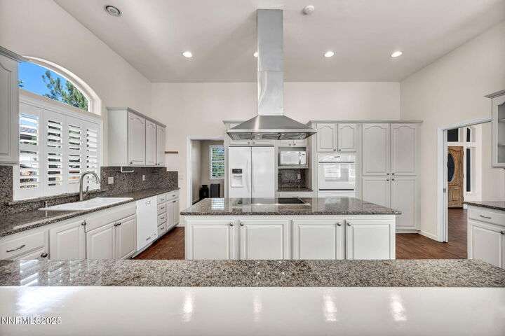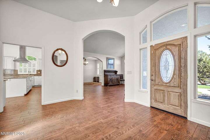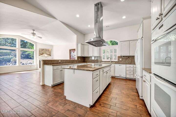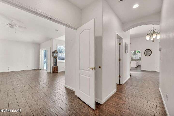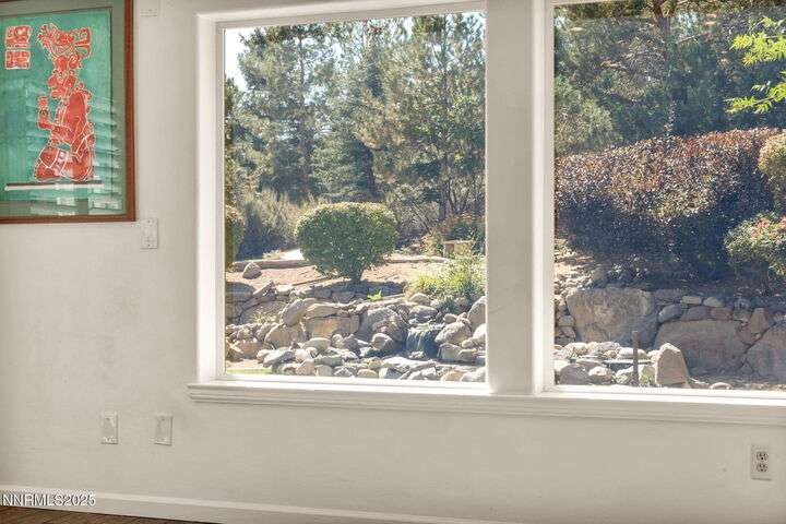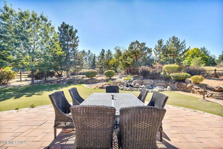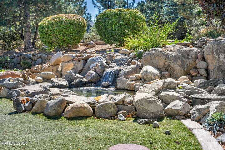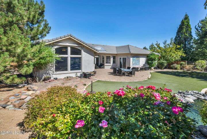 Now is your chance to live the lifestyle at Fieldcreek Ranch! This beautifully maintained home offers 4 spacious bedrooms, 3 full bathrooms, plus a versatile office/den, all situated on a stunning ½-acre lot. Inside, updated porcelain tile flooring flows seamlessly throughout the main living areas and bedrooms, creating both elegance and durability. The chef's kitchen is a true showpiece, featuring crisp white cabinetry, induction cooktop with striking stainless steel hood over the island, double ovens, and expansive counter space—perfect for entertaining and everyday living. The kitchen opens to a warm and inviting living room centered around a gas log fireplace and large windows framing views of the beautifully landscaped backyard. Step outside to your own private retreat with a serene pond, fruit trees, and mature landscaping designed for year-round enjoyment. There is an oversized 898 square foot 3 car garage with high ceilings and plenty of built in cabinetry. Conveniently located just minutes from Wolf Run Golf Course, this home is ideal for golf enthusiasts. Outdoor adventurers will appreciate being only 18 minutes to Mt. Rose Ski Resort and less than 25 minutes to Incline Village and North Lake Tahoe amenities. Come experience the perfect balance of luxury, comfort, and location at 12880 Welcome Way.