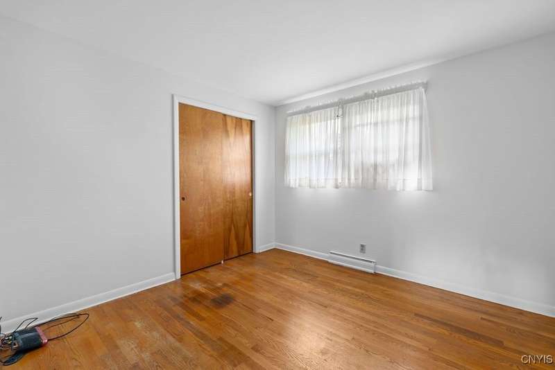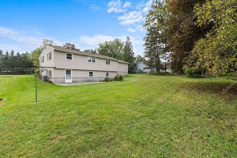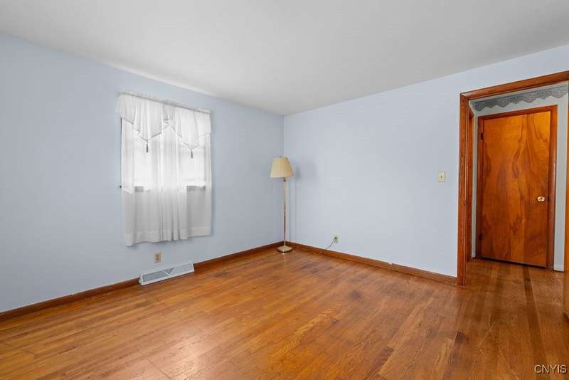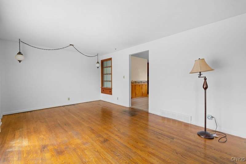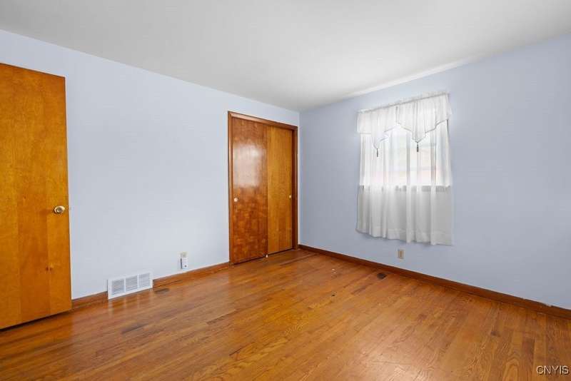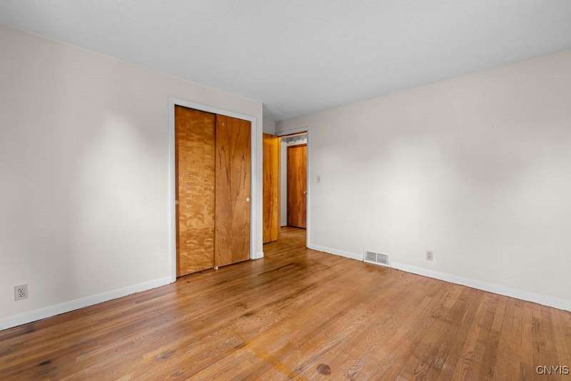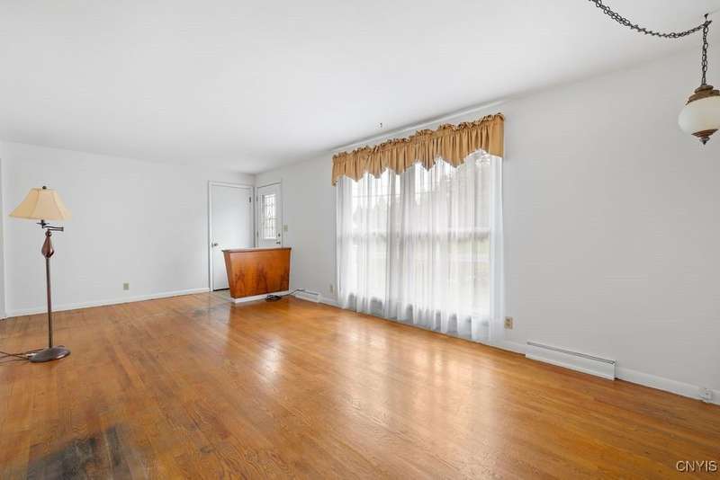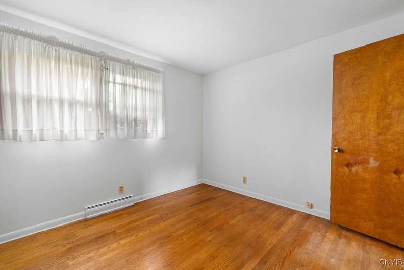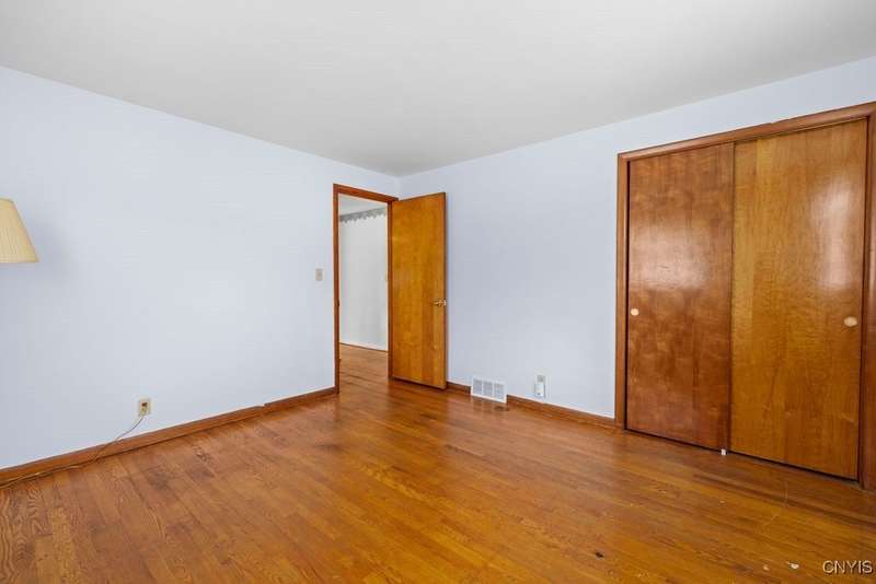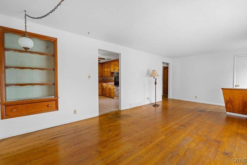After 50 years, this family owned home with many memories is looking for a new buyer to begin their memories. Located in the West Genesee School District, this Ranch-style home has hardwood floors throughout living room, hallway and three bedrooms. The freshly painted living room, bedrooms and basement brightens the space. The country-feel eat-in kitchen offers ceramic flooring and knotty pine cabinets. The closet next to the kitchen could be a converted pantry or keep just for storage. The full walk-out basement to the back yard and patio has many options to suit your finishing needs (i.e. playroom, home office, family room, or plenty of storage space, etc.). The nice sized back yard is great for entertaining and play area. Some updates include a furnace (5 yrs), roof (7 yrs), gutters w/ leaf guard (1 yr), septic (4 yrs), and a number of newer windows just to name a few. This home is move-in ready just waiting for your final touches.
