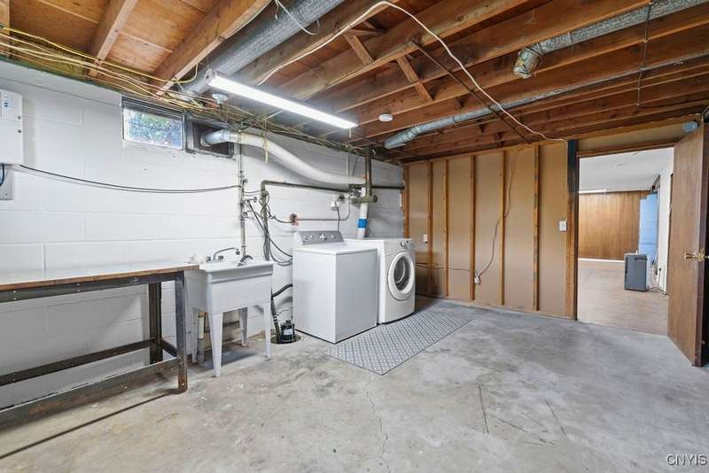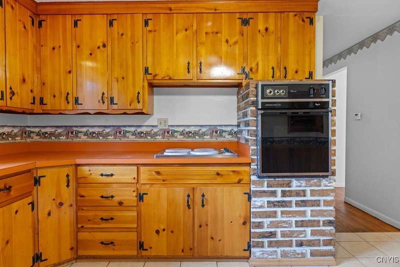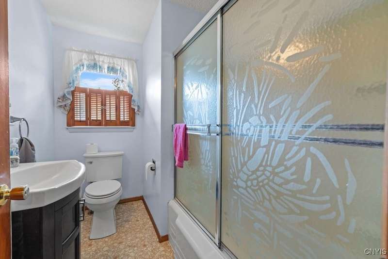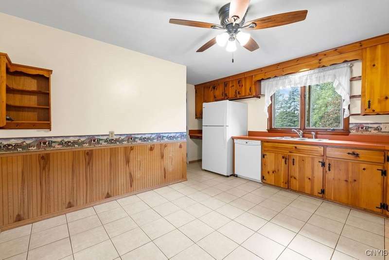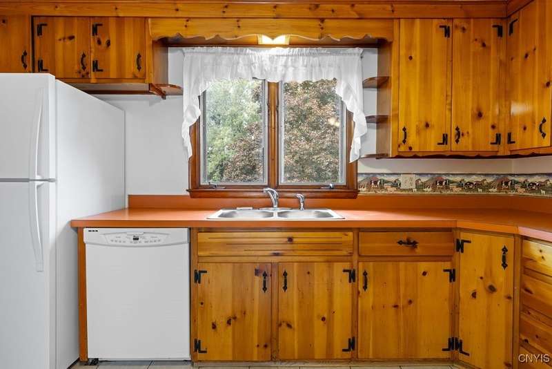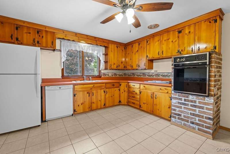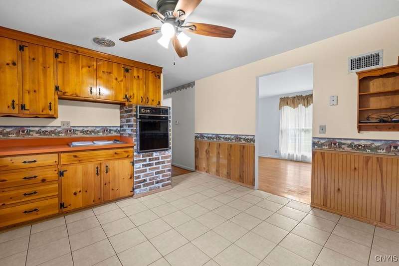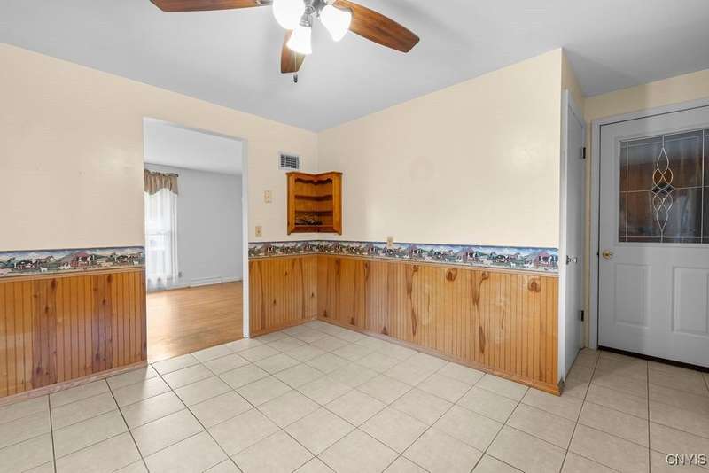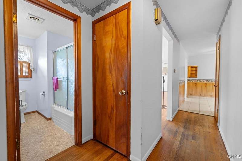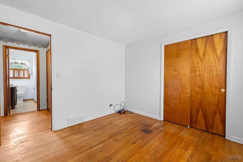 After 50 years, this family owned home with many memories is looking for a new buyer to begin their memories. Located in the West Genesee School District, this Ranch-style home has hardwood floors throughout living room, hallway and three bedrooms. The freshly painted living room, bedrooms and basement brightens the space. The country-feel eat-in kitchen offers ceramic flooring and knotty pine cabinets. The closet next to the kitchen could be a converted pantry or keep just for storage. The full walk-out basement to the back yard and patio has many options to suit your finishing needs (i.e. playroom, home office, family room, or plenty of storage space, etc.). The nice sized back yard is great for entertaining and play area. Some updates include a furnace (5 yrs), roof (7 yrs), gutters w/ leaf guard (1 yr), septic (4 yrs), and a number of newer windows just to name a few. This home is move-in ready just waiting for your final touches.