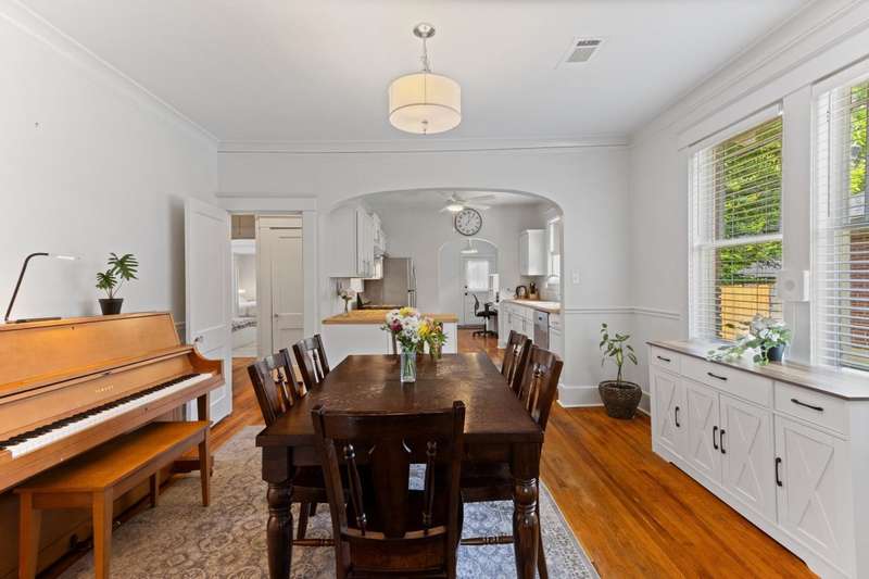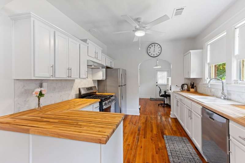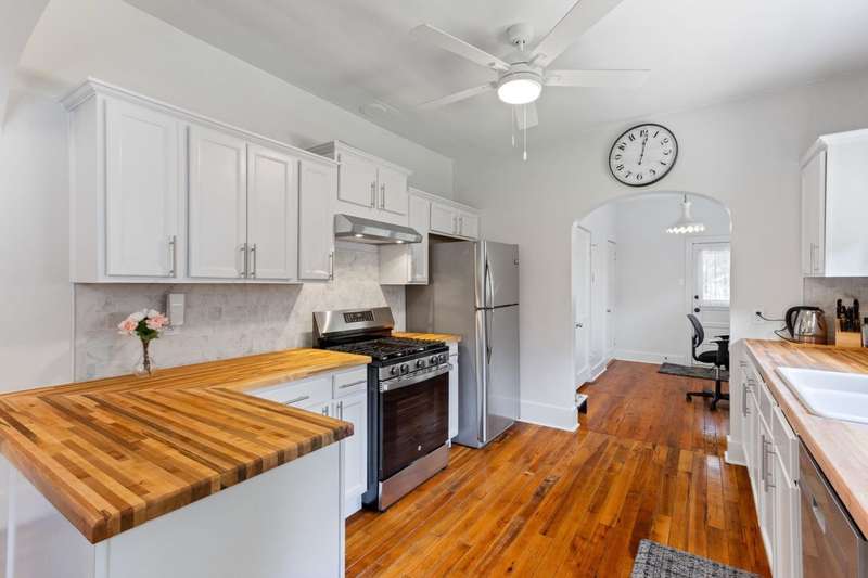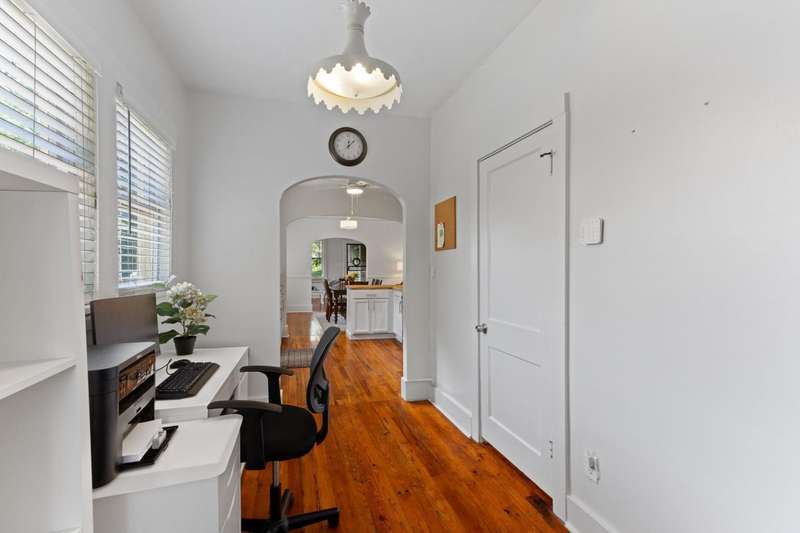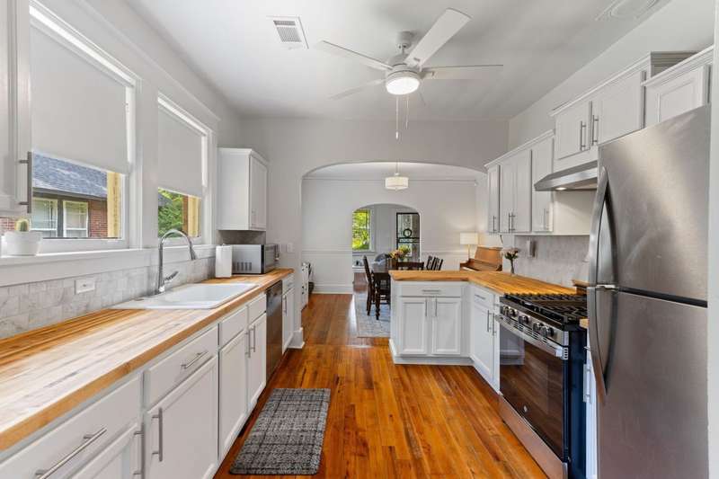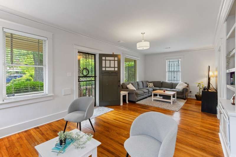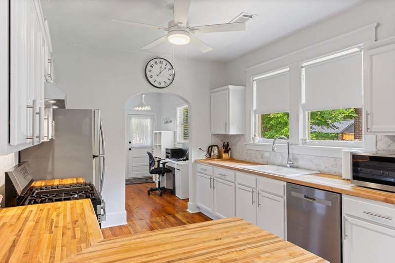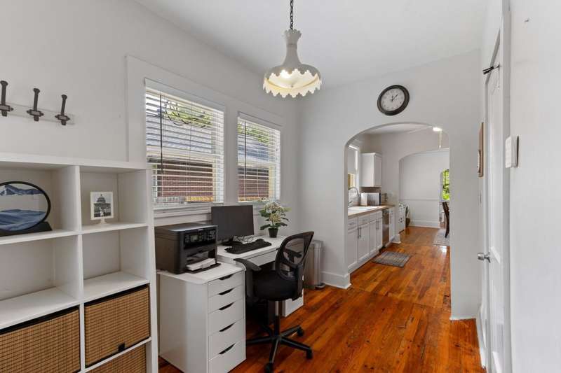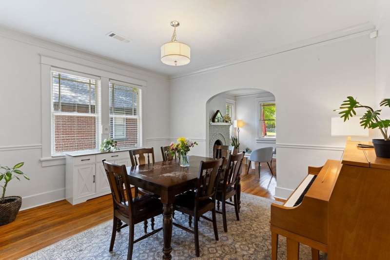 It's hard not to love this adorable home! Situated on a quiet, tree-lined street in the heart of Vollintine-Evergreen Historic Dist., the inviting porch welcomes you into the oversized living room w/it's built-ins, beautiful brick fireplace & gorgeous solid oak hardwoods & moldings. The spacious dining room features a wall of windows, and opens to the beautifully updated kitchen, featuring new wood countertops, a new gas stove/vent-hood & tile backsplash, ample cabinetry w/new hardware, a large window above the sink & gorgeous heart of pine flooring. The mud room flows from the kitchen & makes a nice small home office, too! The primary suite is located on the rear of the home, has a full bath w/laundry set up. Both guest bedrooms are spacious, have good closet space, & the original full bath has been nicely updated. The backyard is fenced, has a new shed & a concrete pad for a future detached garage! The interior & exterior have been freshly painted. F/W/D & porch swing stay! Come see!