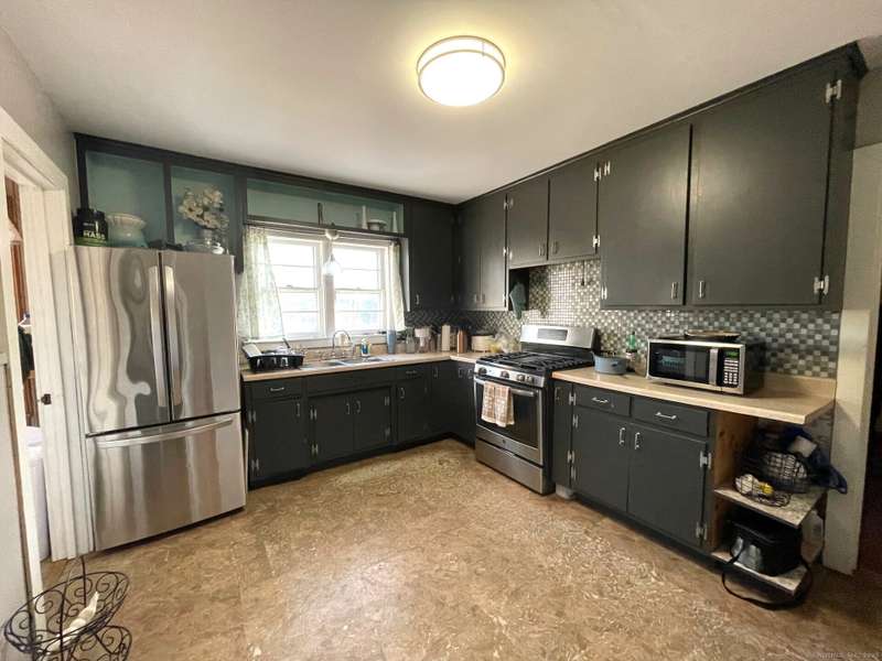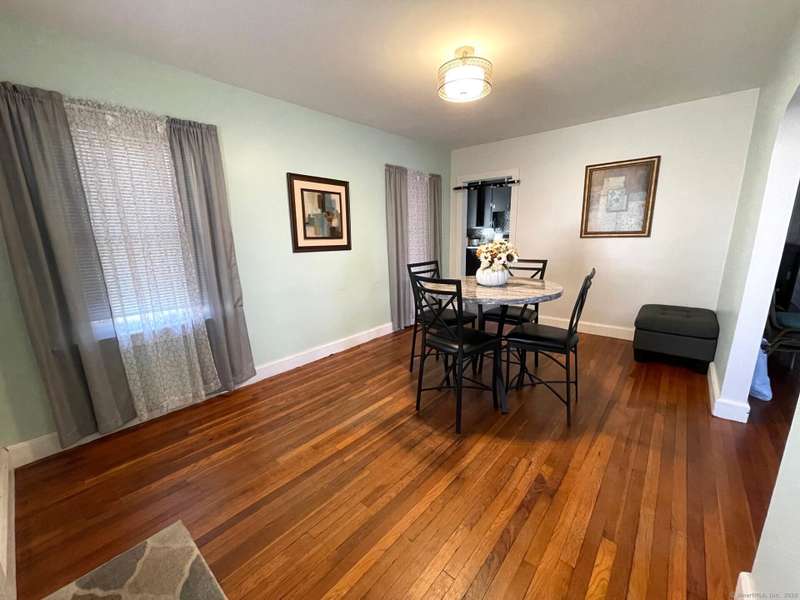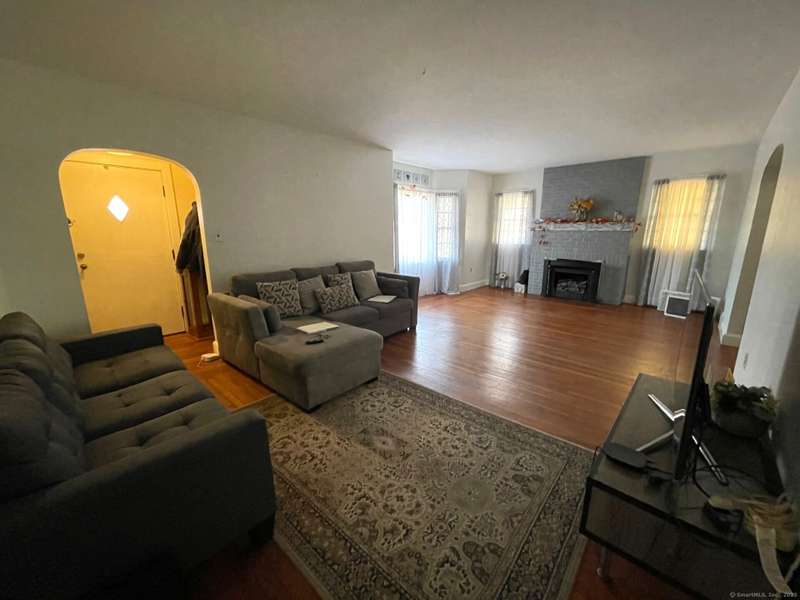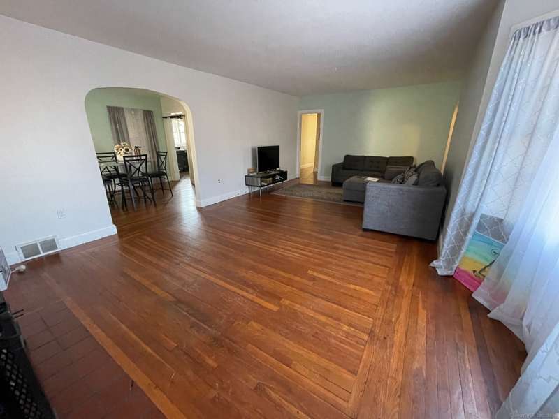 Oversized Cape with Detached 2-Car Garage. This spacious and inviting oversized Cape offers classic charm with modern potential. Featuring beautiful hardwood floors throughout, a cozy wood-burning fireplace, and a detached 2-car garage. Enjoy a covered porch just off the kitchen-perfect for relaxing or entertaining. The full basement is already plumbed for a second bathroom and includes a finished family room, offering additional living space and future expansion possibilities.