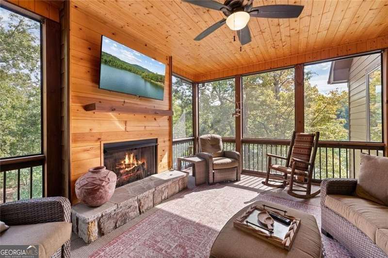 Luxurious Mountain & Lake Retreat at Lake Laceola, an Exclusive Gated Community Discover the perfect blend of elegance, comfort, and breathtaking scenery in this thoughtfully designed 5-bedroom, 4-bath home, nestled within one of the region's most sought-after, gated communities. From the moment you step inside, you're greeted by panoramic lake and mountain views framed by walls of windows, filling the spacious, open-concept living areas with natural light. Every detail has been carefully crafted, from luxury finishes to extensive custom cabinetry and thoughtful architectural touches throughout. Perfect for both intimate family living and grand entertaining, this retreat features a gourmet kitchen, an open great room with fireplace, a cozy screened in porch for enjoying crisp fall nights and a Ceramic/gas burning fireplace. The terrace level entertainment space, complete with billiards, bar, darts and a media theater allow for endless fun. You and your guests will be comfortable regardless of the weather with your whole house generator and tankless water heater. Enjoy the tranquility of your surroundings while still having access to first-class community features, including a clubhouse, swimming pool, private dock, pristine lake with trophy fishing. This Quiet (no-wake) lake allows for pontoons, kayaks, canoes and SUPs. You can access the lake from your backyard or from your boat in your boathouse. Outdoor enthusiasts will love the vistas from Yonah mountain, unlimited hiking trails, multiple near-by rivers, fly fishing and endless other recreational opportunities-all just outside your doorstep. This home isn't just a place to live-it's a sanctuary where luxury meets nature. Whether you're seeking a primary residence or an unforgettable vacation retreat, this property offers the perfect combination of high-end living and outdoor adventure.
