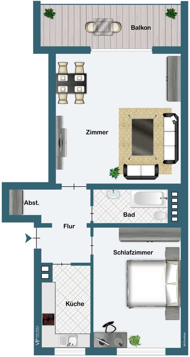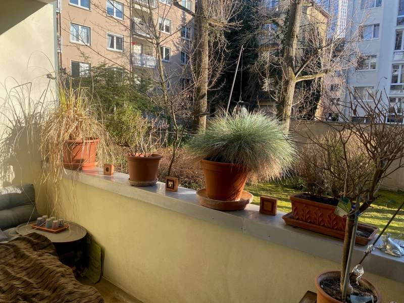 This well-designed two-room apartment is located on the mezzanine floor of a well-kept property in Frankfurt's popular Westend district. The city center and the Alte Oper are within walking distance. There are two practical built-in wardrobes in the spacious entrance area. The kitchen and bedroom are on the right. To the left is the living room with direct access to the balcony. From here you have a beautiful view of the communal garden. The bathroom has a bathtub. The apartment is currently rented out for 570 euros. A large cellar is assigned to the apartment.