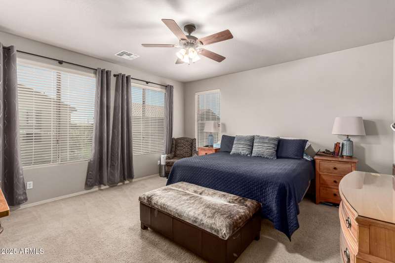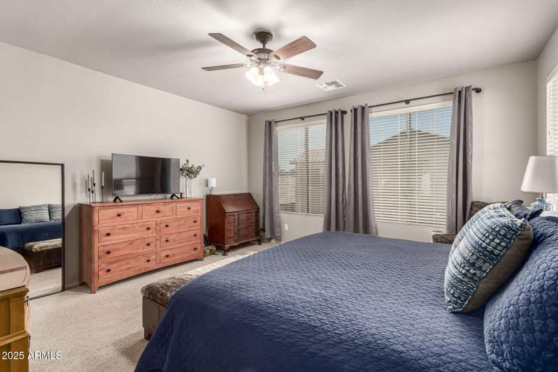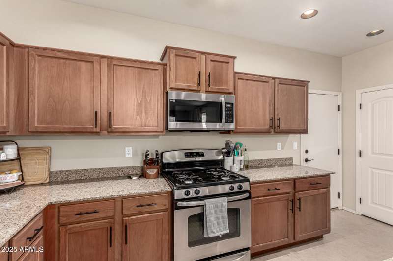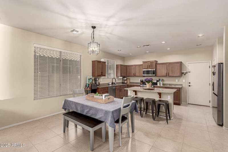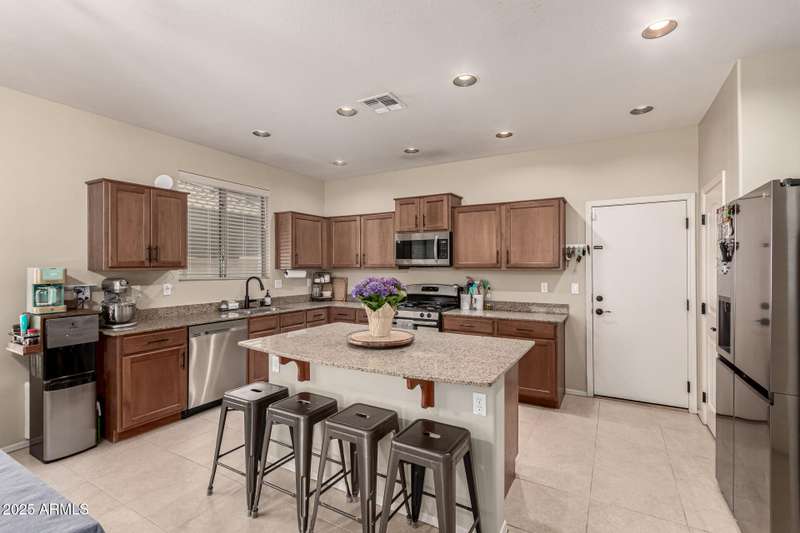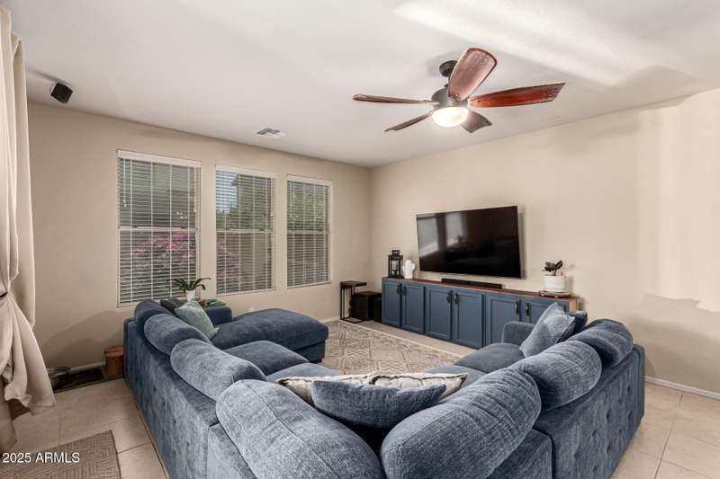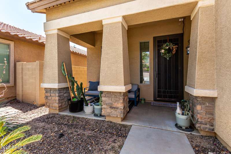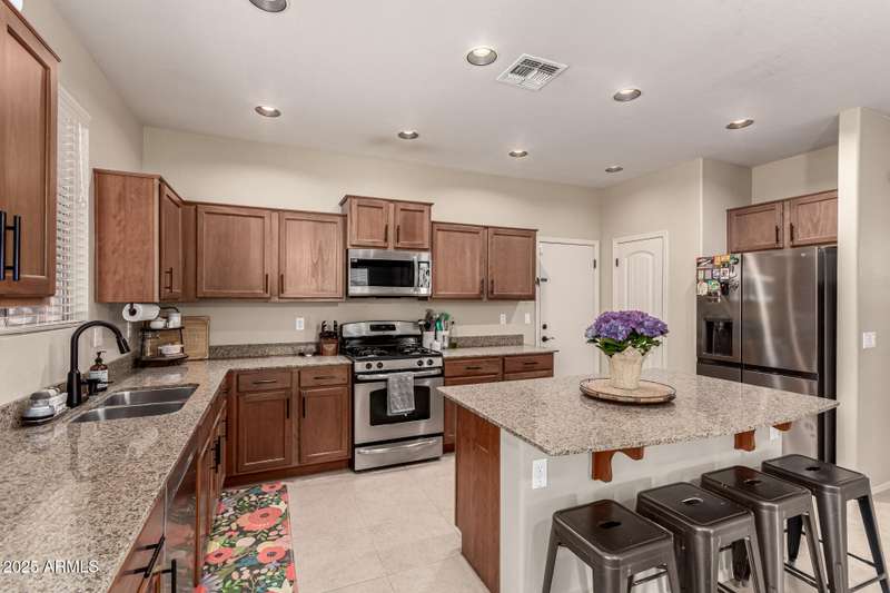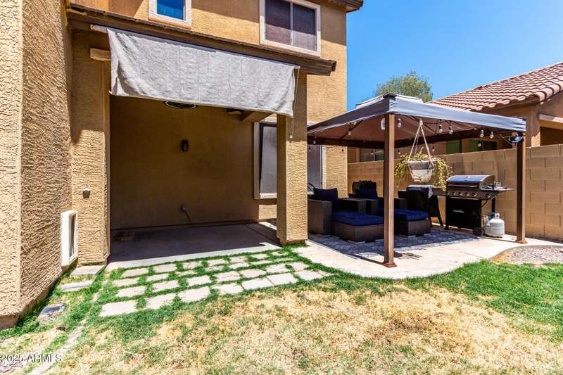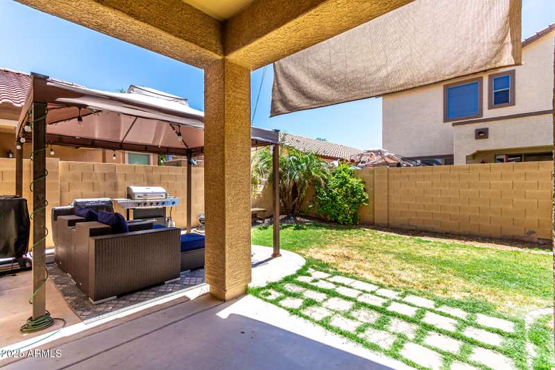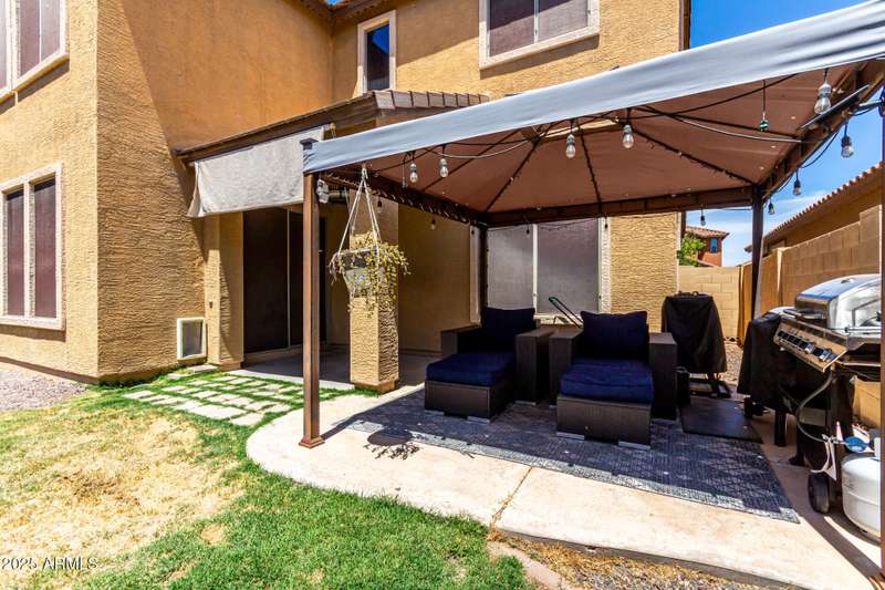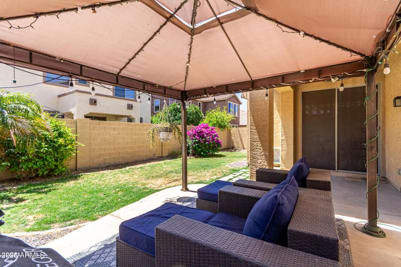 Embrace the allure of this beautiful 4-bedroom home in Chandler! Upon arrival, you'll be greeted by a cozy front porch that sets the tone for what's inside. You'll surely LOVE the harmonious open floor plan enriched by tile flooring, plenty of natural light, and pre-wired surround sound for immersive entertainment. Stainless steel appliances, granite counters, recessed lighting, walk-in pantry, ample cabinets, and an island with a breakfast bar make this kitchen a cook's delight. Flexible loft is ideal for a TV area, game space, or lounge zone. In the large main retreat, you'll have plush carpet, an ensuite with dual sinks, and a walk-in closet. Spend quiet moments in the relaxing backyard, complete with a covered patio and gazebo. Don't miss this amazing home!