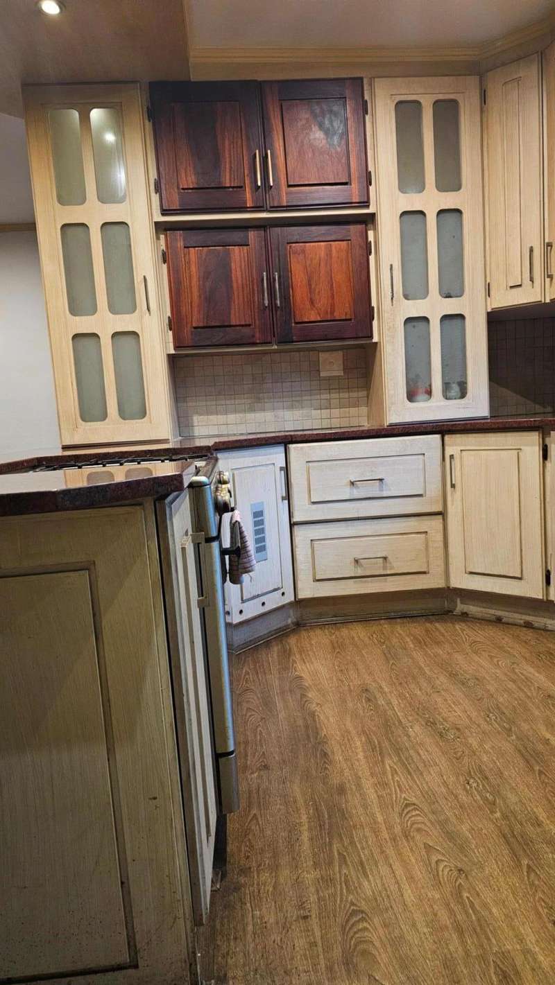 It also consists of an open plan kitchen and dinning area, with lots of ample space cupboards, a double door fridge space, a big stove for cooking and baking lovers. This kitchen also comes with a scullery, main kitchen there's a single sink and double sink in the scullery. Upon exiting the dinning area you have a beautiful big tv room/ lounge and a big hallway.