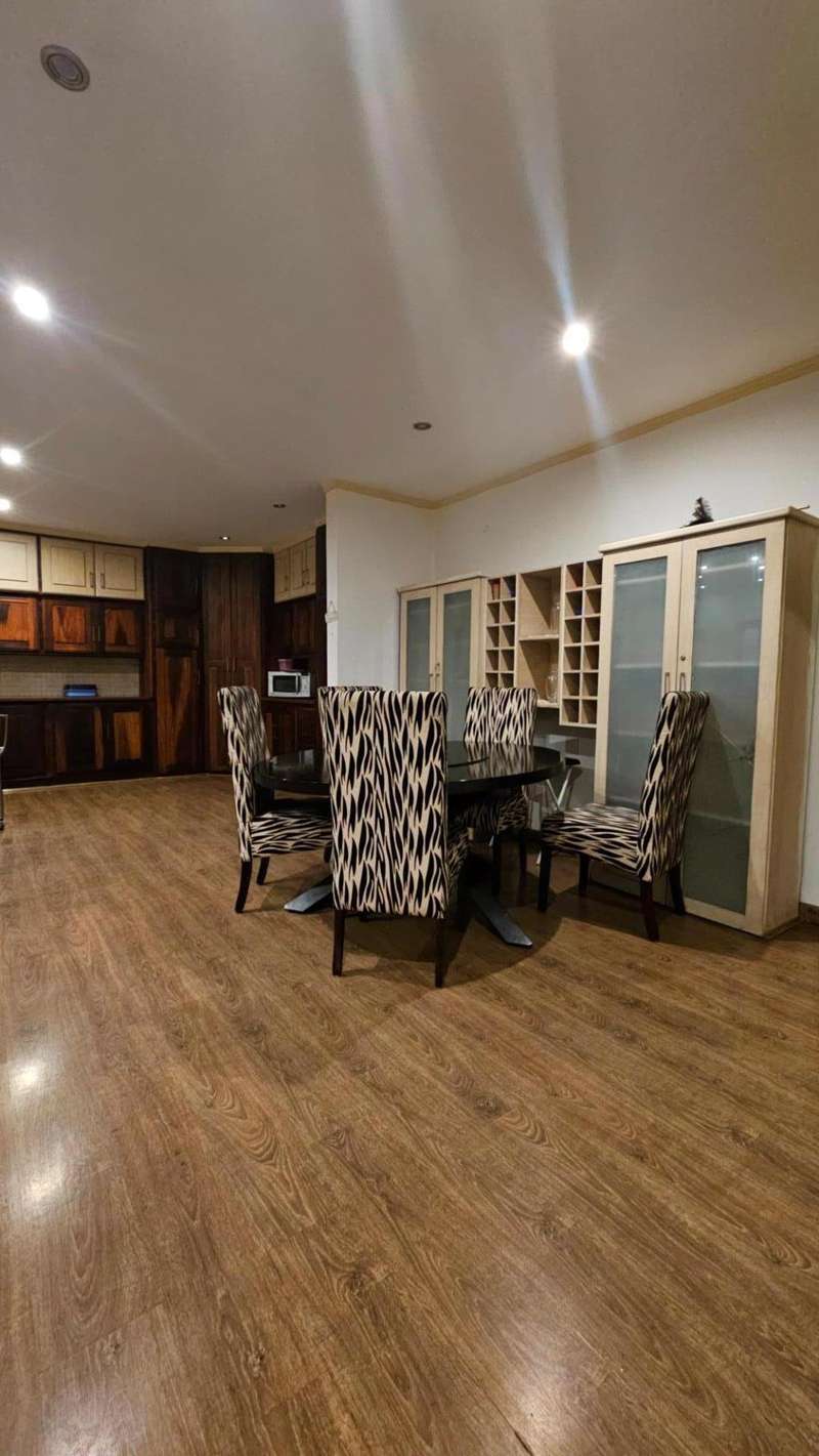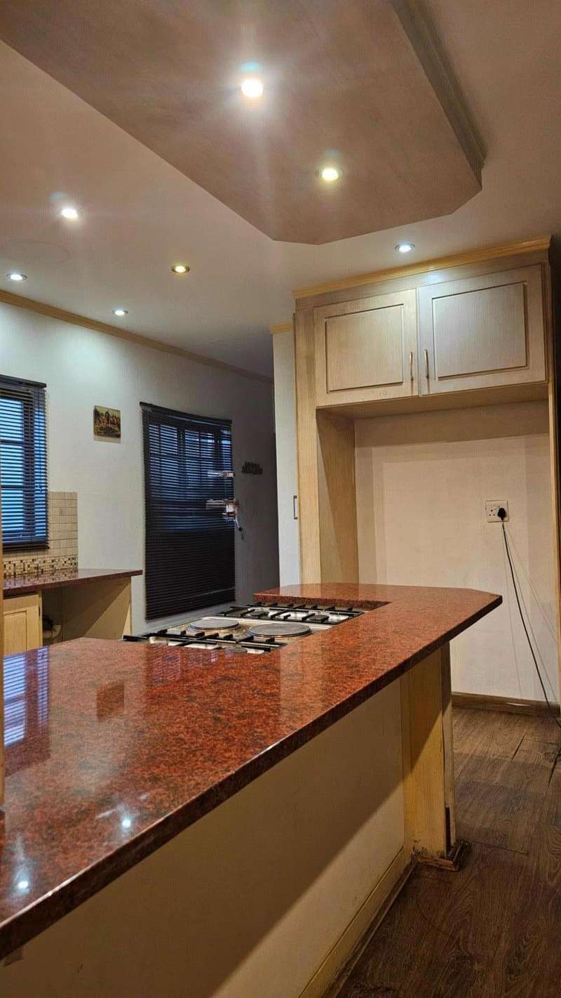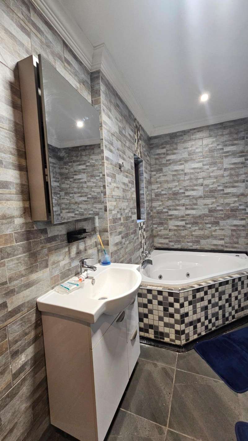 This home also comes with a double garage one which passes through the other side of the house were you will meet a beautiful garden, swimming pool with an upstairs Wendy house and a long palm tree, on the other side of the house, there's a well functioning jacuzzi.