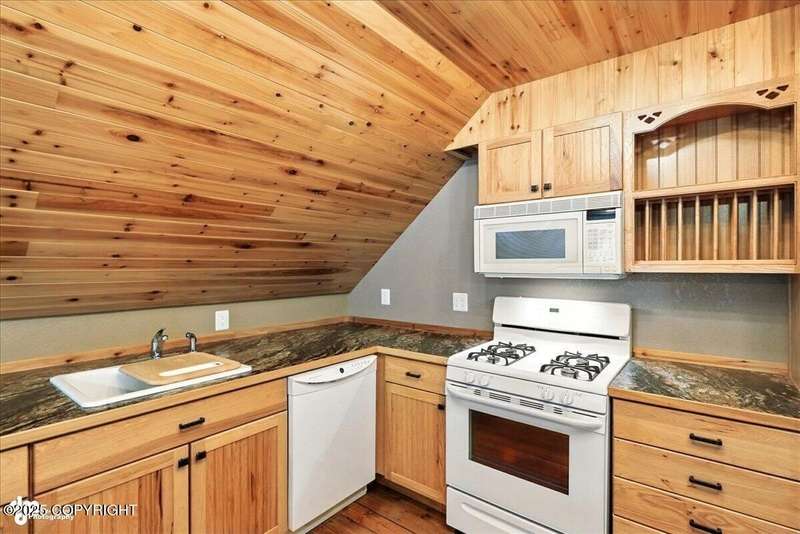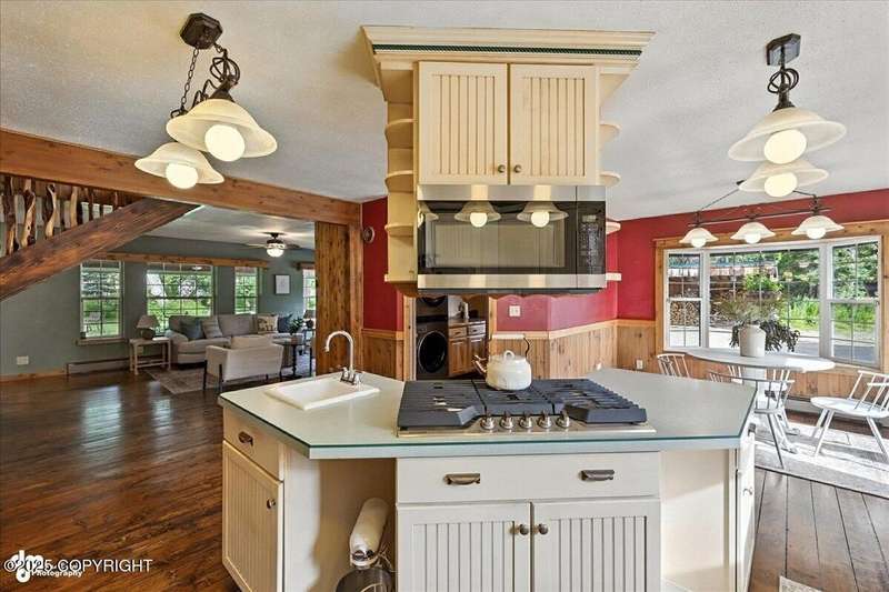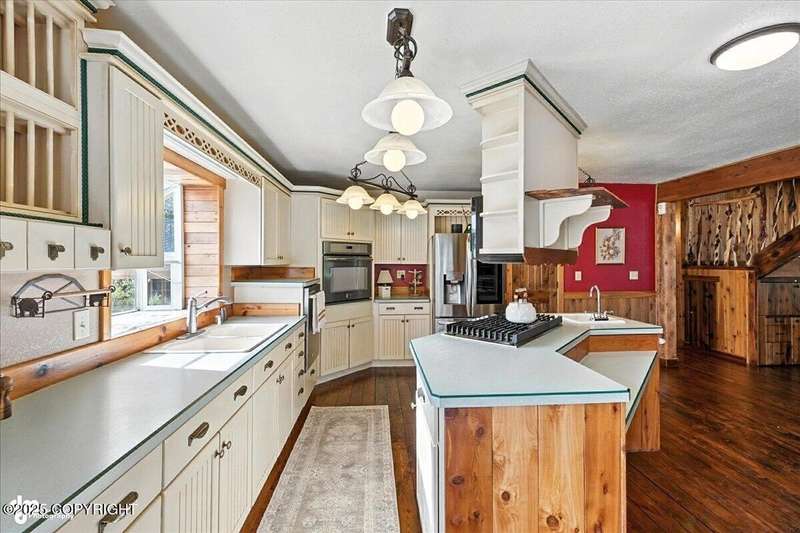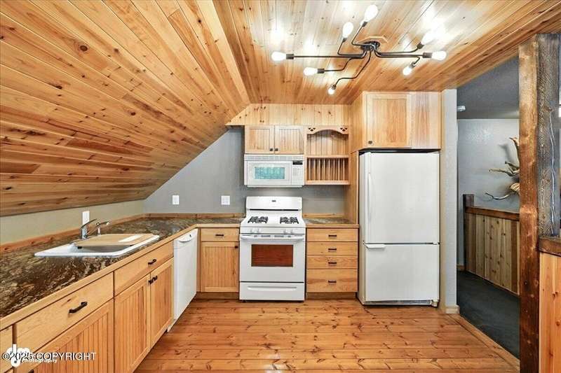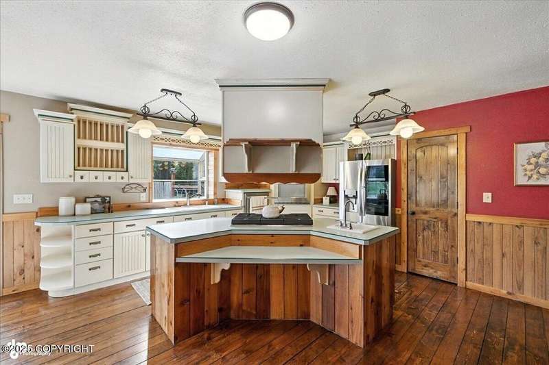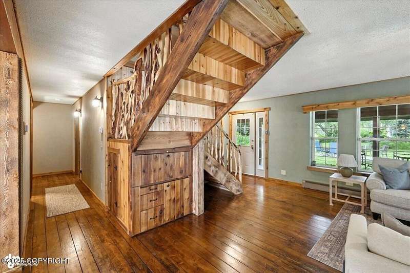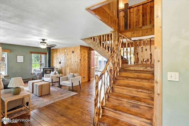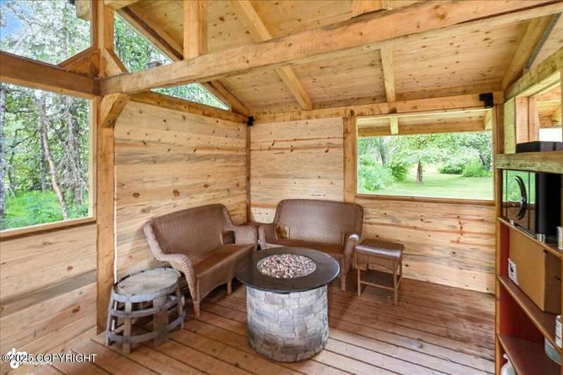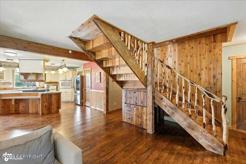 PRIVATE RETREAT ON 2.59 ACRES IN NORTH KENAI! Welcome to this beautifully maintained and spacious 5-bedroom, 3-bath home offering over 3,257 SF of thoughtfully designed living space. Nestled on a private, wooded lot with lake view at the back of the property, this one-of-a-kind home has been operating as a successful BnB for the past few years—offering both exceptional comfort and income A separate upstairs living space provides flexibilityideal for multigenerational living, long-term rental, or converting into a fully equipped apartment. Recent upgrades & standout features include: " New exterior stain (2024) " New decks and railings (2024) " Detached garage + work shed " Screened gazebo with hot tub & area to add a sauna " Fenced garden with orchard trees " Beautifully landscaped throughout " Heated greenhouse & garden shed " Custom diamond willow features throughout " Solid wood floors & matching pine doors " Soaker tub in the master suite " All appliances included (only 3 years old) " Incredible laundry area " New boiler (2012) - serviced annually " Septic pumped (2023) Built with efficiency and longevity in mind, the home rests on a insulform block wall foundation with HWBB natural gas. With ample space to entertain, relax, or expand, this North Kenai retreat is the perfect blend of Alaska charm, comfort, and opportunity.