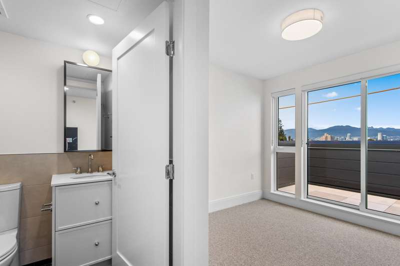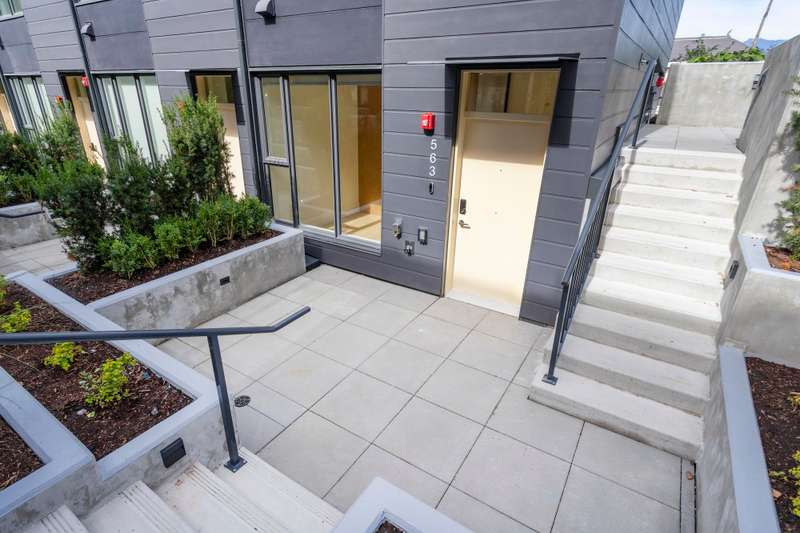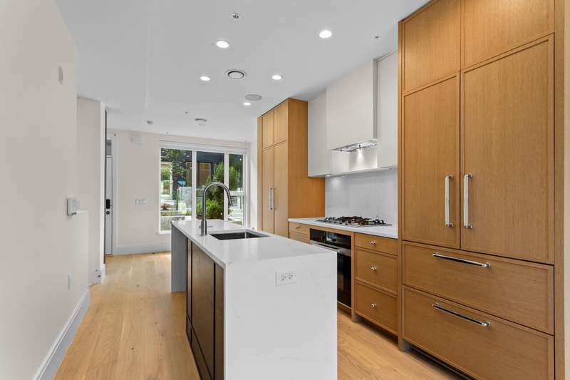 MOVE IN READY | Discover this stunning corner home — a 3-bedroom & den + flex residence at Seasons by Sightline, offering modern living on a quiet, tree-lined street. The bright and airy living area flows seamlessly into a gourmet kitchen with Miele appliances, sleek cabinetry, and an oversized island. The primary suite features an en-suite bath, walk-in closet, and a private patio with gorgeous downtown views. Two additional bedrooms, a den, and a versatile lower-level flex space provide ample living and work-from-home options. Enjoy the private patio and landscaped surroundings. Includes A/C, custom built-in cabinetry, built-in speakers, EV parking, and direct parkade access. Prime location near shopping, SkyTrain, dining, and top schools. Schedule your showing today!