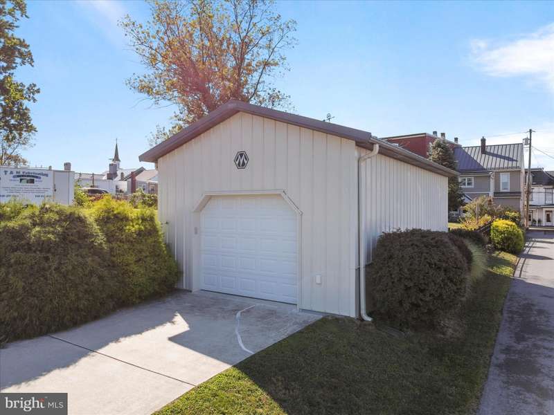 This adorable 3-bedroom, 1-bath home combines the classic character with some modern updates. Featuring an updated full bathroom and kitchen, bright and cozy living spaces and plenty of natural light, this end-unit offers comfort and charm. Main level and upper level has mostly hardwood floors. Attic has a wood floor and is great space for storage. Enjoy relaxing on the beautiful covered front porch or in the rear fenced yard on the brick patio. The rear yard has a shed for all of your lawn and outdoor tools and an oversized detached garage. Enjoy the small town feel of in-town living-just 15 minutes from all the shopping and dining you need. Close to Clear Spring Park, commuter routes(I-70), and White Tail.
