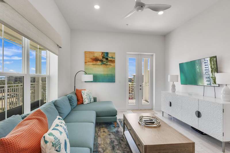 Welcome to your dream coastal retreat at Gulf Place Residences! This well maintained, top-floor, corner unit offers the epitome of luxury living with breathtaking Gulf views. Unit #312 boasts the distinction of being the Very First Preconstruction Reservation at Gulf Place Residences in January 2020, ensuring a prime location and exclusive features.As you step into this meticulously designed space, you'll be greeted by 10' ceilings and an abundance of natural light that enhances the tile floors throughout. The expansive 266 sqft wrap-around balcony invites you to enjoy the stunning Gulf views, providing an unparalleled backdrop for both sunrise and sunset.The fully furnished interior is adorned with high-end finishes, including quartz countertops and kitchen... appliances. Convenience is key with the inclusion of a washer/dryer, making coastal living a breeze. This unit also comes with a large separate storage unit, providing ample space for all your beach essentials.This residence features concrete and steel construction, equipped with 180mph storm doors and windows to ensure your peace of mind during inclement weather.Gulf Place Residences is more than just a place to call home; it's an all-inclusive coastal community. With three deeded beach accesses, three swimming pools, two tennis/pickleball courts, BBQ grilling areas, an outdoor amphitheater, and a cafe, you'll find everything you need for a resort-style lifestyle. Enjoy the convenience of on-site restaurants, shops, art galleries, and Ed Walline Beach Park, all within the vibrant community at the scenic intersection of 30A.