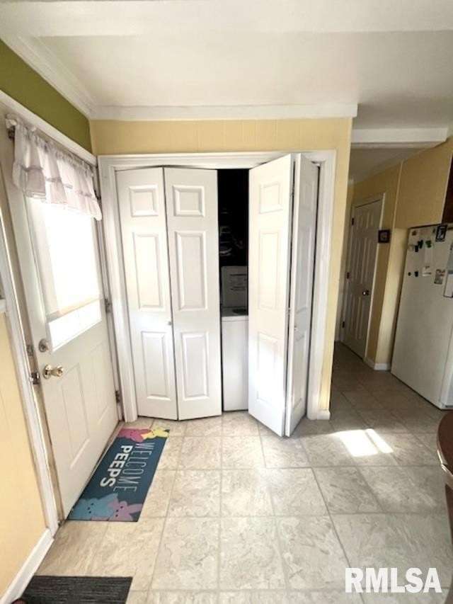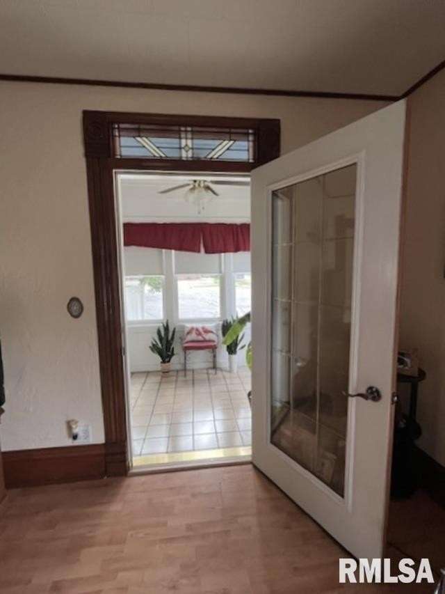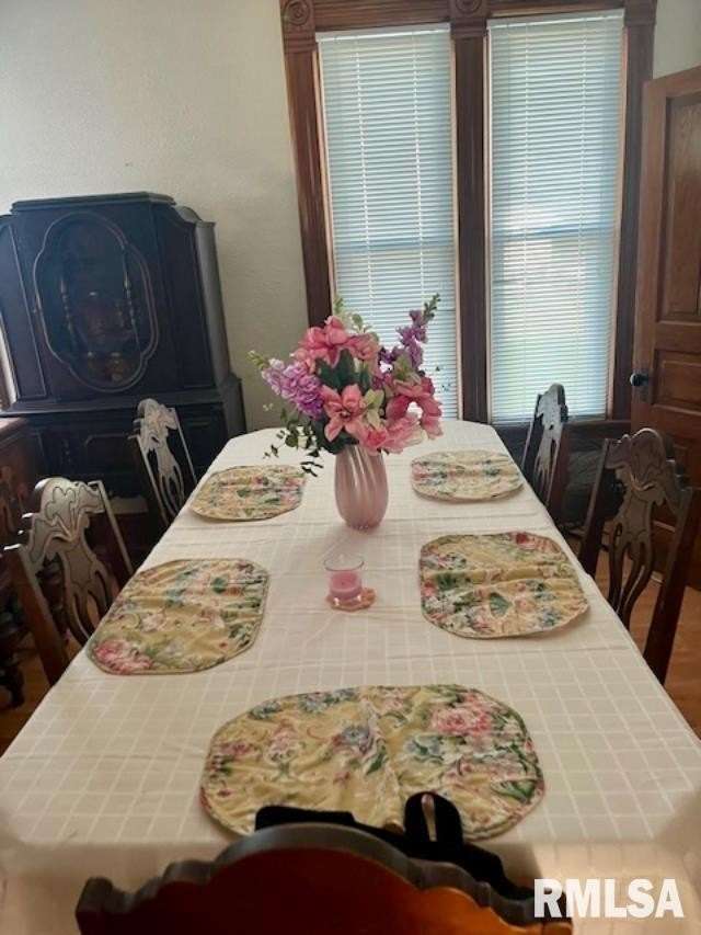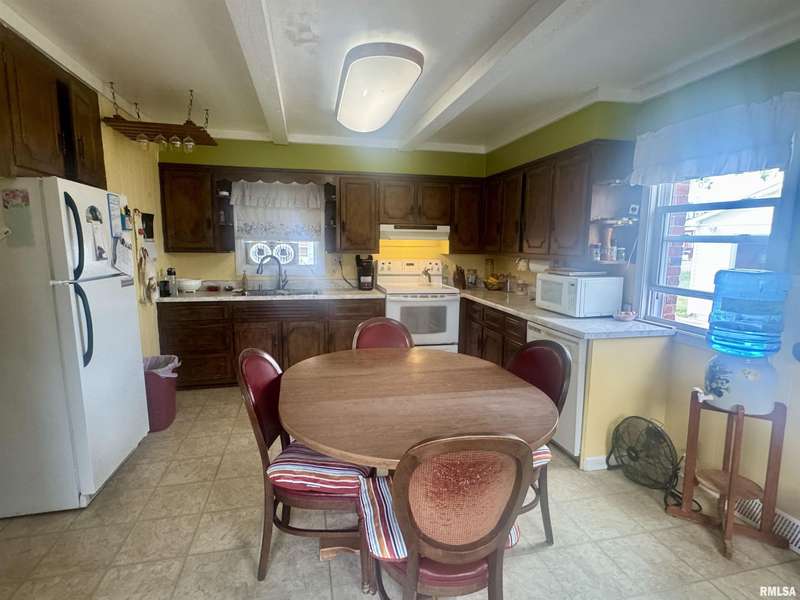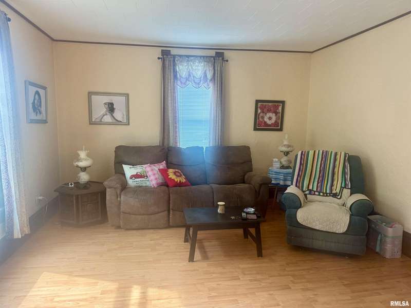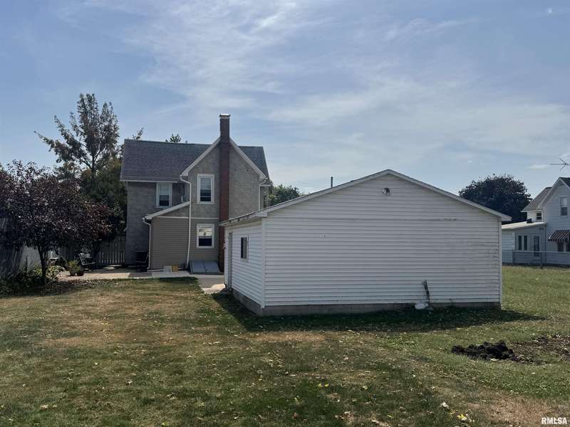 Charming, well-kept 2-story home offering ample space and large closets throughout. The eat-in kitchen flows seamlessly into a formal dining room with a built-in hutch and lovely pocket doors. Convenient main-floor laundry is located in the kitchen. The 6x9 enclosed front porch features a spacious closet. There’s also an office/computer room on the main level. Natural woodwork on trim and doors adds character. Upstairs, you'll find three generous bedrooms and a 6x9 storage room, along with a full bathroom boasting a beautiful clawfoot tub. Central air keeps the home comfortable, plus there’s an additional window air unit upstairs that can stay. The basement has its own outside entrance with New Steps (2024). The 22x24 detached garage and 8x8 shed with solar power offer extra storage and workspace for equipment. Recent updates include: Electrical panel (200 amp service) Furnace and A/C (2007) Roof (2010) Windows (2000) Front Window (2015) Sewer line from house to street (2015) Water heater (2023) Sump Pump (2024) Outside steps to Basement (2024) This home is zoned Commercial, offering potential for a business use, and the zoning contributes to the low taxes.