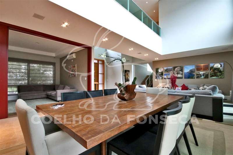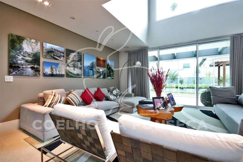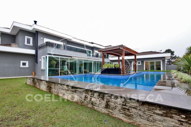 Lindo imóvel contemporâneo, construído em dois lotes no mais moderno Residencial de Aldeia da Serra. Ambientes integrados e um enorme laser. Possui, seis suítes, dois home offices, lareira, sauna, piscina com raia de 16 metros, geração própria de energia (fotovoltaica) e utilização de água de reuso.