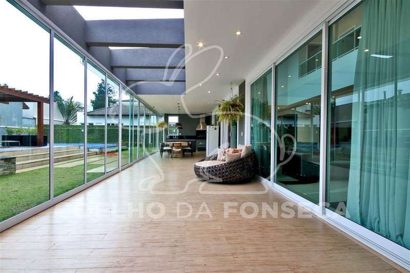 Casa em Condomínio no bairro Aldeia da Serra com 680m² área construída, 5 dormitório(s), 5 suíte(s), 6 vaga(s), 9 banheiro(s), piscina, escritório, sauna, mobiliado (a), ar condicionado, dep. de empregados, aquecedor solar, pé direito duplo.