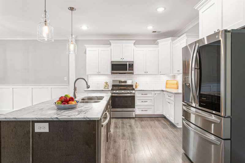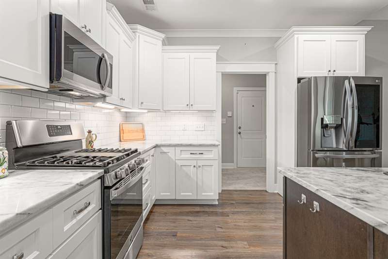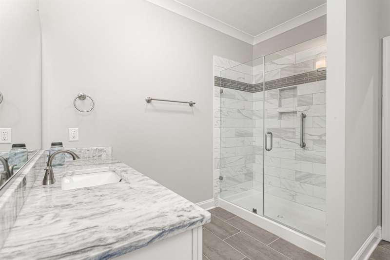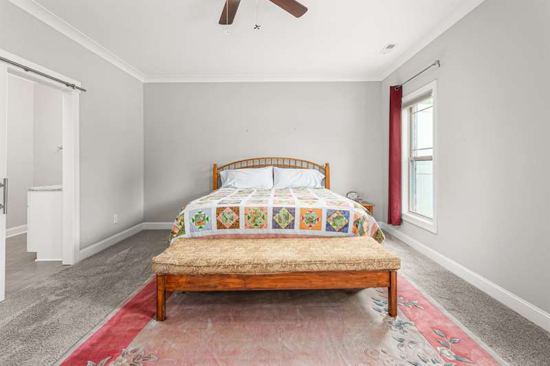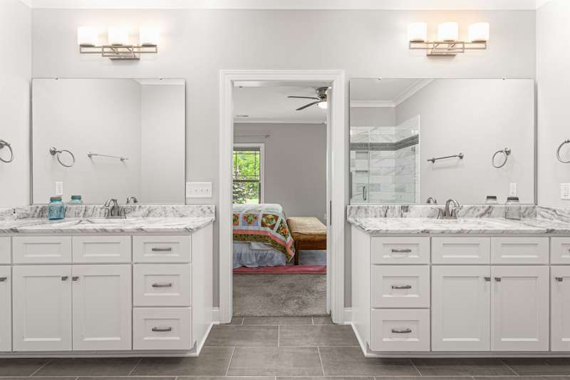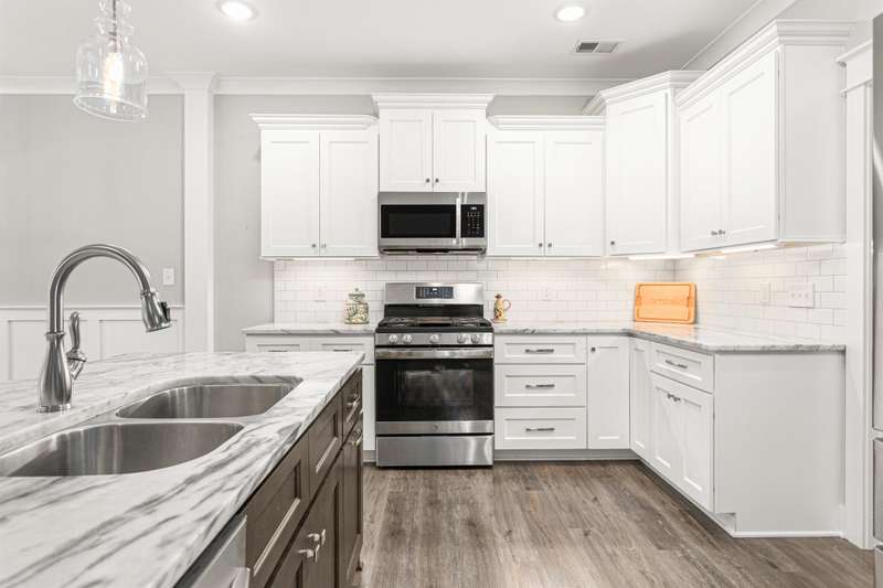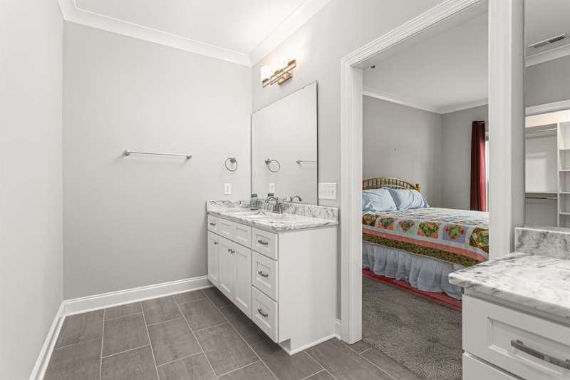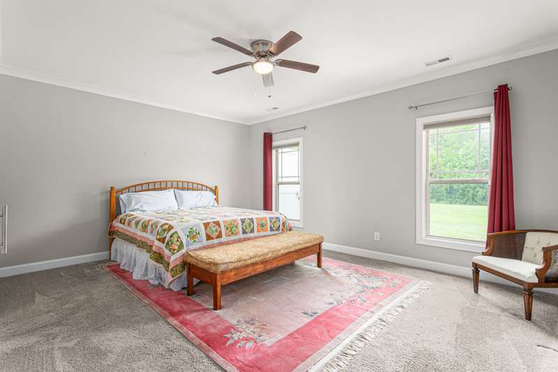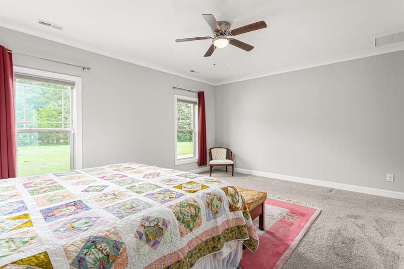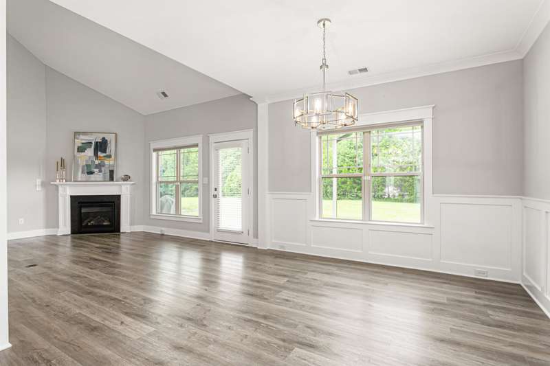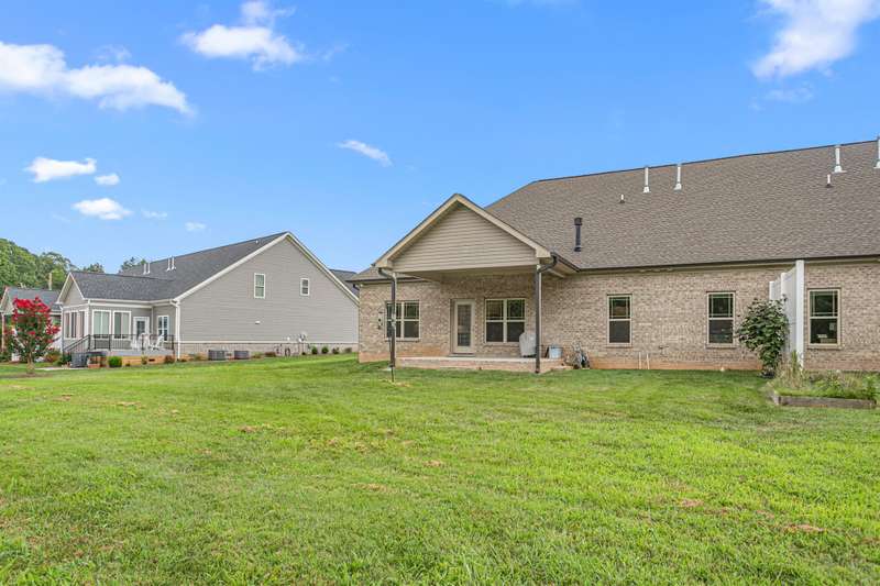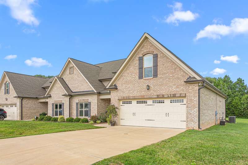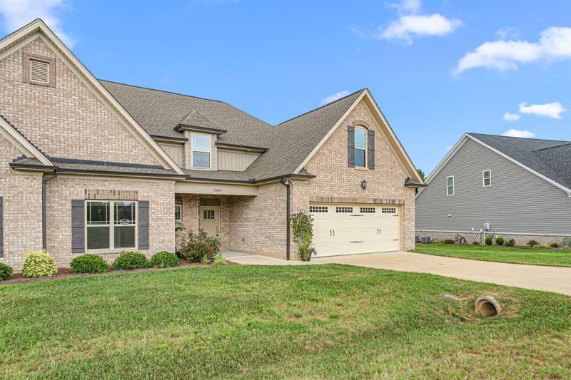 If you've been looking to downsize, or are seeking virtually maintenance-free living, this duplex-style all-brick townhome may be the one for you! Conveniently located between Oak Ridge & Summerfield, this home offers a main level primary bedroom, spacious ensuite bath with separate vanities & large tiled shower, & an open & gracious living/dining/kitchen space with vaulted ceilings & large island. Kitchen has gas range; main level living space offers easy care LVP flooring. Second bedroom & adjacent full bath on the main level. Main level laundry & pantry off kitchen. Upstairs offers an additional bedroom, full bath & huge walk-in attic space, some of which offers expansion possibilities for future bonus room. Rear covered porch overlooks private backyard. Level lot, slab foundation & attached two-car garage make it easy to get in & around the main level of this home. Easy access to Greensboro, PTI Airport & all parts of the NC Triad via I-73. Rare opportunity - come see it today.