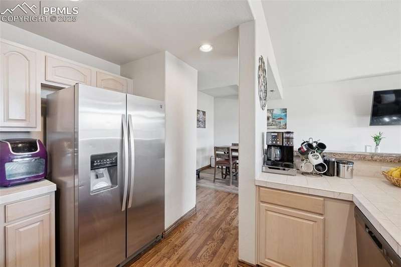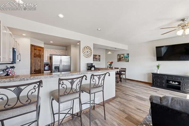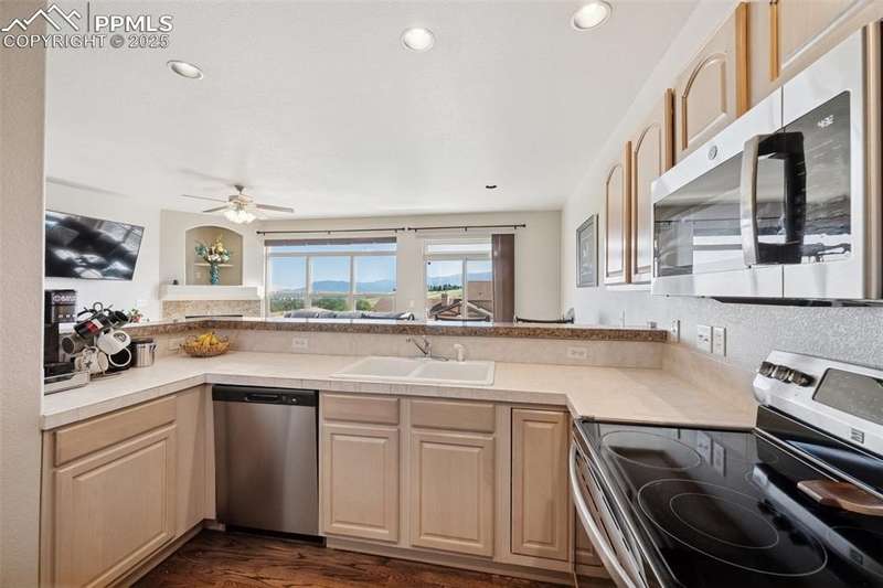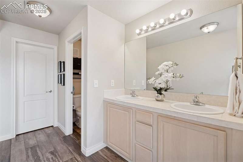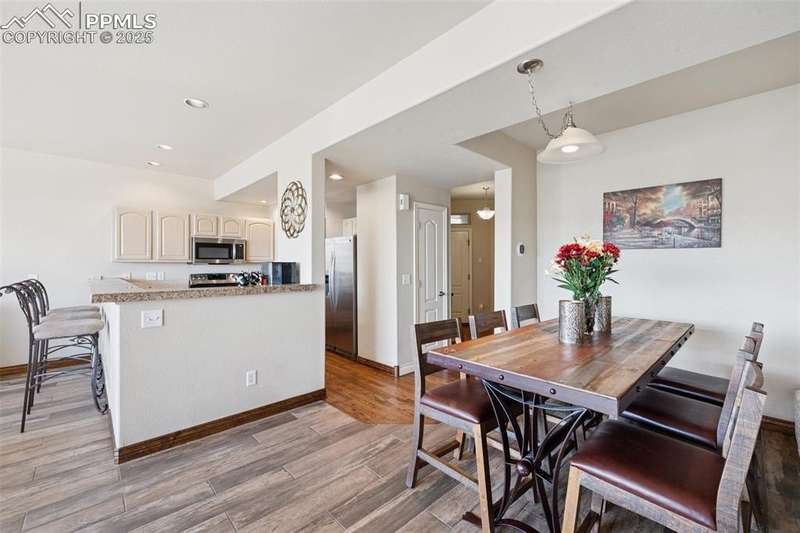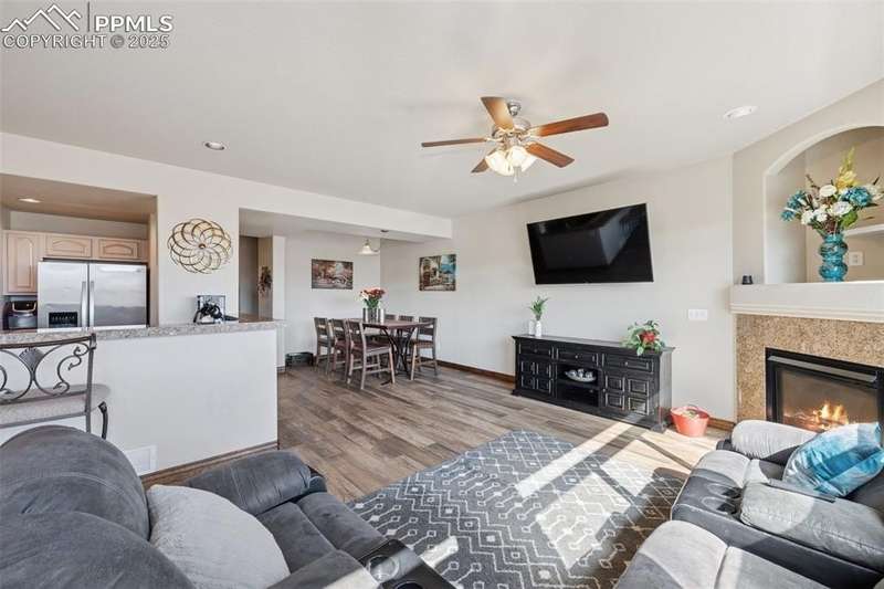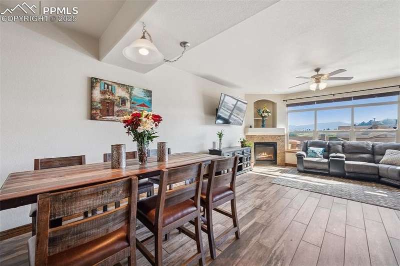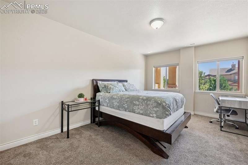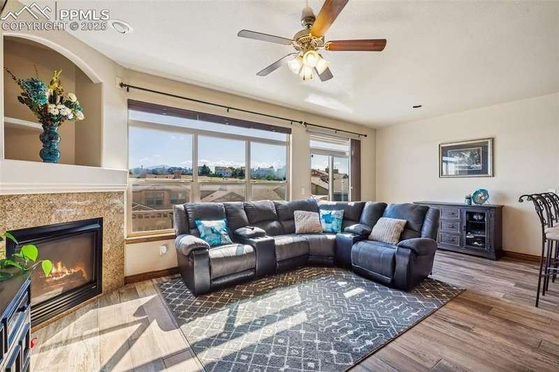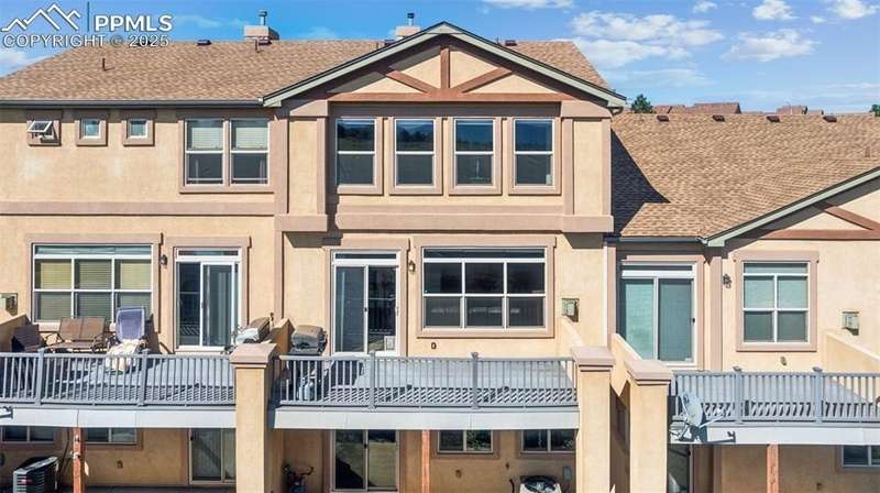 Welcome to this beautifully maintained 3-bedroom, 3.5-bathroom townhouse nestled in the highly sought-after Briargate area, within top-rated District 20 schools. Featuring 2,271 sq ft of stylish living space, this home impresses with stucco and stone accents, a 2-car attached garage, and lovely mountain views from the main-level balcony. Step inside to discover an open main floor with 9-ft ceilings, wood-look tile flooring, a cozy gas fireplace, and plenty of natural light. The modern kitchen includes stainless steel appliances, a pantry, and convenient access to the dining and living areas. Upstairs, you'll find two spacious bedrooms, each with its own attached bathroom, plus a convenient laundry area. The finished basement offers excellent flexibility with a third bedroom, a full bath, a family room, and a walk-out to the private patio—perfect for guests, home office, or extra living space. Other highlights include central A/C & newer water heater (replaced in 2024). Come visit this sharp townhouse in a prime location close to shopping, dining, parks, and more!