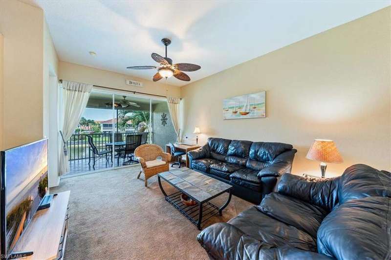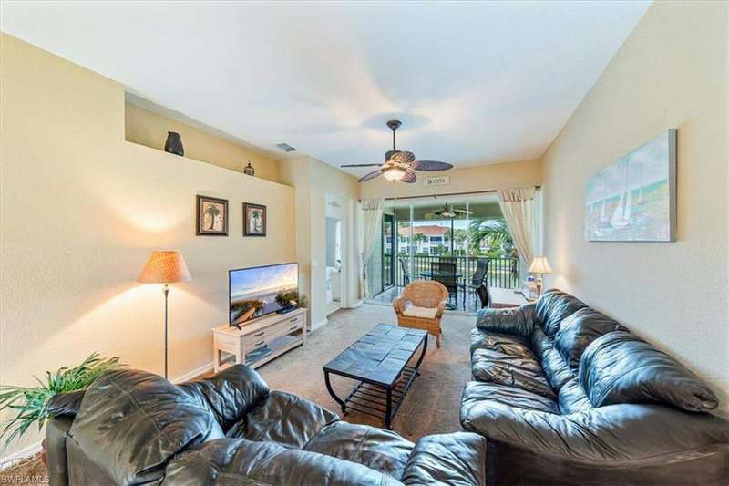 Enjoy Florida sunsets from your west facing covered balcony with unobstructed lake views. This 2 bed/2 bath is a split bedroom floorplan affords privacy between the primary and secondary suite, while the spacious great room is ideal for entertaining. Lighthouse Bay is a gated community uniquely situated in the heart of Southwest Florida. You are only minutes away from Coconut Point, RSW Airport, Gulf beaches, and dozens of golf courses. Within the gates, Lighthouse Bay offers 5 pools, a fitness center plus sauna, 2 boat houses, a clubhouse with multiple rec rooms and affiliations to the Brooks Commons Club! Available for rent May 2025 through December 2025.
