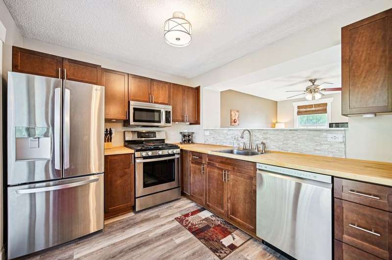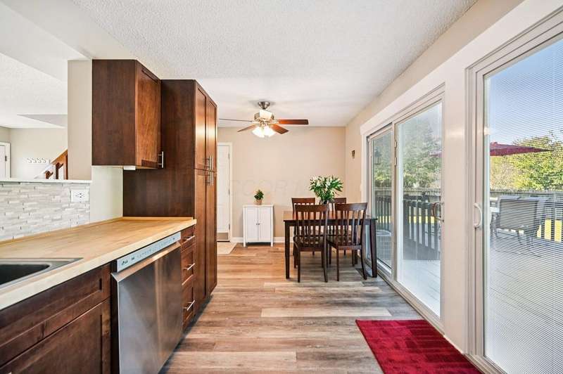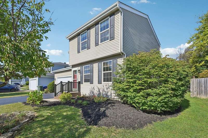 Welcome to this beautifully updated 2-story home in Cross Creek Village within highly rated Hilliard Schools! Offering 3 bedrooms, 1.5 baths, and over 1,200 sq ft, this home has been thoughtfully maintained and improved for today's lifestyle.Step inside to find an inviting main level with updated flooring and a remodeled kitchen featuring soft-close cabinetry, butcher block counters, stone backsplash, LG stainless steel appliances, and modern lighting. Bathrooms have been refreshed with stylish updates, while custom blinds and newer paint add a polished touch throughout.The lower level is framed and ready for finishing and will be perfect for a future rec room or home office. Major mechanicals have been taken care of: roof (2024), windows (2019), furnace & A/C (2016), water heater and sump pump (2025), insulated garage door (2023).Enjoy outdoor living on the large deck overlooking the private, fenced backyard with storage shed. New front steps (Sept. 2025) and exterior lights enhance curb appeal. Additional features include a newer sliding door with built-in blinds, ceiling fans, designer front door, and a 2-car garage.Move-in ready with peace of mind and room to grow...don't miss this opportunity in one of Hilliard's most desirable neighborhoods!