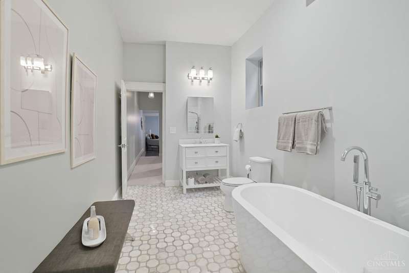 Classic Cincinnati Victorian rowhouse renovated from top to bottom with stylish, modern finishes that seamlessly blend with the original character. Entire 2nd fl is primary ensuite with gorgeous primary bath, dressing area and laundry. Third floor is private oasis for children or guests. Single Family living in the city!