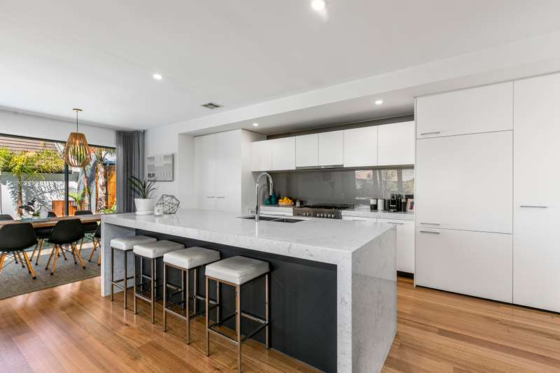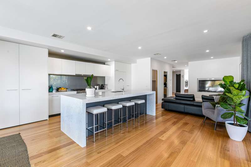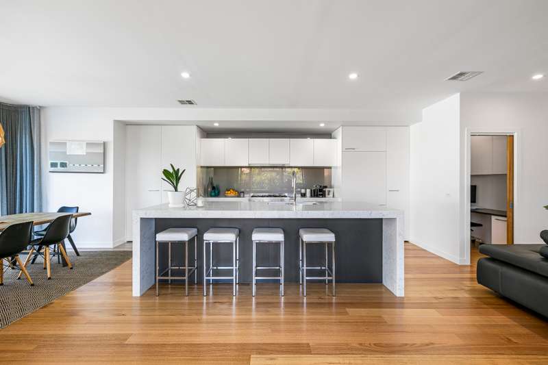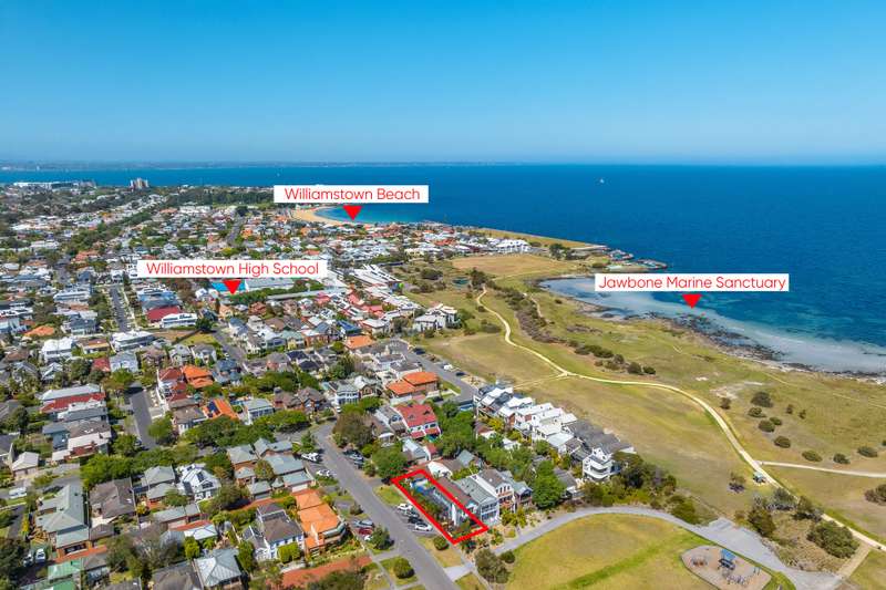 Recently renovated throughout that included a new kitchen, timber floors, staircase and other modern updates this stunning home is perfectly positioned fronting parkland and with water views across the lush greenery of Jawbone Reserve Playground to Port Phillip Bay. A bright open-plan living, dining, and kitchen forms the heart of the home looking over the in-ground pool. The brand-new kitchen boasts modern stainless-steel appliances, stone tops and an abundance of storage. The formal dining area flows directly out to the undercover alfresco with bi-fold doors complete with a built-in barbeque, creating a perfect indoor-outdoor entertainment area. Additional living via a front family room complete with an inviting fireplace that creates a cosy atmosphere. A separate study provides a quiet space to work from home, powder room and spacious laundry with direct outdoor access adds to the home's functionality and convenience that also includes double glazed windows and Solar system. Upstairs, the home continues to impress with four generously sized bedrooms. The master suite serves as a peaceful retreat, complete with built-in robes, a beautifully appointed ensuite and a private balcony with stunning views over the Jawbone Marine Sanctuary and Bay. The remaining bedrooms are serviced by a stylish central bathroom featuring a full-sized bath. A sparkling in-ground pool surrounded by landscaped gardens brings a sense of resort-style living to your doorstep making this home a sanctuary for entertaining and everyday family enjoyment. There is rear lane access to a double lock-up garage offering secure parking and additional storage. With an unbeatable lifestyle location and just moments from Williamstown's beautiful beaches, nature trail, local Rifle Range shops, schools and cafes, this property offers a rare opportunity to secure a dream family home in an exceptional bayside setting.