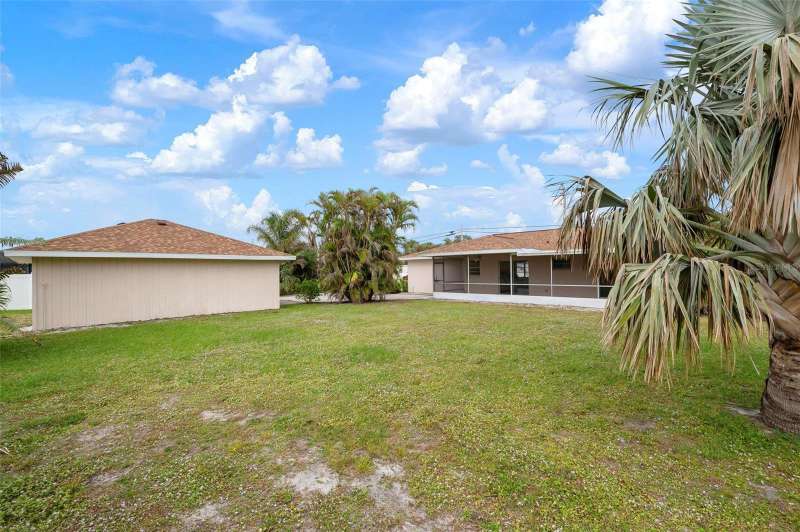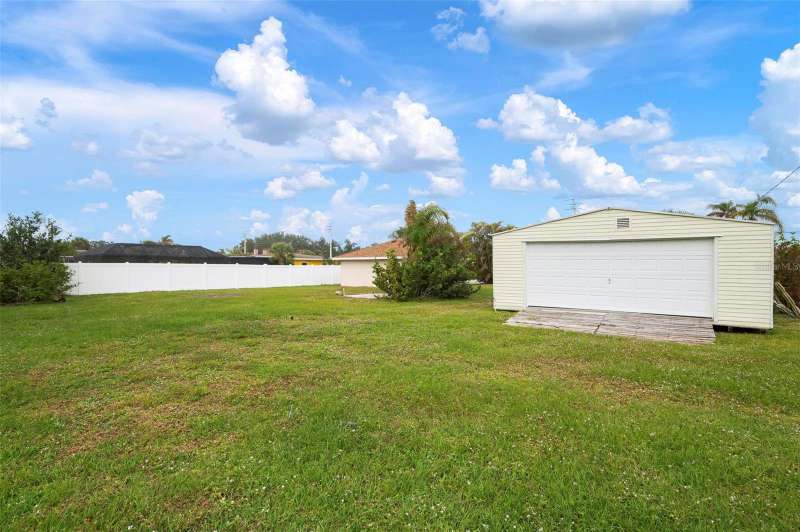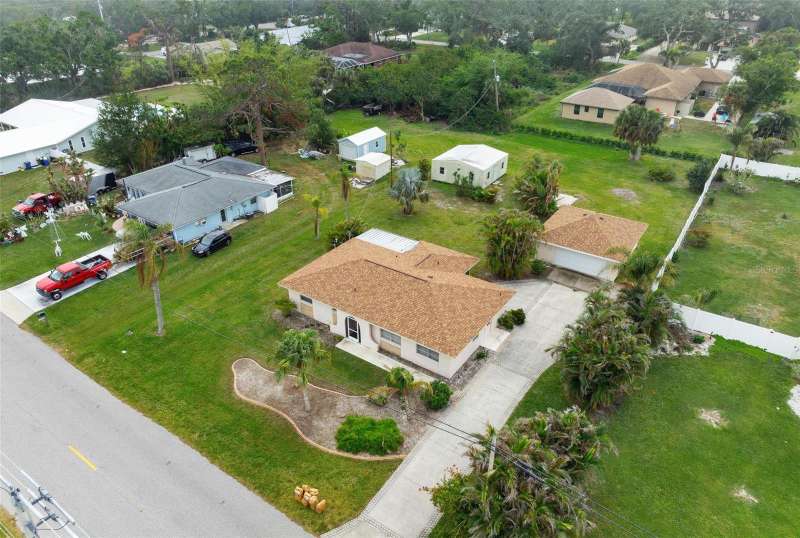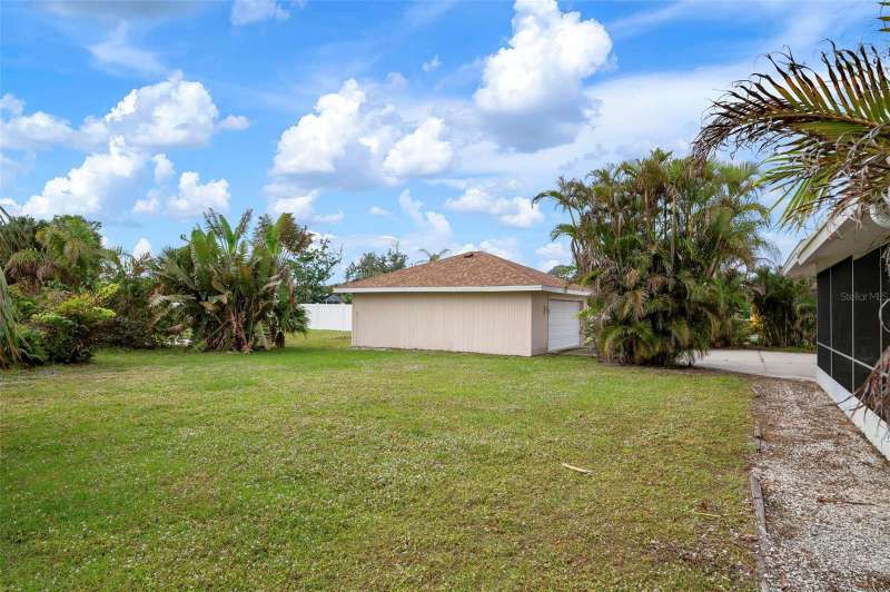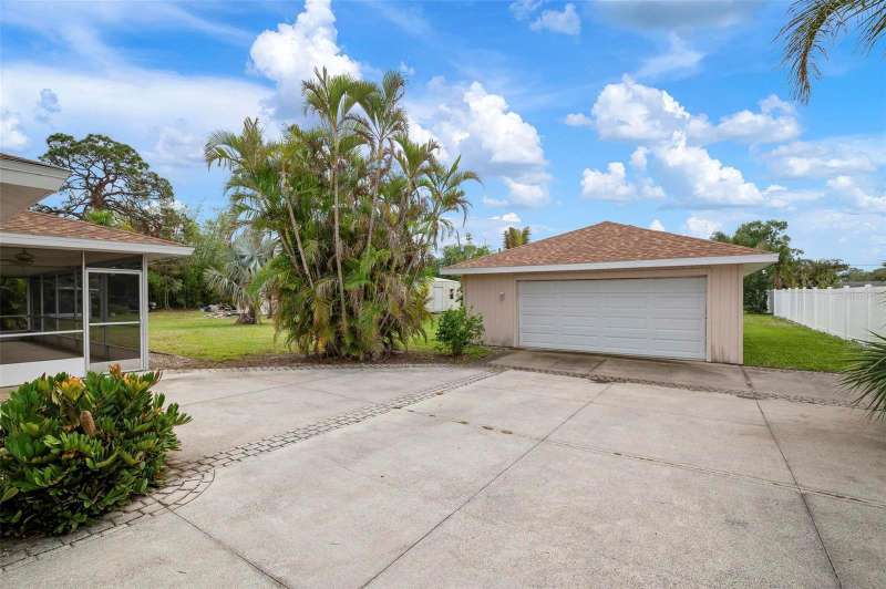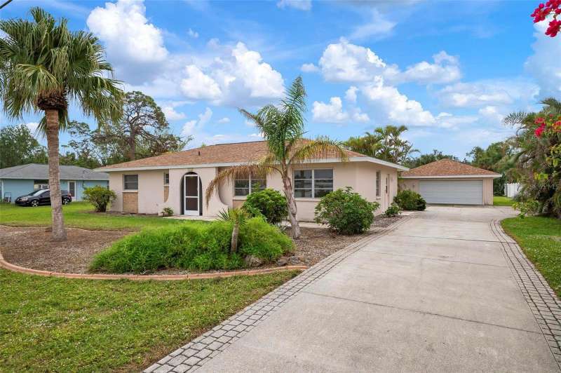 Under contract-accepting backup offers. One or more photo(s) has been virtually staged. Discover the essence of Florida living in this charming 2-bedroom, 2-bathroom home, nestled in the peaceful Manasota Gardens subdivision of Englewood. Set on over half an acre of lush, private land, this home offers the perfect retreat where you can relax and soak in the warm Florida sun. Located just 1.3 miles from both the Manasota Boat Ramp and the pristine Manasota Beach, you will have easy access to the Gulf Coast's crystal-clear waters and endless outdoor adventures. This well-designed home features a spacious den, an inviting primary bedroom with an ensuite bathroom, and direct access to the lanai. Whether you are unwinding indoors or enjoying the outdoors, this home is the perfect sanctuary. Car enthusiasts and hobbyists will appreciate the oversized detached garage and additional shed with a garage door opening, ideal for storing vehicles or recreational gear. Conveniently located near restaurants, shopping, cultural events, and all the best of Englewood and Venice, this home is a gateway to the vibrant Florida lifestyle. Situated in Flood Zone X, this home was unaffected by Hurricane Ian and the historic storm surges of Hurricane Helene and Hurricane Milton, offering peace of mind for years to come. Make this your Florida paradise today!