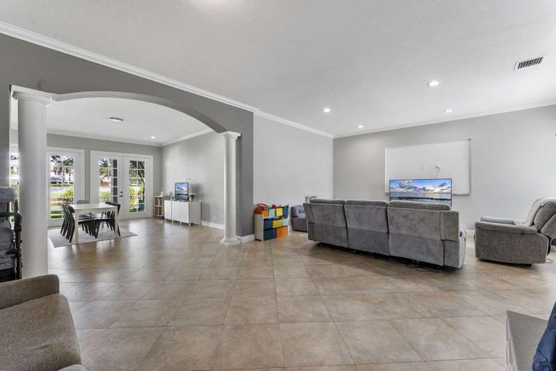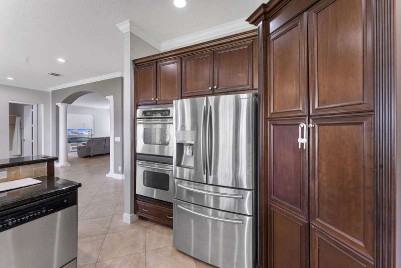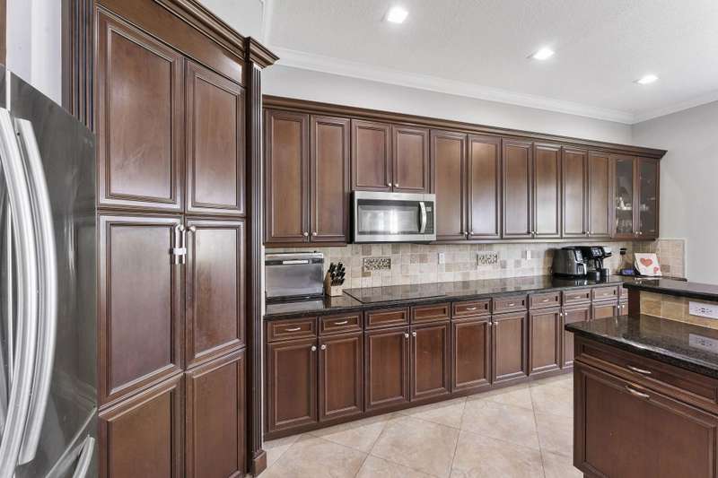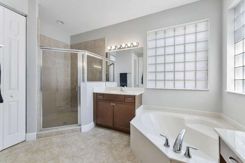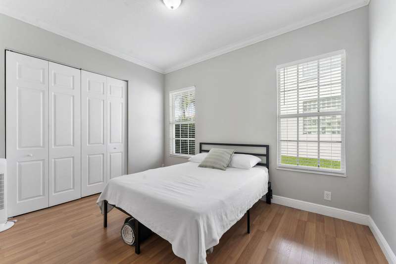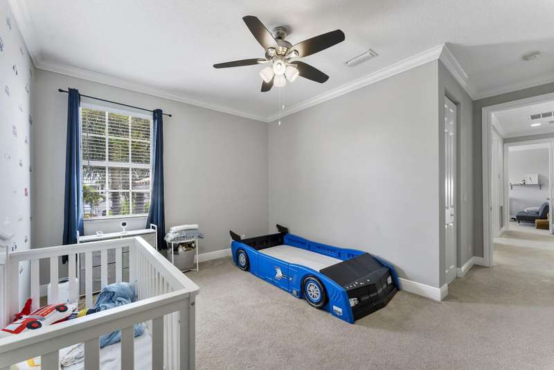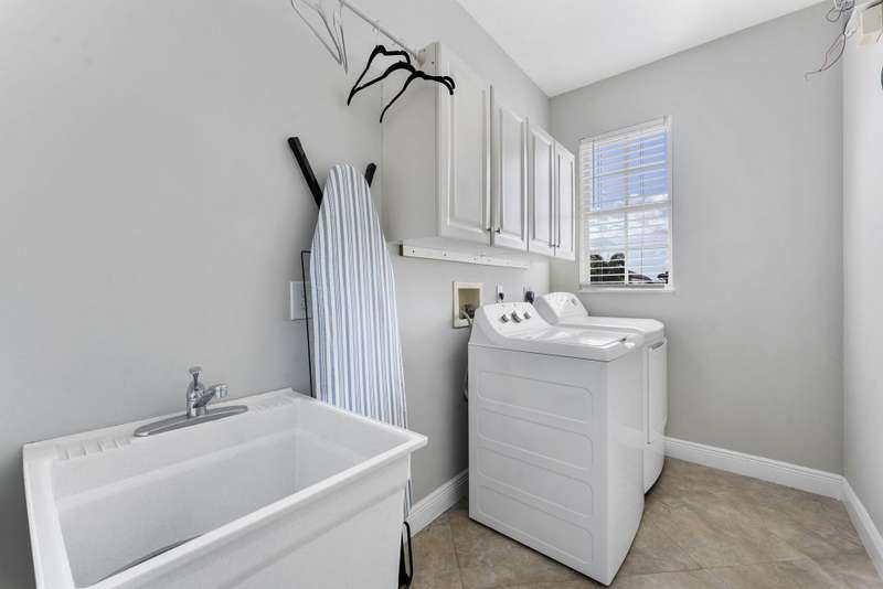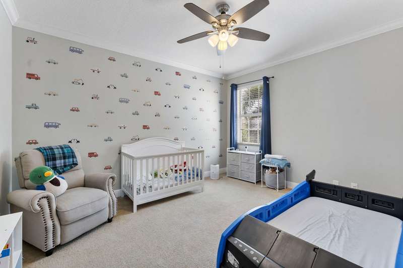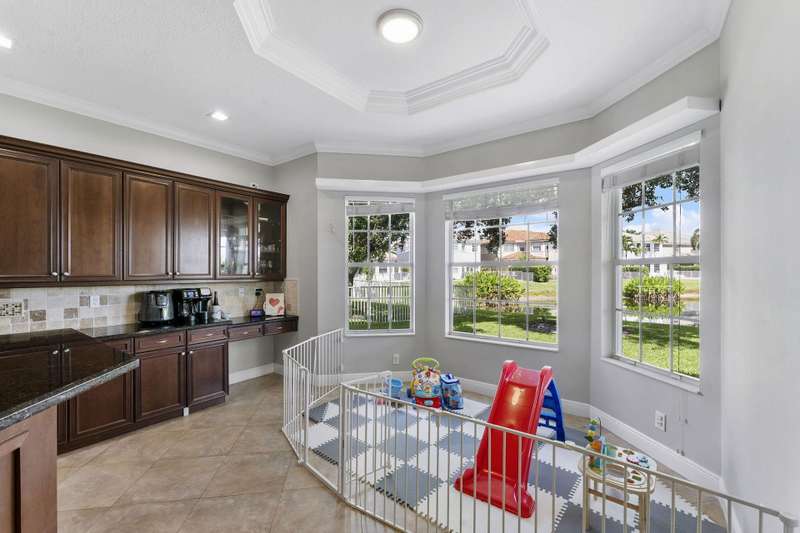 Welcome to this beautiful home featuring breathtaking lake views in a quiet, gated neighborhood. This exceptional property includes a 3-car garage and offers 2 bedrooms and 2 full bathrooms on the first floor, making it perfect for guests or multigenerational living. Step through the French doors to a covered lanai that presents stunning lake vistas, ideal for outdoor entertaining.The chefs kitchen, equipped with premium finishes and a spacious breakfast bar, is designed for gatherings of any size. Upstairs, the opulent master suite boasts a sitting area, versatile bedroom space for a home office or nursery, and two expansive walk-in closets. The updated master bath features a luxurious shower, a separate soaking tub, and dual sinks.Additional highlights include two large bedrooms,
