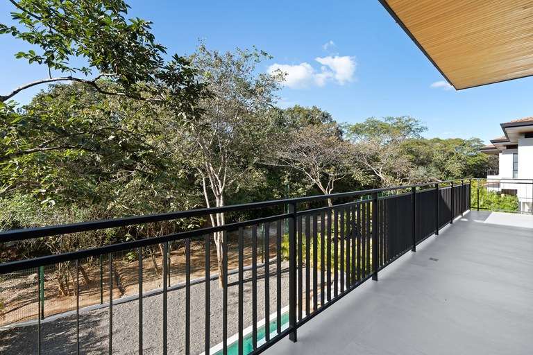 Upstairs, two luxurious principal suites open to private terraces with sweeping east- and west-facing views, perfect for enjoying Costa Rica's vivid sunrises and sunsets. The largest balcony overlooks the front gardens and includes built-in planter boxes for added privacy and greenery. A cozy second-floor TV room ties the upper-level bedrooms together, creating the perfect space for family downtime.