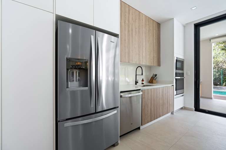 Every room in the villa is equipped with energy-efficient mini-split air conditioning units and has been designed to maintain a fresh, modern aesthetic. Hidden blackout blinds, built-in wardrobes, and soft ambient lighting create a clean, elevated atmosphere throughout the home. Fiber optic internet ensures you stay connected, making this villa a fantastic choice for digital nomads or those seeking a seamless remote work lifestyle.