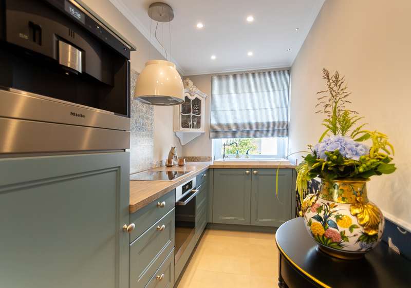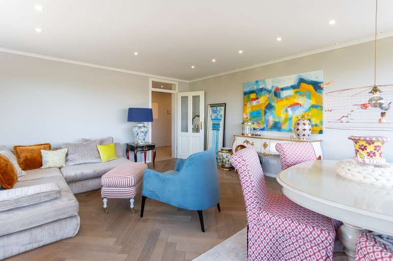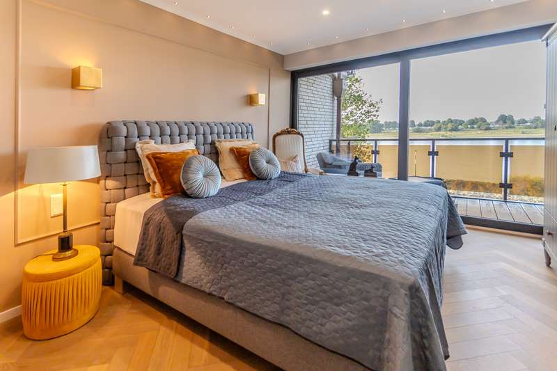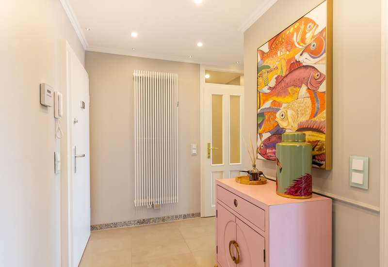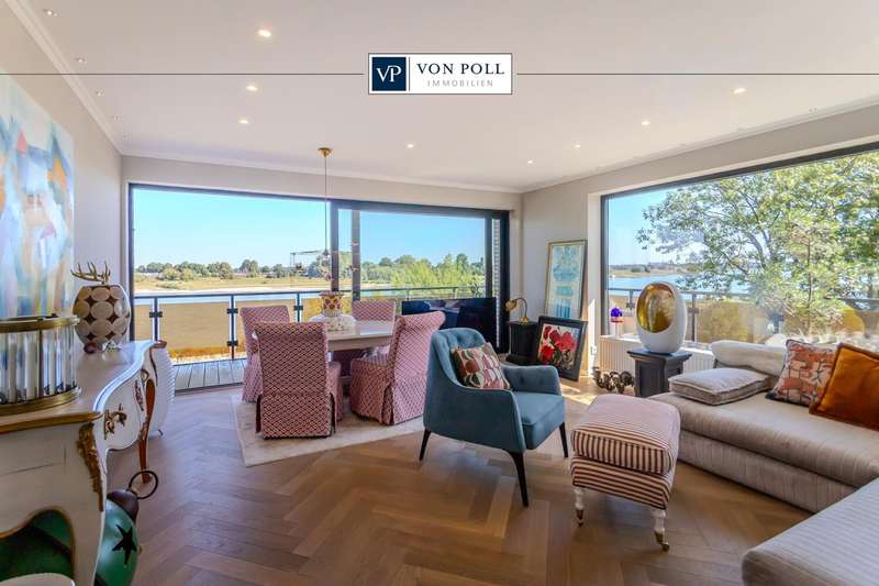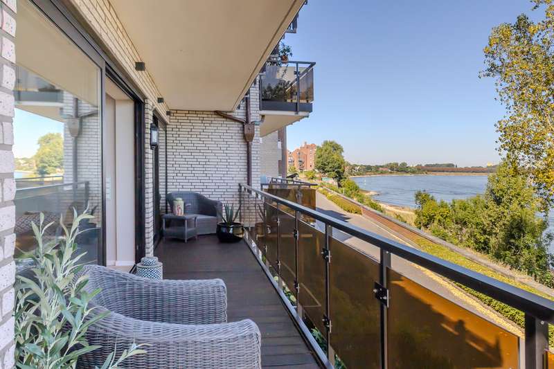 This modernized 2-room apartment impresses with its high-quality furnishings and excellent location with a direct view of the Rhine. With a living space of approx. 63 m², the property offers an ideal home for singles, couples or commuters who value upscale living comfort, quiet surroundings and a special view. The stylish living ambience catches the eye as soon as you enter the light-flooded rooms. Floor-to-ceiling windows create a pleasant brightness in all areas. The wrap-around balcony is accessible from the living room and bedroom and offers an impressive view of the Rhine and the Düsseldorf skyline - a highlight that makes for special moments at any time of day. The apartment's furnishings leave nothing to be desired: High-quality herringbone parquet flooring and smooth plastered walls insulated from the inside convey a stylish feeling of living. The elaborate lighting with a starry sky lends the living room a special atmosphere. The modern kitchen is equipped with high-quality appliances and makes cooking a pleasant experience. Elegant wooden coffered doors round off the overall picture harmoniously. A small, practical storage room is located within the apartment and provides additional storage space. The bathroom is modernly equipped and offers all the amenities for a comfortable start to the day. A pre-installed alarm system provides additional security. There are residents' parking spaces in front of the building. An elevator takes you comfortably to the right floor. There is a communal room with table tennis and a laundry room in the basement. The apartment also has a separate cellar room, which offers additional storage space. The building's heating system was renewed in 2025. This apartment combines comfortable living with high-quality furnishings and a location that pleasantly combines everyday life and leisure. See for yourself during an on-site viewing - we look forward to hearing from you and will be happy to answer any questions or arrange an appointment.