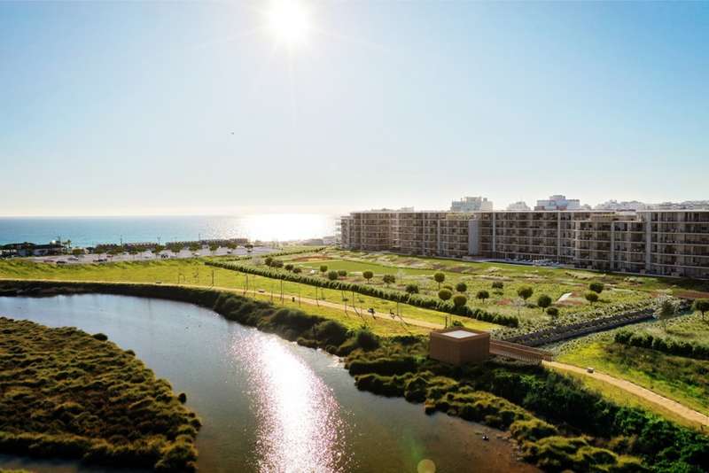 On the seafront, next to the beach and Lagoa dos Salgados, in Armação de Pera, in the Algarve, we find this modern three-bedroom apartment. The apartment is part of a new and exclusive development called Bayline. The apartment was designed to combine comfort and functionality with luxury, high quality construction and attention to detail. This fantastic apartment consists of three large bedrooms with a big built-in closet. Two bedrooms have en-suite bathrooms, and one bedroom and one suite have access to a fantastic balcony. The fully equipped and functional kitchen is directly connected to the open-plan living area, with access to the great terrace, with space for relaxation, leisure and socializing, always framed by the beautiful view of the beach and the village. The development offers residents exclusive use of a large outdoor swimming pool, a spa with a heated indoor pool, sauna, Turkish bath and gym. Residents can also take advantage of the concierge service and private parking with a charging station for electric vehicles, as well as 2 hectares of lush garden. CHARACTERISTICS:Area: 307 m2 | 3 304 sq ft Useful area: 103 m2 | 1 109 sq ft Bedrooms: 3 Bathrooms: 4 Garage: 2 Energy efficiency: B FEATURES: 3 bedrooms Equipped kitchen Balcony Terrace Outdoor swimming pool Heated indoor pool Garden Private parking