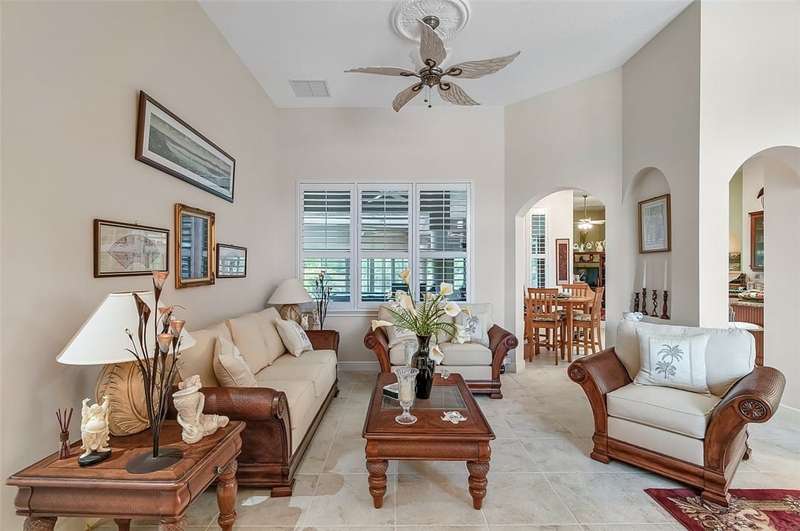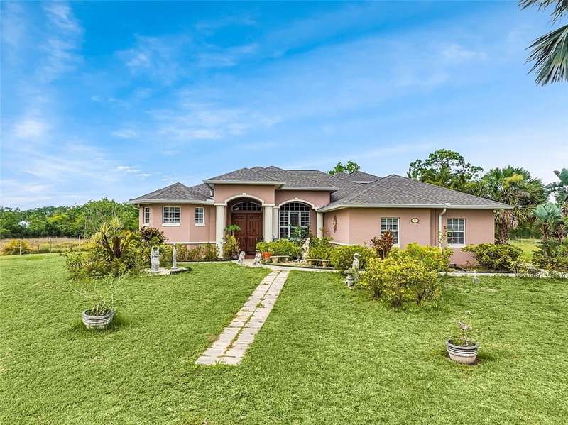 Spacious 3-bed, 3.5-bath CBS home in peaceful Fellsmere! This fully-fenced 2,850 sqft property, situated on 4.04 acres, features a 3-car garage, open living spaces, and ample room to roam. Inside features tile and carpet throughout, high ceilings, plantation shutters, and an upstairs living area and balcony. Relax out on the oversized enclosed back patio. Zoned A-1, plus a small barn - bring your farm animals! Enjoy privacy, comfort, and spaceperfect for entertaining or relaxing in nature. Room sizes are approximate and subject to error.
