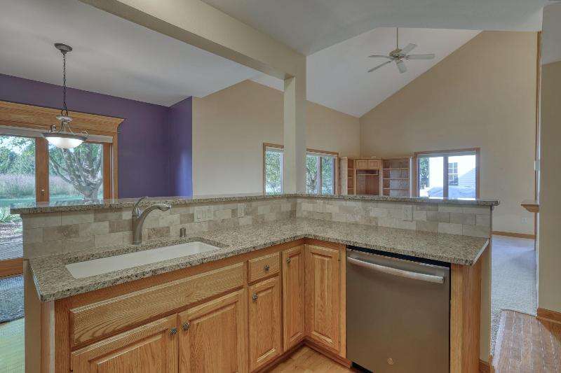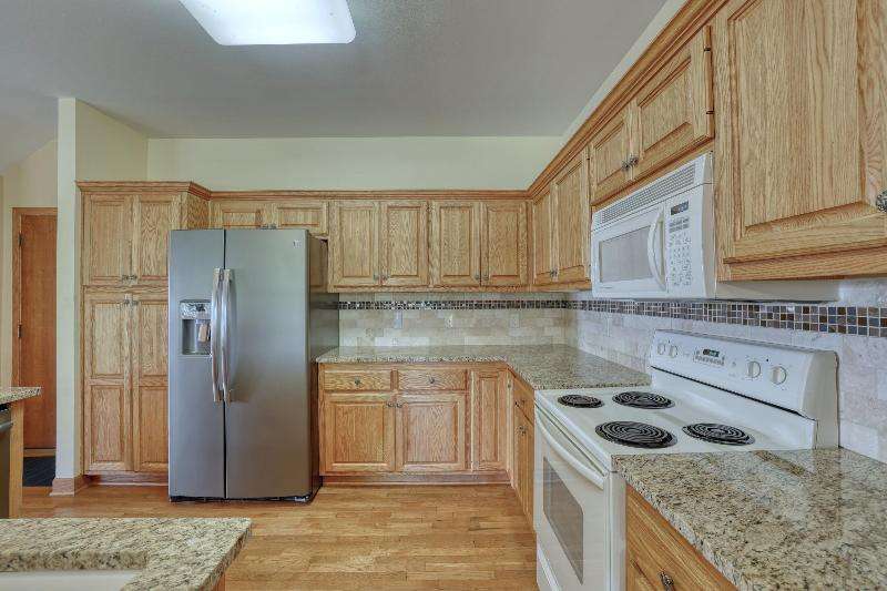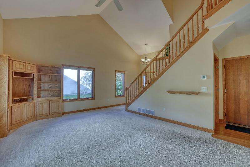 A condo that lives like a single family home. No monthly dues. Original owner loves the neighborhood! You are greeted by a dramatic two story great room with lots of natural light. An open main level floor plan. A nice working kitchen with granite tops, a raised snack bar and nice HWF's. The dining room offers extra entertaining space and has patio doors that lead out to a large deck overlooking a beautiful backyard w/spectacular sunsets. The upper level features 3 bedrooms and 2 full baths. The LL has more great space. A rec room with a fun castle fort, a den, a half bath and laundry room. The attached 2 car garage offers more storage. This home backs up to a great subdivision park which makes a beautiful setting. Convenient location. Don't miss this great opportunity.