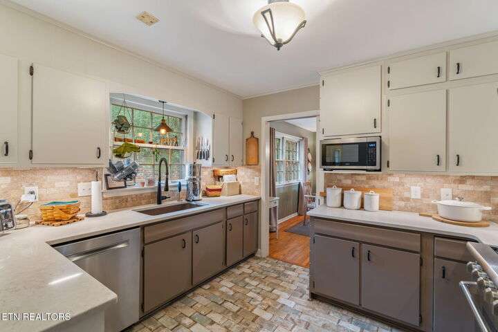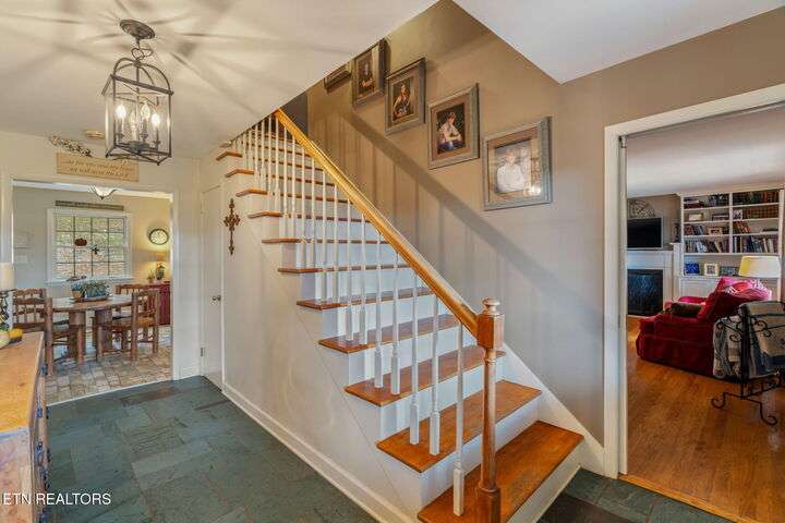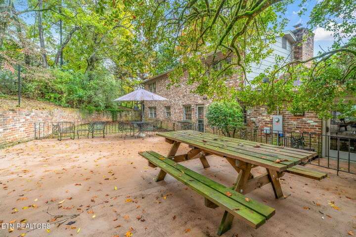 Bring your Buyers! Experience covered-front porch sitting at its best in the Historic, Holston Hills Golf Course community offering year-round views of the Great Smoky Mountains. Nestled on a spacious 0.75-acre lot, this home is just steps away from the private Holston Hills Country Club, only a short drive to vibrant Downtown Knoxville and Exit 407 — the Gateway to the Smoky Mountains. This 5-bedroom, 4-bath residence has been thoughtfully updated throughout featuring built-ins, renovated kitchen/bathrooms, quartz countertops in kitchen, stainless steel appliances and a combination of hardwood/tile/slate flooring. Enjoy an oversized family room with wet bar-perfect for entertaining, as well as 2 wood burning fireplaces and main-level office + laundry rooms for convenience. Step outside to a welcoming rear patio ideal for gatherings with a fenced area for children/pets, a fire pit, attached storage shed and ample storage in both the basement + attic.