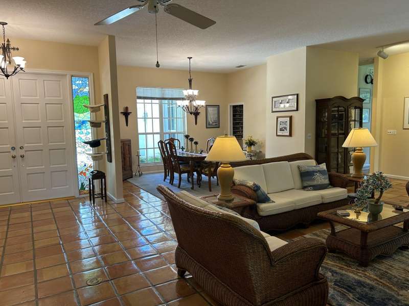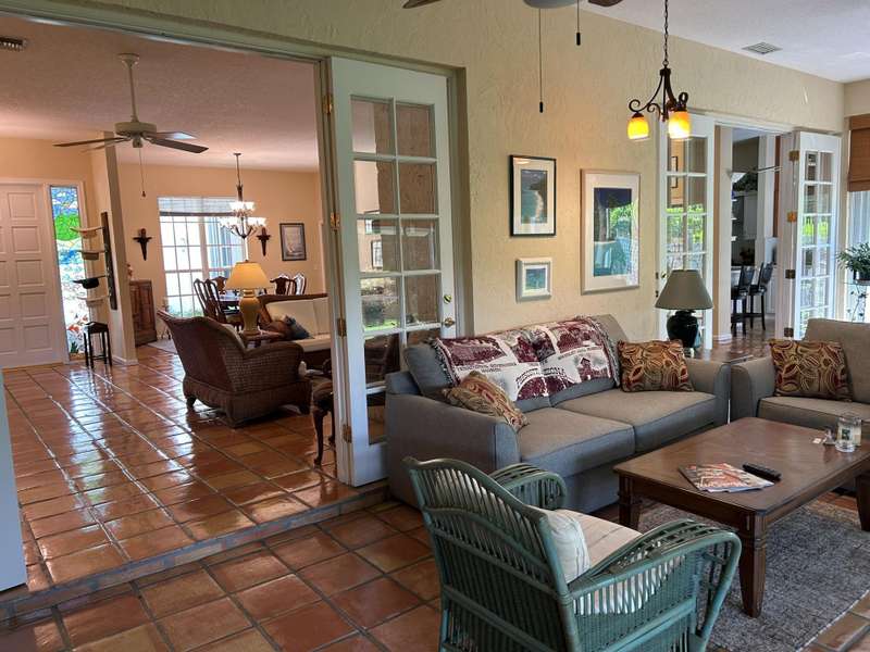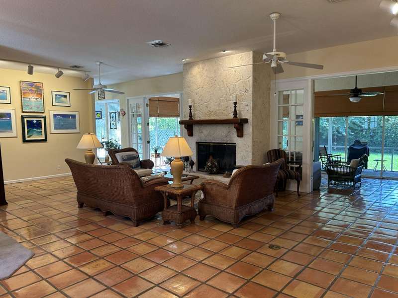 Welcome to this stunning custom built CBS home, nestled in a small, gated community of just 39 all custom residences. The coquina stone fireplace is a true centerpiece that adds warmth and character to the living area. French doors lead to the under air sunroom - perfect for relaxing and enjoying the quiet solitude of the tropical backyard. This home is also less than 3 miles to beaches, stores and restaurants. Over a 1/4 acre corner lot that has plenty of room for a pool if desired. New well was just installed for the automatic sprinkler system. Full house Generac generator. Gas stove in the chefs kitchen with a large pantry for all of your entertaining. Plenty of storage throughout house and a 3rd garage for a car, motorcycle, small boat or golf cart.