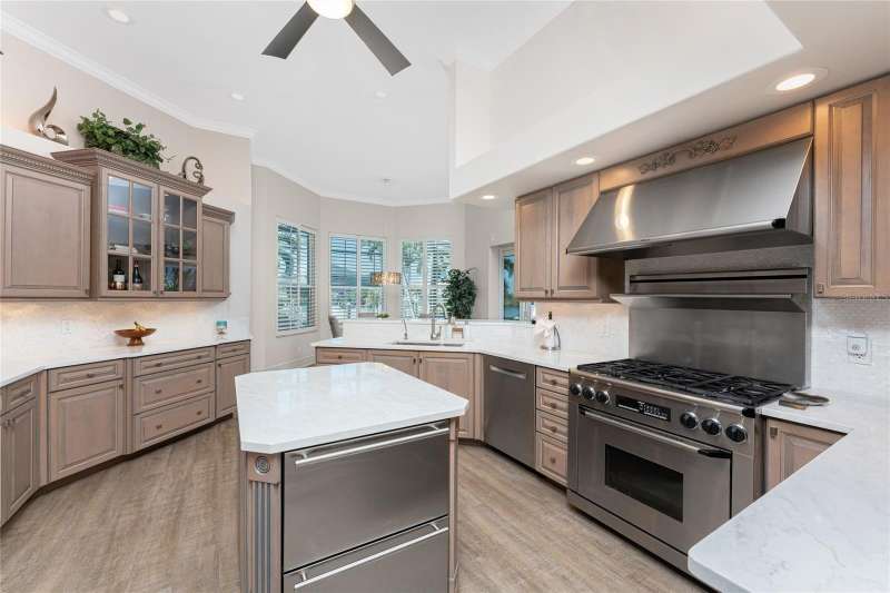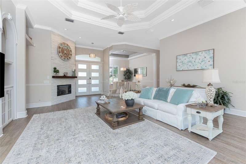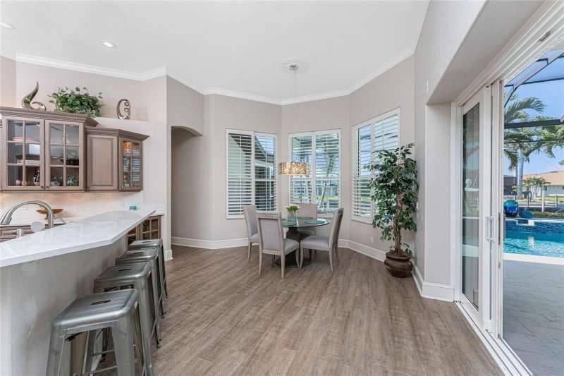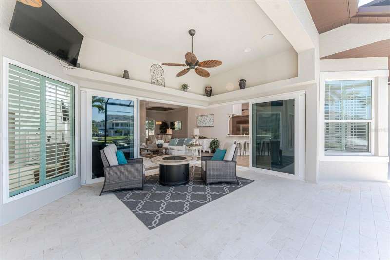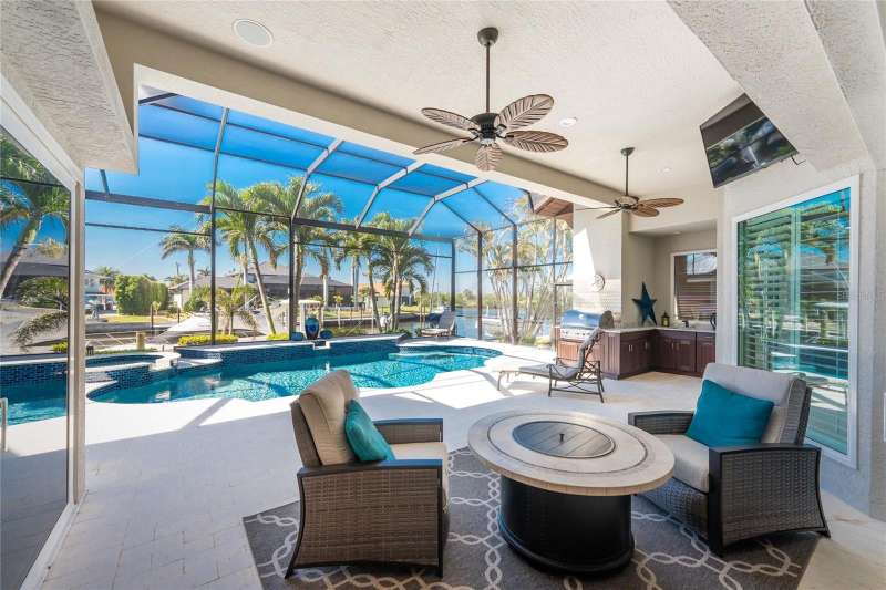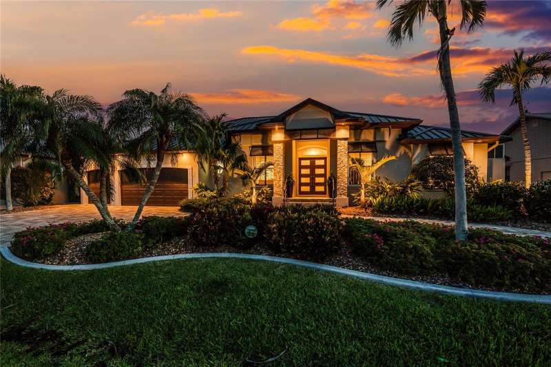 You will absolutely LOVE this spectacular canal front 4-5 BR home on an oversized 100 x 120 ft lot in charming Punta Gorda Isles! As you approach this stunning home on it’s circular paver driveway, you will be impressed by the smart, up to date look with stack stone columns, modern double entry doors and Bahama style shade awnings. Behind the 2 garage doors, one doubled one single, is a roomy, epoxy floored, mini split cooled, garage, room for 4 cars on the floor and adequate height for a car lift, ideal for the car enthusiast. There is also a separate 60+ SF storage room with central air.As you enter your stunning new home through the keyless entry, double front doors the view will take your breath away. The great room with double tray ceiling, with romantic mood lighting, and built in shelving with hidden speakers is SO inviting with its mantle topped gas fireplace on a stack stone wall, But that’s not all! The lofty 12’ ceilings and 21 ft of “disappearing” hurricane rated sliders configured in a “zero corner” fashion that lead to the lanai and pool make your indoor and outdoor entertaining flow uninterrupted. The outdoor living is at it’s best with the 32’ x 15’ covered area, travertine pool deck, fully equipped outdoor kitchen, attractively shaped and lit 30’ x 15’ sparkling pool with a water feature and attached spa with spillover. The whole outdoor 46’ x 25’ area with panoramic, no see um screen is huge. A natural spray system also keeps bugs away. Look further to the 100’ of canal waterfront seawall and 85’ of dock. You have room for a really big boat at the dock, PLUS a 18,000 lb lift for a sizable day boat, PLUS a jet ski lift! You have room for it ALL! It’s only 8-10 (no wake) minutes to get out to the Ponce de Leon inlet and to the open sparkling water of Charlotte Harbor, then onward to the Intracoastal waterway and Boca Grande Pass then out to the Gulf for some spectacular deep sea fishing. After your day out on the Gulf and back in your new home, take a nap in your 18’ x 16’ owner’s suite with it’s plantation shuttered, hurricane slider access to the pool. There is a room near the entrance of the BR that the present owner has made into a humongous “closet” that would also be suitable as an office or smaller BR. There’s even HW floors and a smaller closet within this ”closet”!On the other side of the house is a well thought out wing with a guest bath with a Roman shower and 2 more bedrooms, one having slider access to the pool, the other with access to a private outdoor, under roof courtyard in addition to a large office, totally outfitted with built ins and en suite bathroom. The office also has access to the courtyard with it’s outside entrance, so guests coming to the office do not need to come through the house. There's an auto on whole house generator & buried 500 gal. propane tank. "Punta Gorgeous" is loaded with charm,lots of great restaurants,a historic district and tons of waterfront parks. With walking and biking trails, a dog park, the popular Fishermans Village (shops with even more restaurants),Isles Yacht Club, and St. Andrew’s South Golf Club. There's a Farmer’s Market on Saturdays and a smaller one at the History Park and Artisan Village (next to the new library)on Sundays. Play Pickleball at the“Pickleplex”. If you are bored here, it's by choice. If you have found our delightful town of “Punta Gorgeous” then you are very, very lucky indeed! Now you just need this stunning home to make it your own paradise!