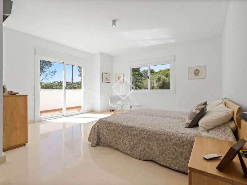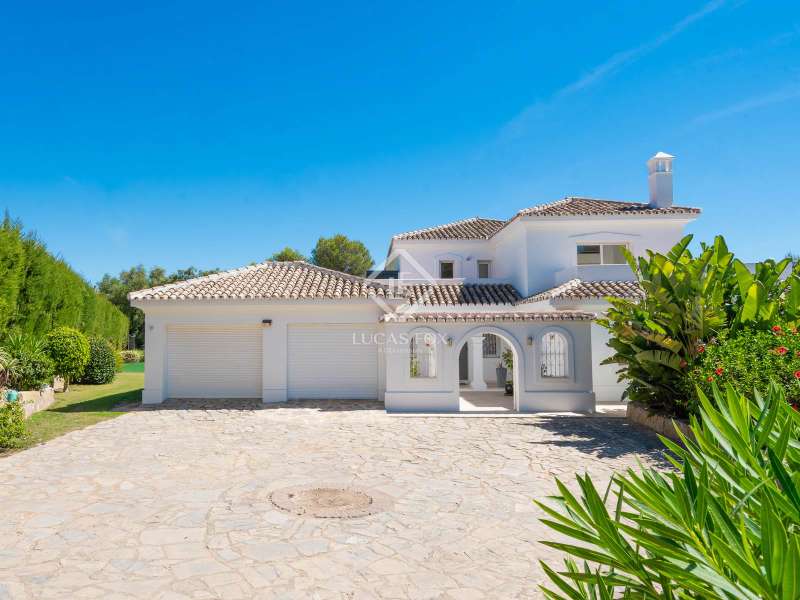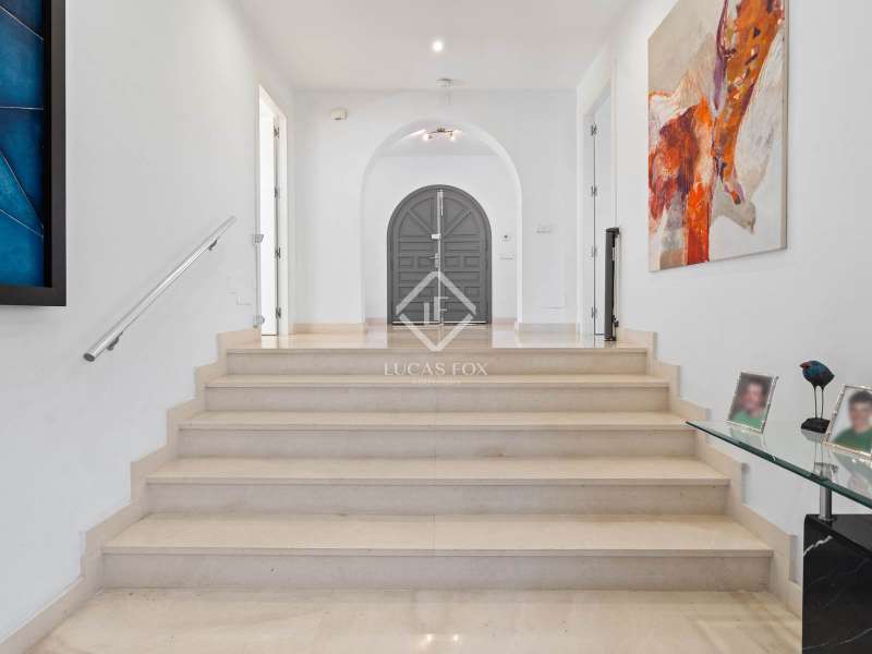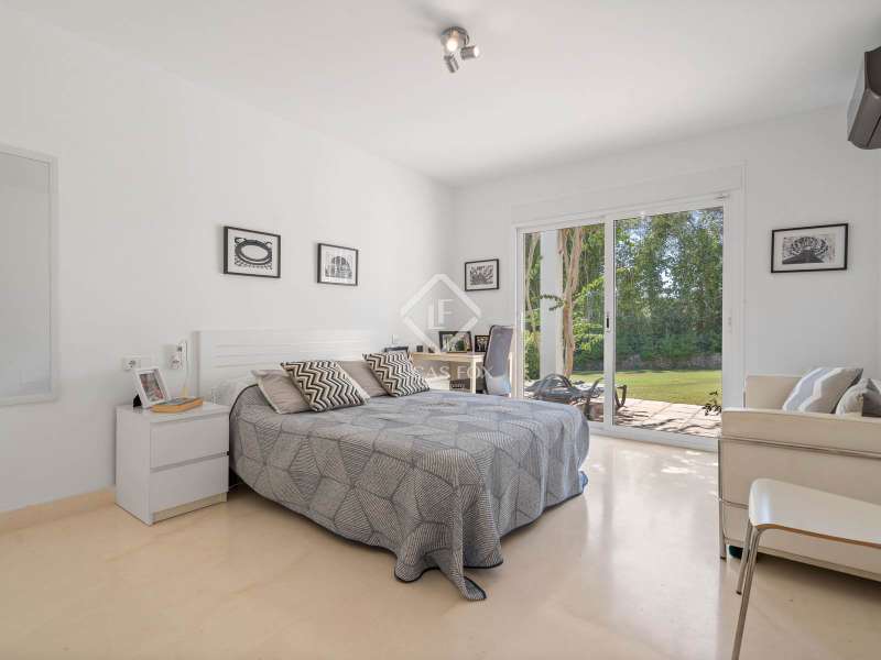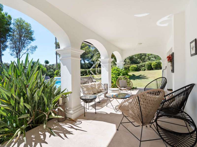The villa combines a traditional Andalusian exterior with a modern and elegant interior, completely renovated by its current owners. On the main floor, there is a cosy entrance hall leading to a modern, fully equipped open-plan kitchen with direct access to the covered porch. This porch has two distinct areas: an outdoor dining area with barbecue and a chill-out area ideal for relaxing, both with views of the pool and golf course. On this same floor is the spacious and bright living room with access to the garden, as well as a guest bathroom and a fully equipped laundry area. The sleeping area is located on the upper floor. The master suite stands out for its spaciousness, open-plan en-suite bathroom, electric blinds and access to two private terraces with unique views of the 14th hole at Valderrama. On this level there are also two additional bedrooms that share a fully equipped bathroom and a terrace with the same spectacular views. On the ground floor, a few steps down from the entrance, is the garden suite, with a private en-suite bathroom and large windows that connect directly to the outside.