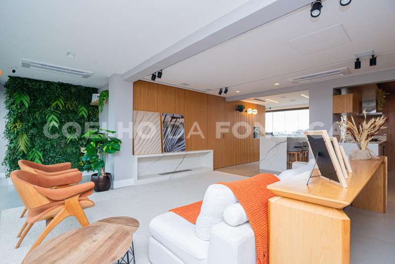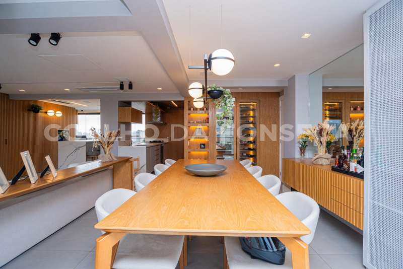 Apartamento com belos acabamentos, situado em andar alto, com vista livre em suas duas faces (sol da manhã e pôr-do-sol). O living, amplo e integrado, possui adega climatizada para 150 garrafas, lareira ecológica e projetor, criando um ambiente ideal para descontração com a família e amigos. A área gourmet, integrada ao living, conta com churrasqueira, champanheira embutida e cozinha americana, ambas revestidas em belíssimo mármore calacata, harmonizando o ambiente e trazendo claridade à área social. Na área íntima, três suítes, sendo a master com amplo closet e singular projeto de iluminação. Ar condicionado em todos os ambientes e automação completam o pacote. O condomínio, novo, oferece ótimas opções de lazer: children care, churrasqueira, piscina adulto e infantil, academia, salão de festas e salão de jogos. O apartamento ainda conta com duas vagas de garagem e amplo depósito. Marque sua visita!