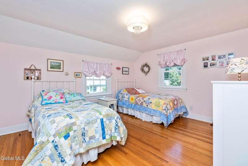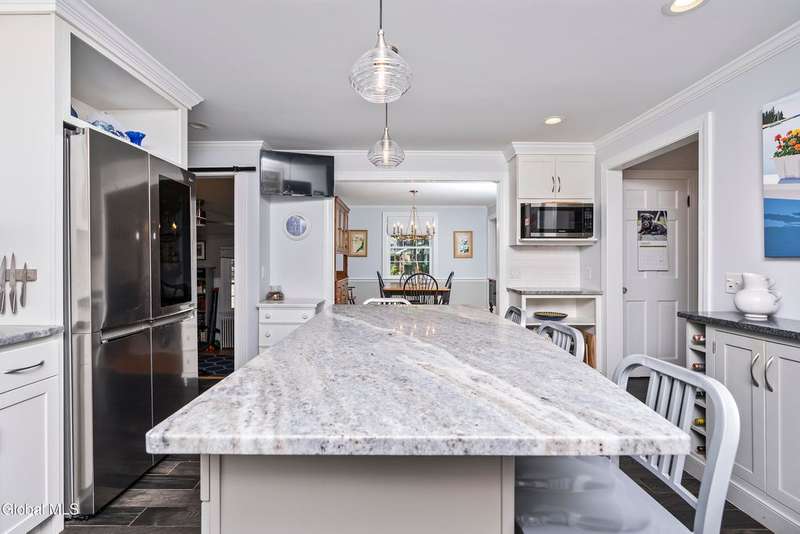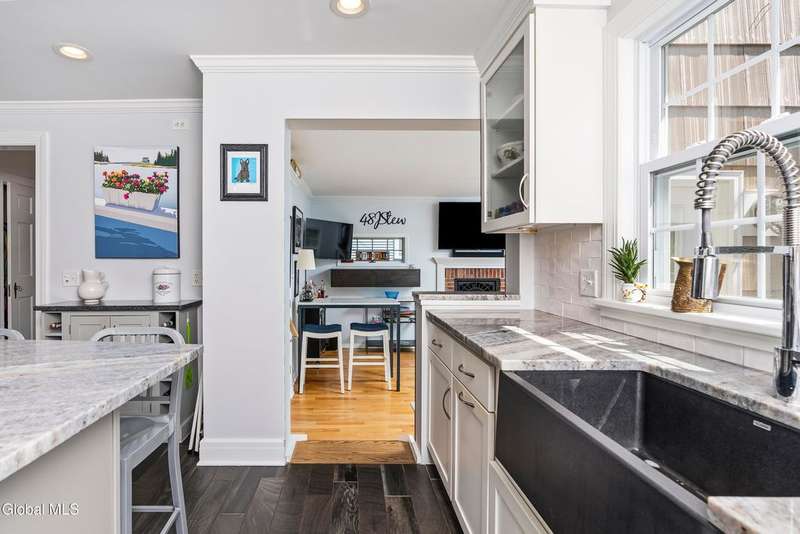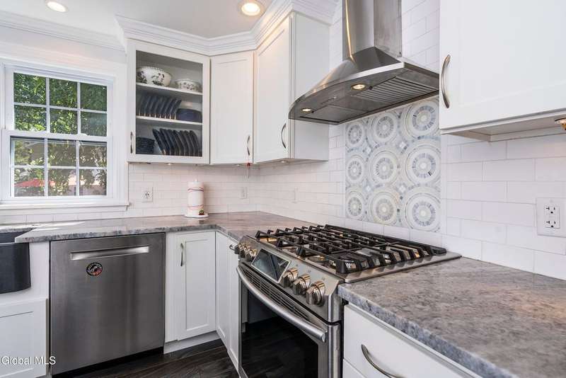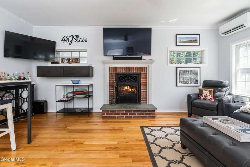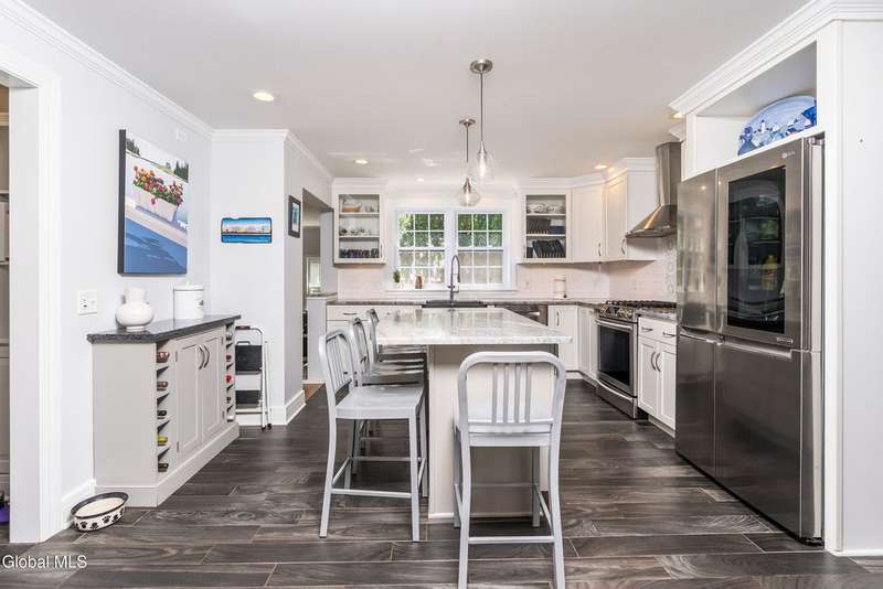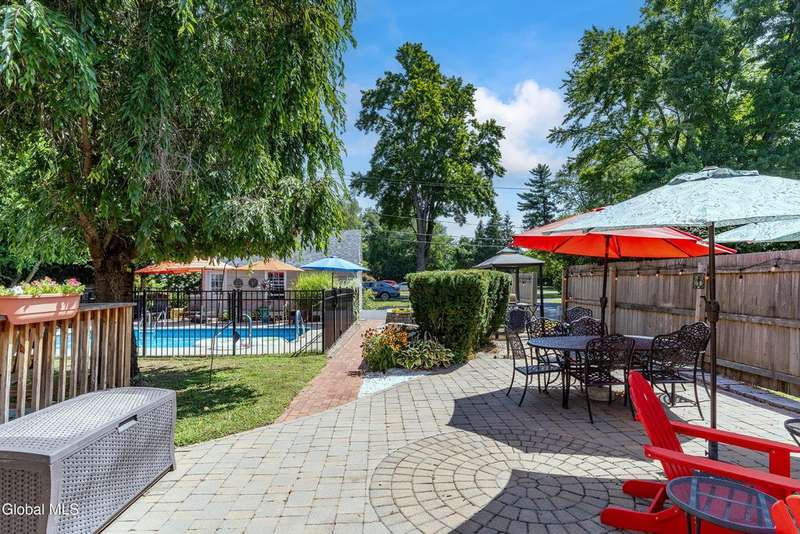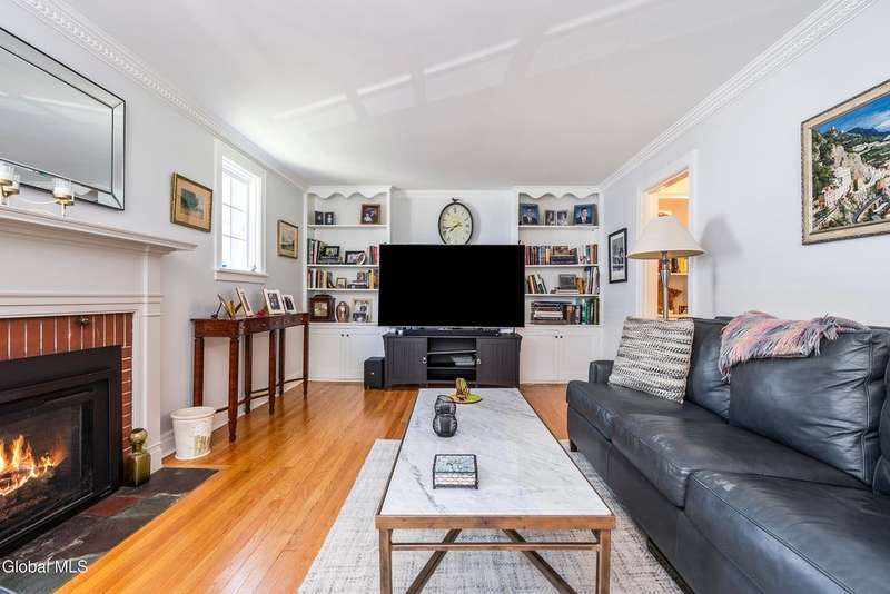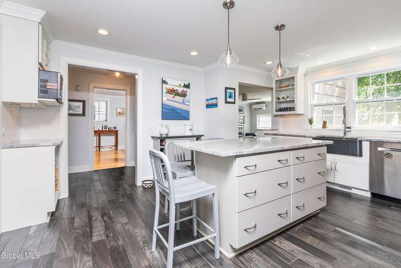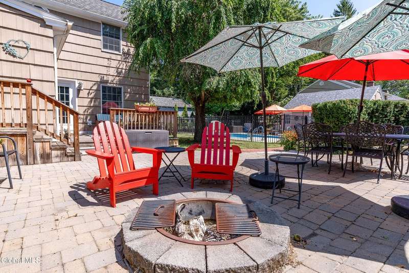 Welcome to this one of a kind Charming ''Olde Delmar'' Colonial! Delmar Place boasts a gorgeous remodeled custom kitchen with honed granite counters, stainless appliances, a large island & plenty of counter and storage space. There is a spacious family room with wood burning fireplace, living room with gas fireplace and a 1st floor office! For convenience, there is also an updated 1st floor full bath/laundry/mudroom. Plus, its Primary Suite features a private full bathroom with heated floors! Updates include ductless central air 2023, Furnace 2015 which was just serviced in May, 2025, Roof 2010 and 2020 over the addition. Also, the basement has a finished rec room. Enjoy the expansive flat landscaped corner lot with its lovely in ground pool, deck, paver patio with fire pit and 2 car detached garage. Truly a special home in the most desirable location, just around the corner from Delmar's 4 Corner's Town Center with its shops & restaurants!