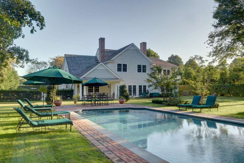 New construction. One block to Gin Lane. Offering 5 bedrooms and 5.5 baths, first and second floor master bedrooms, beautiful living room with open floor plan, gourmet kitchen with center island, wet-bar, flat panel TVs, hardwood floors, high ceilings, reclaimed hand hewn beams, stylishly-decorated and ready for your enjoyment. Very private property with a heated gunite pool. Listing ID: 735483