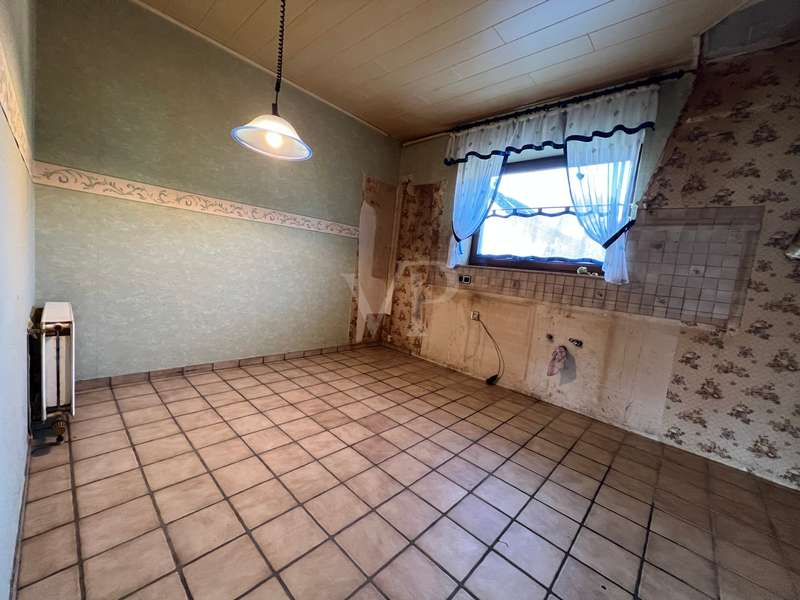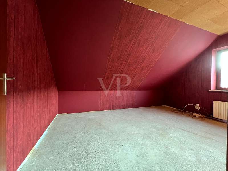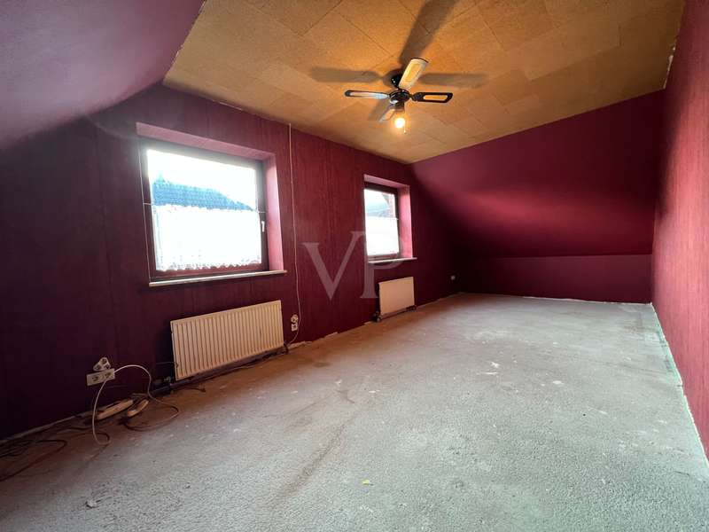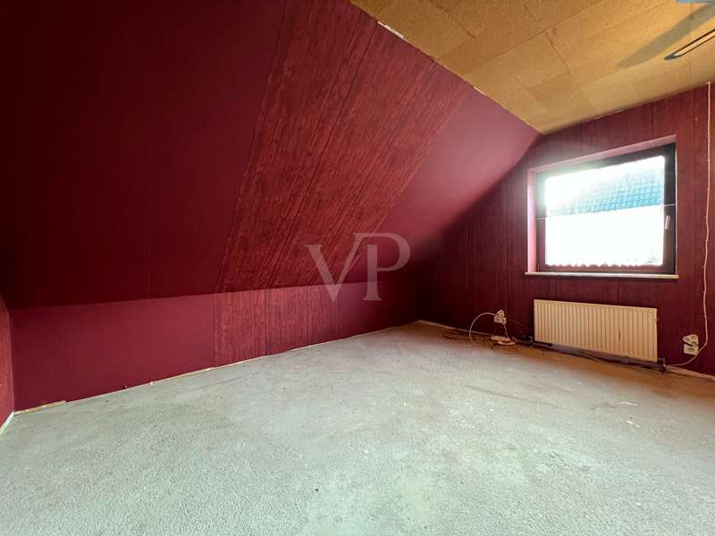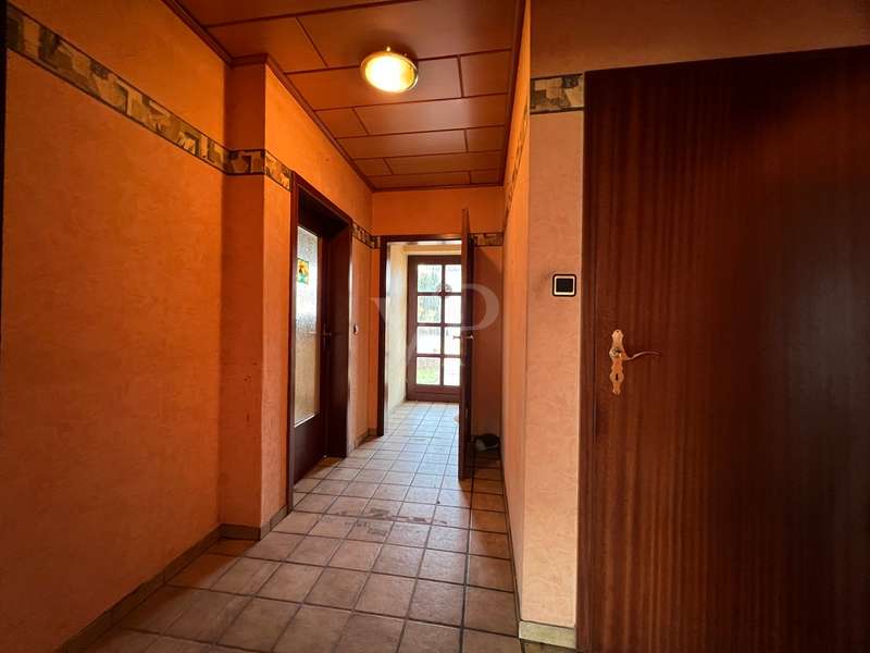 For sale is a detached house with a living space of approx. 130.8 m² on a generous plot of approx. 899 m². The property offers six rooms, including five bedrooms and two bathrooms, which meet the needs of a larger family. The property was built in 1984 and is in need of renovation. No modernization work has been carried out since it was built, so the buyer has the opportunity to renovate and design the property according to their own ideas. The house has central heating and is simply furnished. The double-skin clinker brick façade is thermally insulated and ensures a pleasant indoor climate. Particularly noteworthy is the spacious living area of approx. 29.2 m², which flows seamlessly into the adjoining kitchen of approx. 10.22 m². There is direct access to the balcony from the living room, which is also accessible from the bedroom and offers a beautiful view of the garden and into the distance. Although the property is officially approved as a two-family house, it was previously used as a spacious detached house. An already approved granny apartment opens up additional possibilities for use. There are two rooms in the basement that can be converted into living space and thus create additional living space. It is also possible to install a third bathroom in the basement, as the connections are already in place. The bathrooms on the first floor and in the attic are functionally equipped. The bathroom on the first floor is equipped with a shower tray, shower, WC and washbasin, while the bathroom on the top floor has a shower, WC, washbasin and urinal. The garden provides an additional area for individual design and offers sufficient space for relaxation and outdoor activities. The prefabricated garage and the parking space in front of the building offer sufficient parking space for several vehicles. All ceilings on the ground floor and top floor are clad in wood, which creates a cozy atmosphere. The windows are made of fine mahogany wood and insulated glazing. The interior doors are also finished with mahogany-like precious wood veneer and emphasize the original character of the house. This property offers potential buyers the opportunity to design a project according to their own ideas. Arrange a viewing appointment and see the benefits of this property for yourself. Please also understand that we would like to receive the property-related financing confirmation from your bank before a possible viewing. We expressly point out that the owner does not wish to receive any personal inquiries and therefore we ask you to accept this privacy.