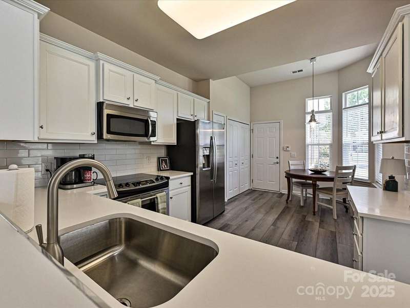 Sparkling and gently lived in home w loads of recent updates and upgrades! New water heater,2024 updates include kitchen quartz counters and tile backsplash, painted white cabinets, carpet in secondary BRs, interior paint and primary BR shower w subway tile and frameless doors! Extended patio w powered shade awning, irrigation system, 2 car garage, immaculate condition and ready to move in!