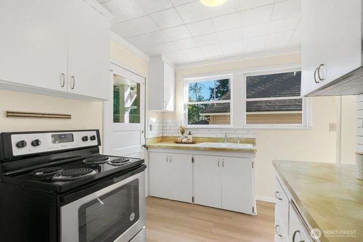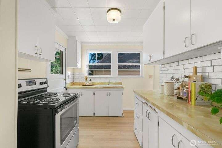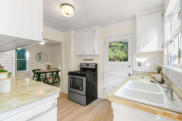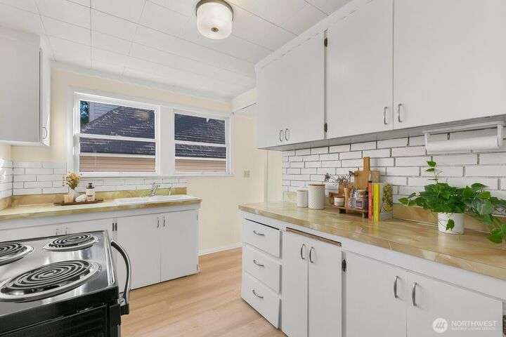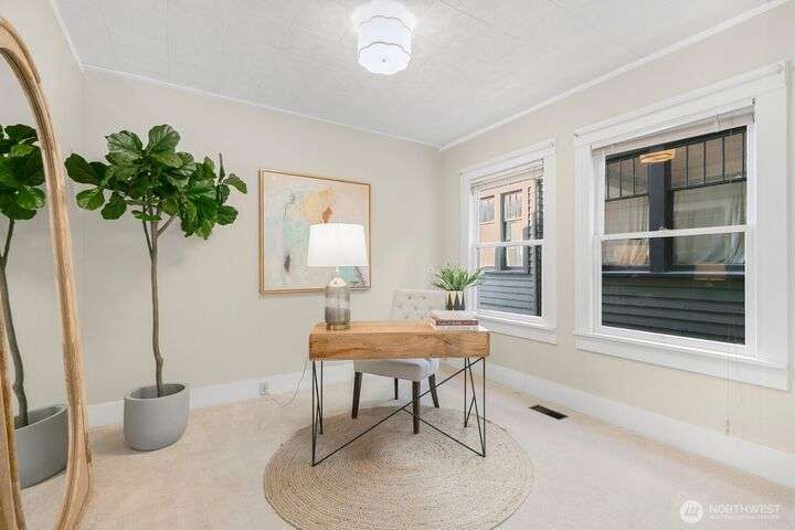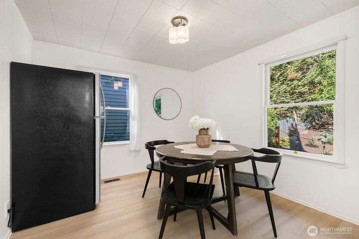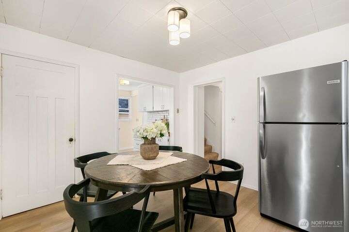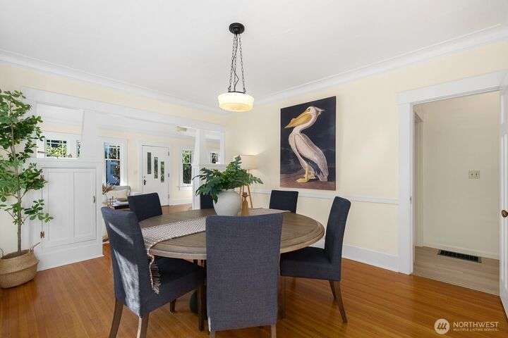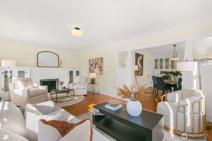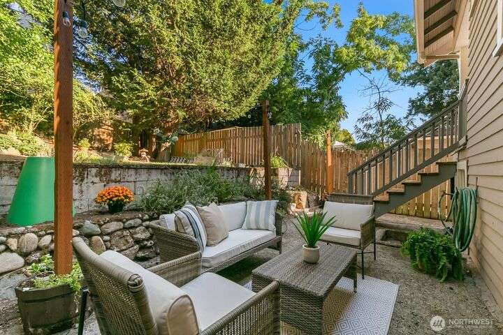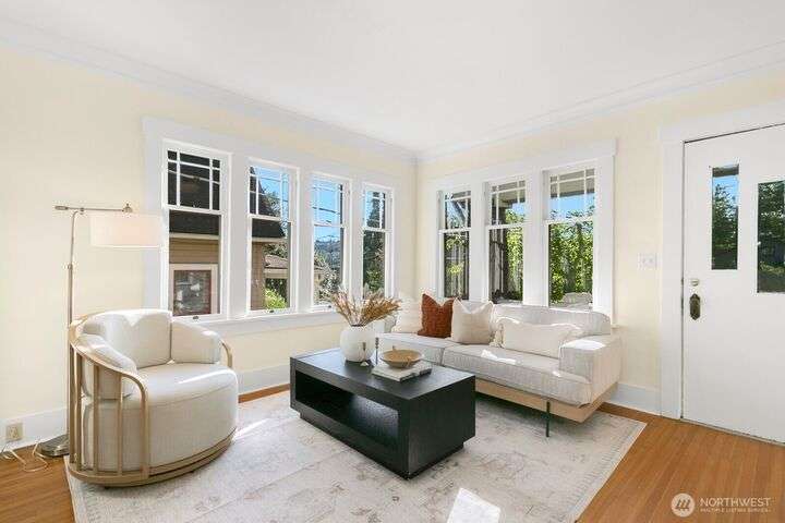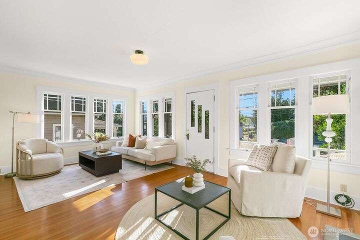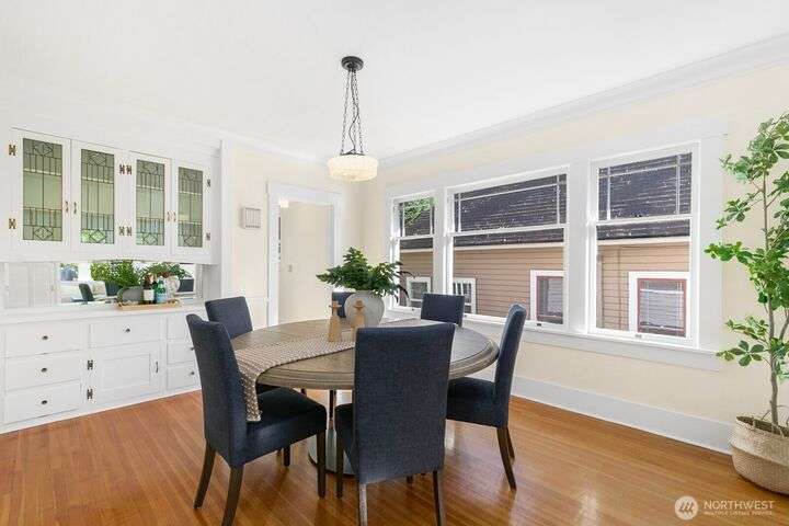This 1914 Craftsman charmer, with original built-ins and modern updates, is ideally located on a quiet street & an easy walk to Gasworks Park, the Burke Gilman Trail, and Fremont. The inviting front porch welcomes you inside, where you’ll be wowed by the hardwood floors and lovely built-ins. Windows flood the south-facing living room, dining room and kitchen with light. 3 bedrooms upstairs and 1 on main floor with newly-renovated bathrooms on all 3 floors. Kitchen with pantry and large eat-in space, both of which look out on the fenced backyard and patio. Finished basement with separate entrance, potential 5th bedroom, gym, office, and bath. One off-street parking space. Take a look at a home in one of Seattle’s most exciting neighborhoods!