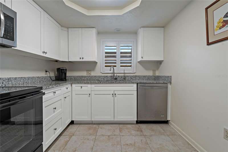 Sunset Shores sits at one of Tarpon Springs’ highest and driest elevations—about 24 feet above sea level—directly on the Gulf and protected by a private cove, with no storm damage to any units. Flood insurance is not required, and the reserves are fully funded with milestone structural integrity requirements already met. This nearly soundproof, move-in-ready home has been expertly updated throughout, featuring brand-new hurricane/impact protections, new floors, luxurious plantation shutters, ceiling fans, and granite countertops. Enjoy a quiet, spacious screened-in patio and deed-covered parking just steps from your front door. Tucked in a gated community off S. Florida Ave, you’ll be minutes from Tarpon Springs’ Sponge Docks, beaches, and parks, with an HOA that supports active, all-age living. The development comprises only 74 units, making it very pet- and rental-friendly, with a welcoming, community-focused environment.
