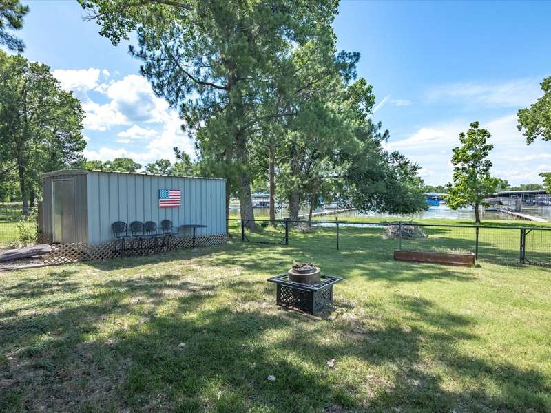 Eagle Mountainn Lake Cottage on a great subtle sloped lot overlooking West Bay Marina and fan fav West Bay Grill & Bar! (Scotty's -- IYKYK!) FUN lake getaway that includes the cutest detached guest house, plus great patio decking areas and tons of outdoor space to enjoy its pretty waterfront lot! Open design interior with 2 living areas in main house with 1 car garage, a guest house includes full kitchenette, a spacious outdoor metal storage building, and a boat dock with lift literally located right by the marina gas station!