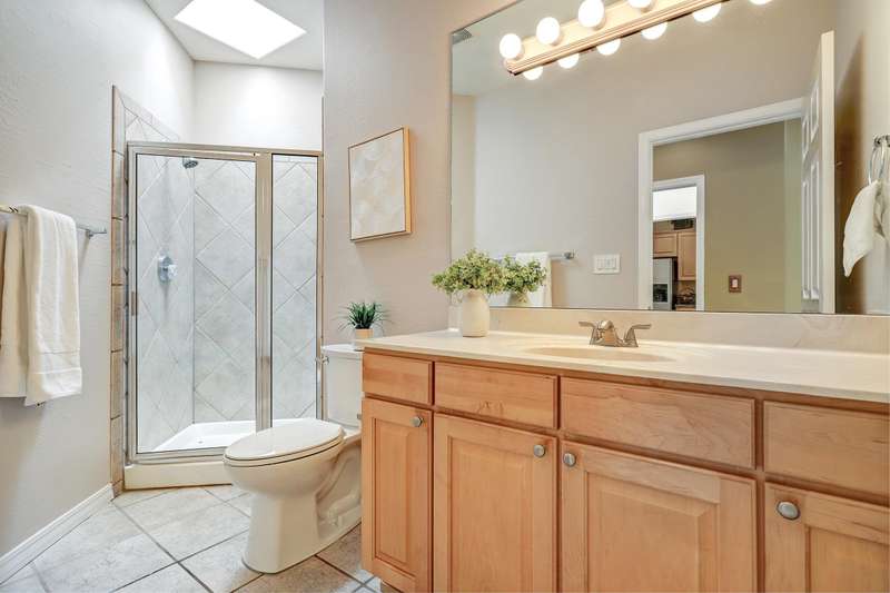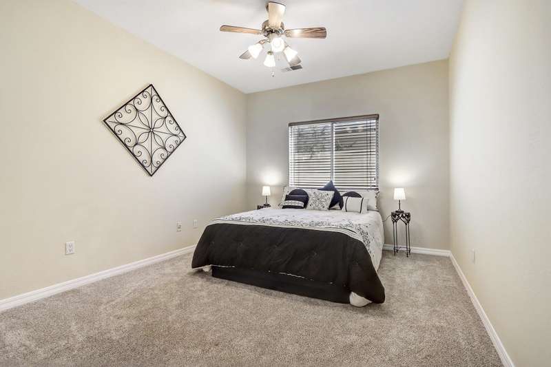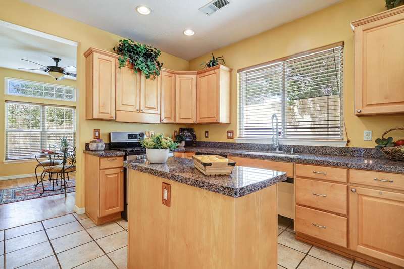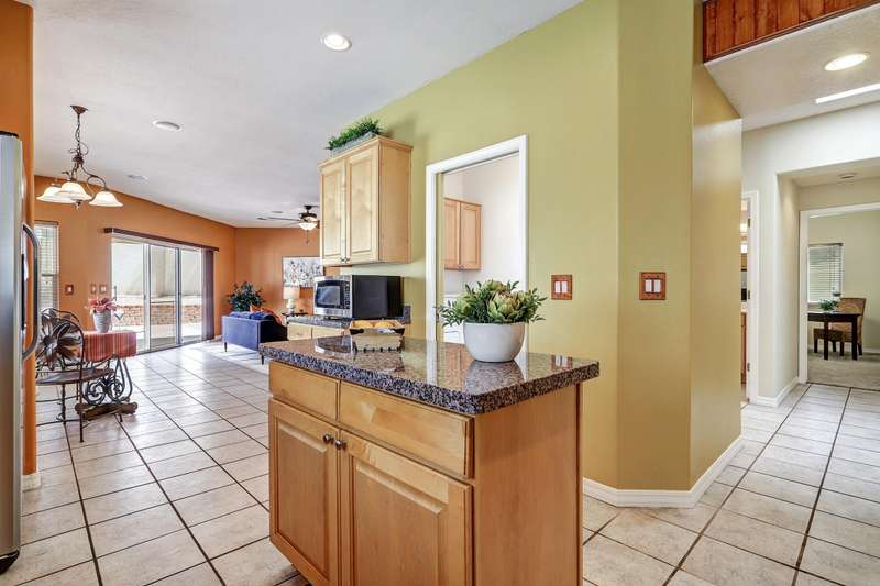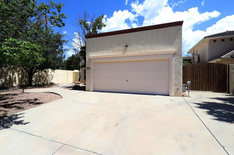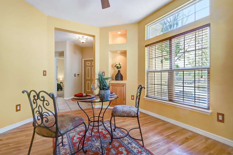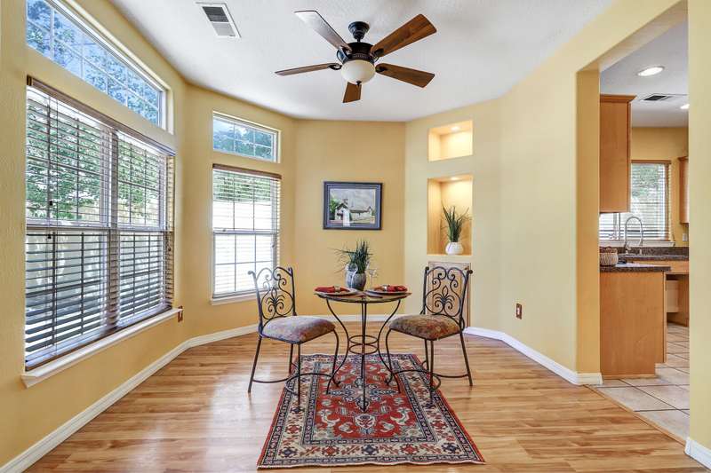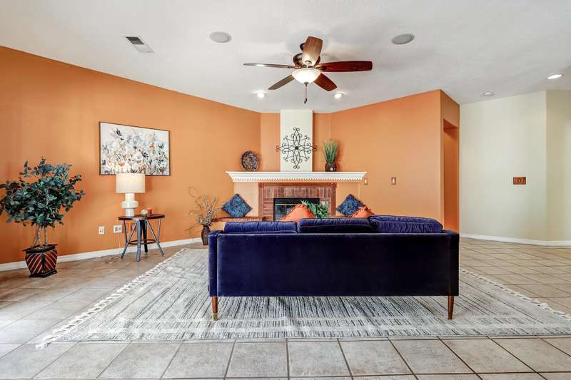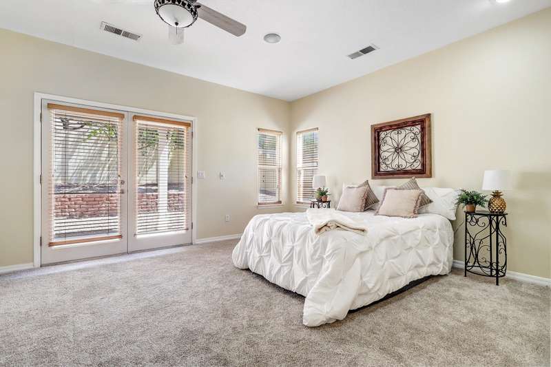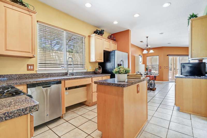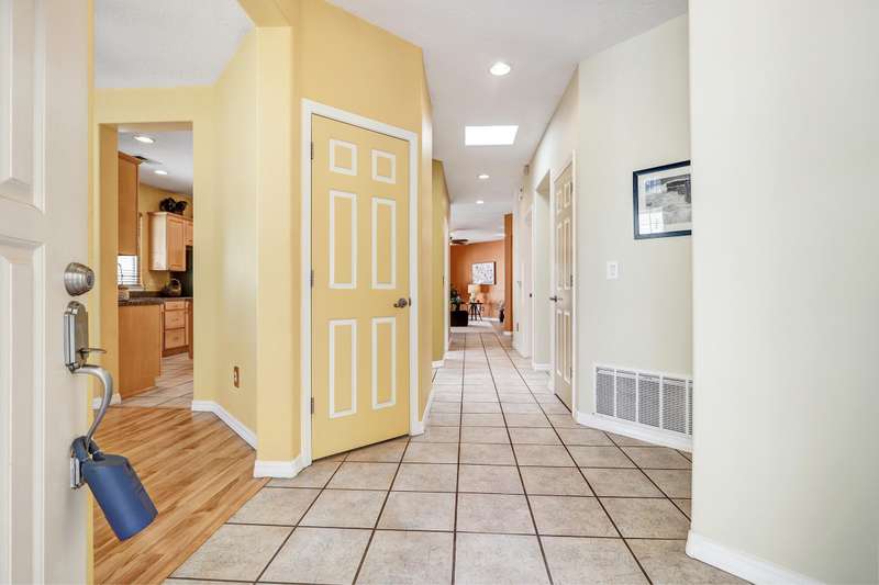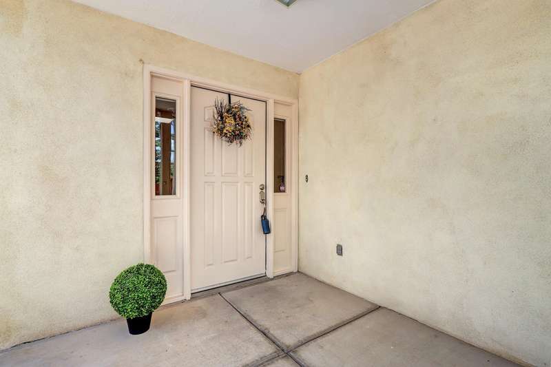 Discover this wonderful one-level Territorial-style home that blends charm, comfort, & accessibility. Thoughtfully designed with ADA compliance, it features wide hallways & large doors throughout. Inside, soaring ceilings & abundant natural light create an inviting atmosphere. A formal dining room & other eating space flows seamlessly into the great room, complete with a cozy gas-log fireplace. The large primary suite offers a luxurious bath w/ a garden tub, roll in shower, & dual sinks. 2 walk-in closets & a door to the back yard. Nice sized secondary bedroom & the 3rd bedroom would make a wonderful study w/ its built in book shelves. Out doors, enjoy the serene backyard with its beautiful waterfall feature & easy care landscape perfect for relaxation or entertaining.