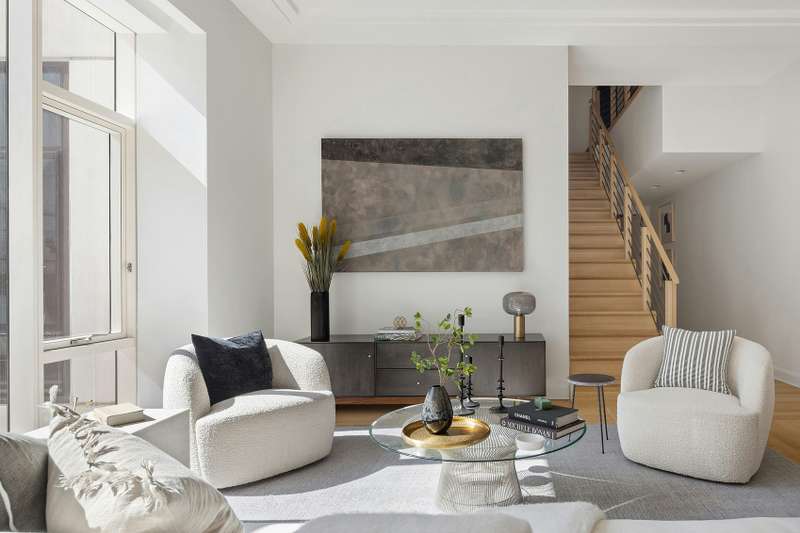 In addition to its aesthetic appeal, the emphasis on comfort resonates throughout this thoughtfully curated space. The apartment is outfitted with premium Gaggenau appliances, a laundry room featuring a vented dryer, dedicated Nest controls for each room, custom window pockets with electrical outlets, and oversized closets.