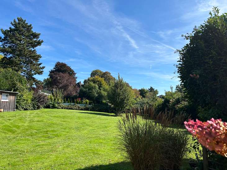 Spacious retreat with historic charm and extensive garden This prestigious detached house combines historic charm with modern living quality and is located in an absolutely green setting on a plot of approx. 1,579 m². The property was originally built in 1920 and underwent extensive refurbishment in 2013 and was doubled in size with a high-quality extension. With a generous living space of approx. 280 m² and a total of 7 rooms, this house offers versatile usage options for couples, families or home office professionals. The quality of the fixtures and fittings is high and the overall condition is as good as new. Even the entrance area on the first floor conveys an inviting sense of space thanks to the impressive entrance hall. The open kitchen is practically designed and has a separate storage room. The dining area of approx. 26 m² is generously proportioned and invites you to enjoy meals together. The adjoining living area of approx. 48 m² offers plenty of space for socializing. Generous window areas create a bright and friendly atmosphere and offer a charming view of the extensive garden. A modern bathroom with shower completes the offer on this living level. There are two bedrooms on the top floor, one of which has direct access to a bathroom with shower and bathtub as well as a dressing room. Two additional storage rooms offer further storage space. In the basement, you will find another bedroom, a bathroom with shower and bath and a separate wing with two versatile rooms. These are suitable for both living and working purposes. Both rooms have an exit to the large, secluded inner courtyard, which offers additional open space. The rooms are complemented by a boiler room and a cellar. The approx. 1,000 m² garden is invitingly designed and has a large wooden terrace and a garden shed - ideal for relaxing hours in the greenery or social gatherings. Two parking spaces are available directly on the property. The location and transport connections should be emphasized: There is no through traffic in the surrounding area, so peace and privacy are guaranteed. At the same time, you can reach local public transport, shopping facilities, schools and kindergartens in no time at all. Come and view the numerous advantages of this exceptional property, which successfully combines historical value and modern living comfort, for yourself.