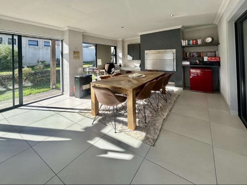 Welcome to this modern and comfortable house in Blue Mountain Village - a place where peaceful living meets everyday convenience. As you walk through the front door, you?ÇÖre welcomed into a spacious, open-plan living area that flows naturally into the kitchen and dining space. It's the kind of home that makes gatherings with family and friends feel effortless. The kitchen is both stylish and practical, fitted with a gas stove that's perfect for cooking up your favourite meals. There are three large bedrooms, each with plenty of built-in storage, giving everyone their own space to relax. The two modern bathrooms are sleek and comfortable. One of the favourite spots in this home is the enclosed braai area - perfect for entertaining all year round. Just a few steps away, you?ÇÖll find a neat garden where children and pets can play, or where you can simply sit back and enjoy some quiet time outdoors. The home also comes with a double garage, complete with tiled floors and automatic doors, offering both convenience and extra security. And with energy-efficient gas geysers, you?ÇÖll save on electricity without giving up hot water. But it's not just the house that makes this property special - it?ÇÖs the lifestyle that comes with it. Blue Mountain Estate is a safe and peaceful community, with security guards patrolling the area and walking paths that wind through scenic landscapes. There?ÇÖs a large pond filled with fish, and the air is filled with birdsong. And just when you think it can?ÇÖt get better, the sunsets over the Outeniqua Mountains will take your breath away. Everything you need is close by - shops, beaches, and even the airport are a short distance away. If you?ÇÖre looking for a place that feels like home from the moment you arrive, this is it. Call me today to book a viewing.